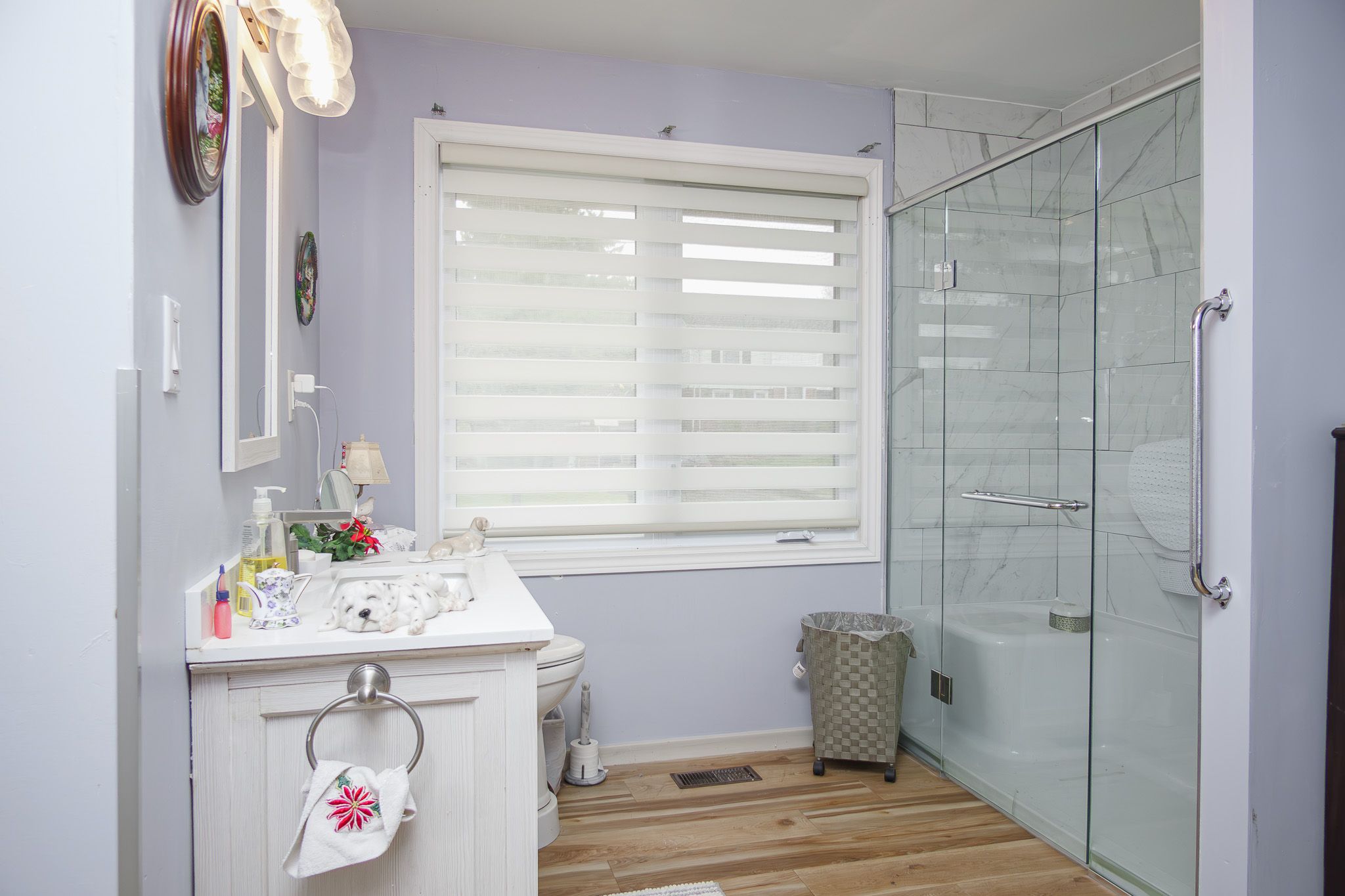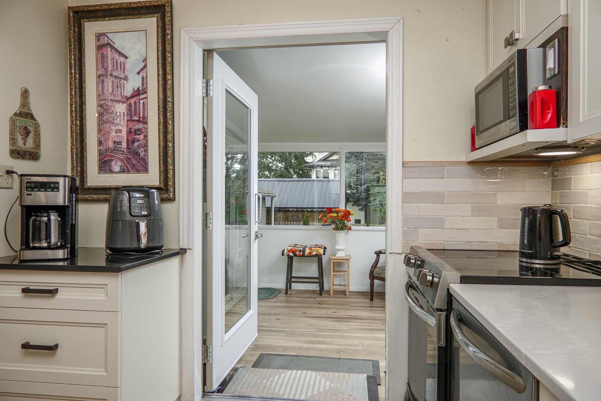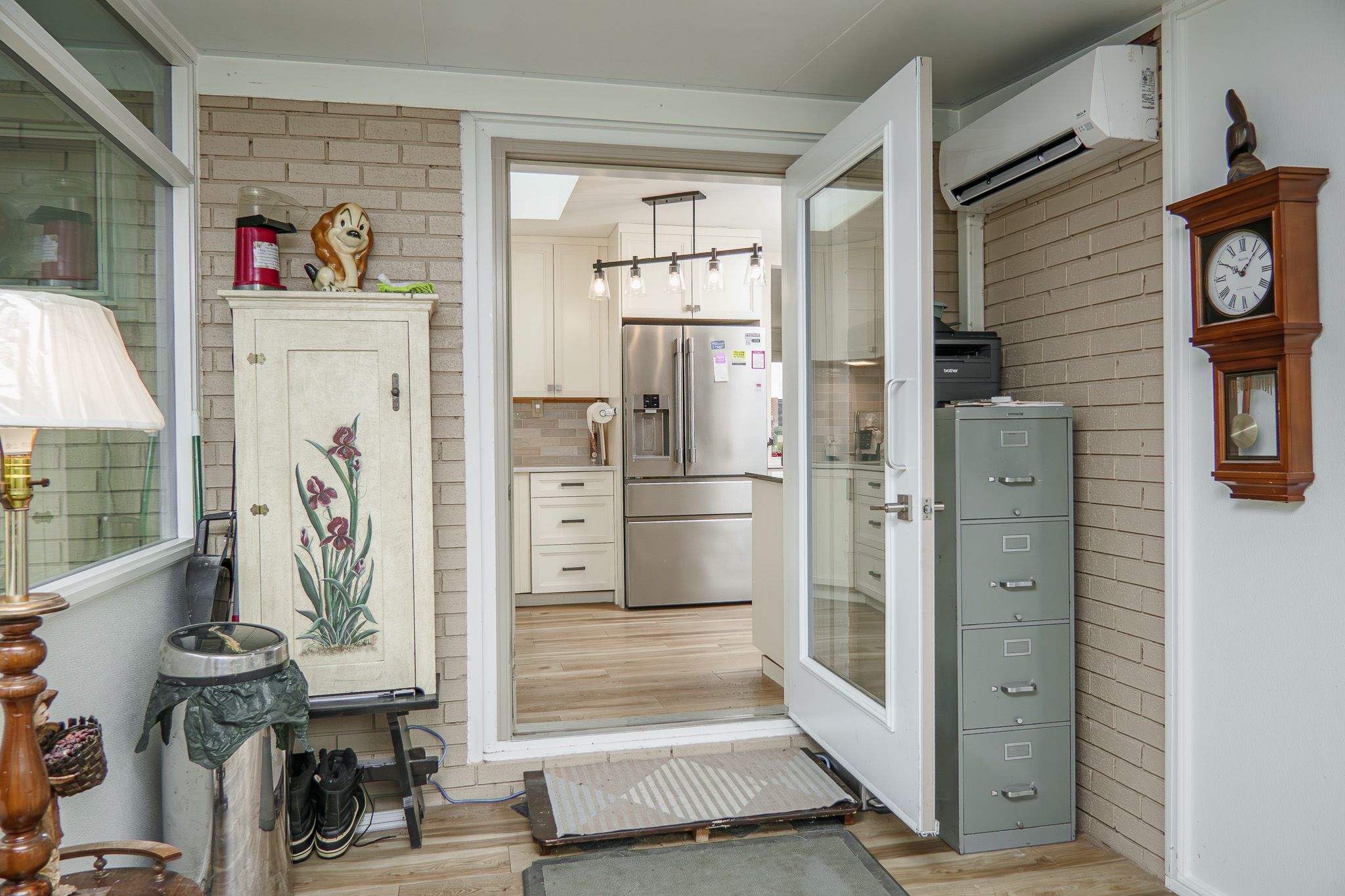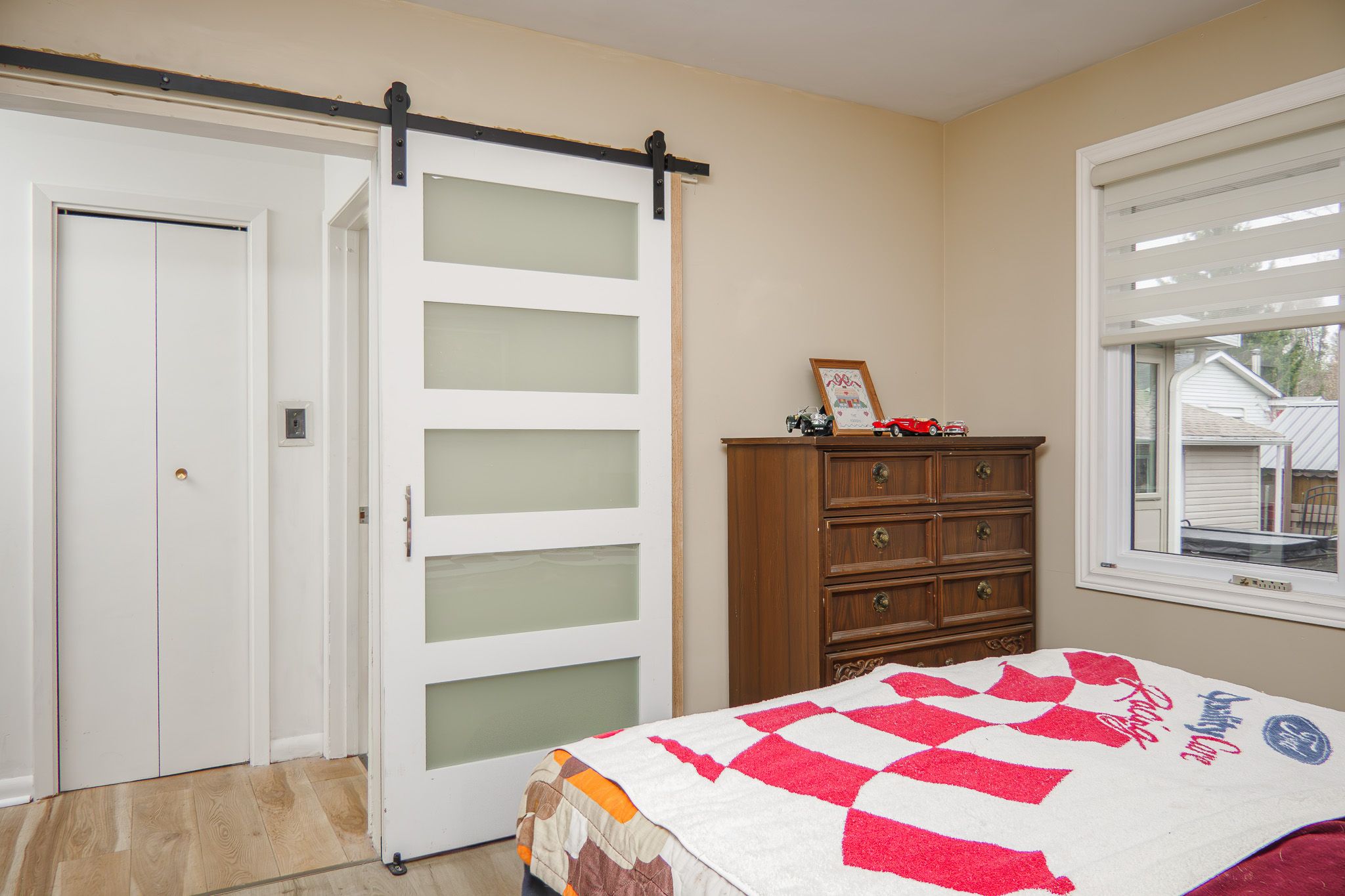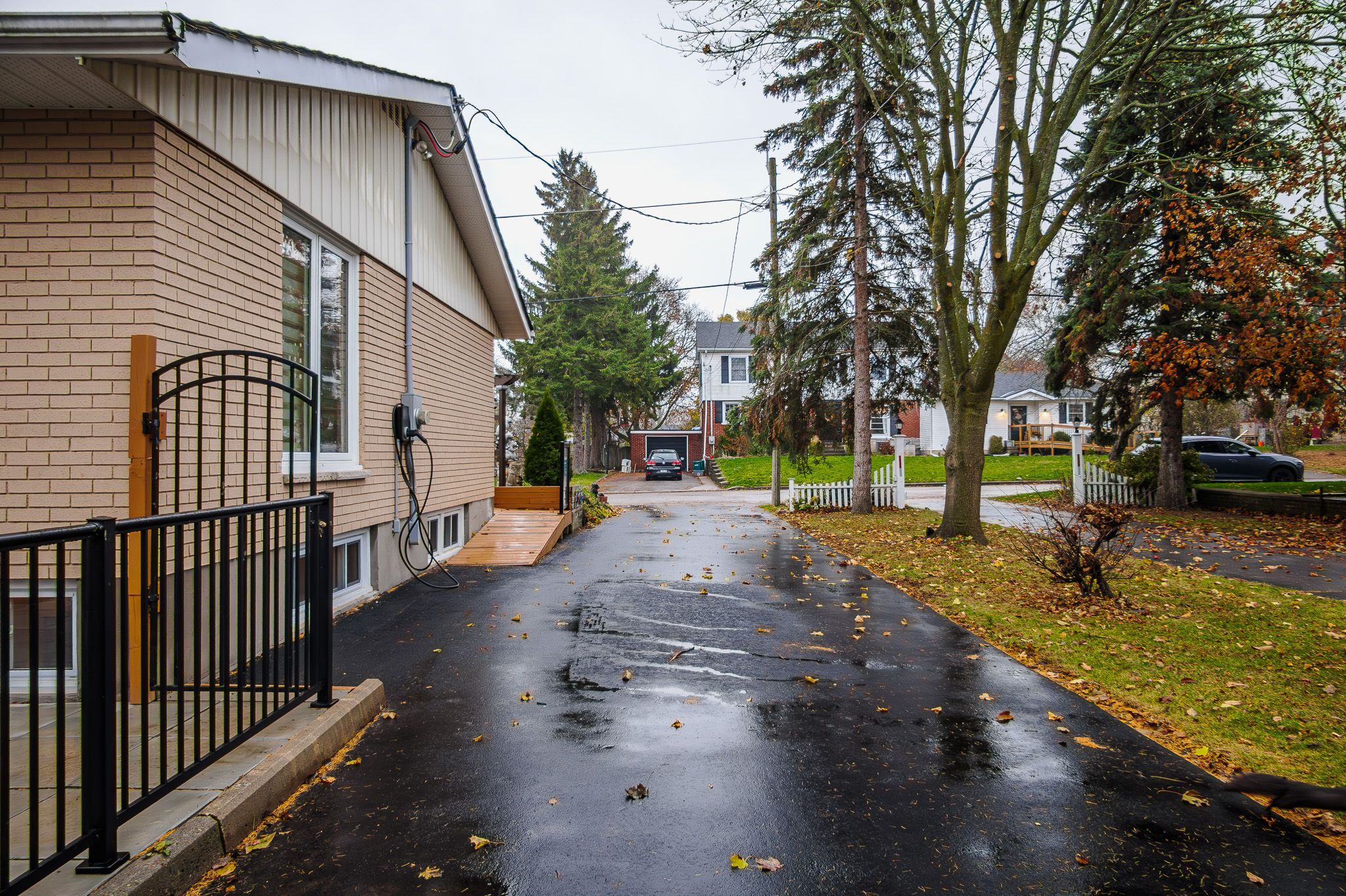 Welcome to the west end! Fantastic renovated all-brick bungalow located on a quiet street in trenton's west end, near parks, trails, shopping & more. The list of improvements are numerous & include: new windows & doors, updated brick colour, new kitchen with quartz countertops, new flooring, new 200amp electrical service, ev charger, 4 season sunroom, accessible/handicap features, main floor laundry & much more. 3 bdrms total with 3 baths. 2 spacious bdrms on the main lvl including full ensuite with the primary. Open concept l-shaped living, dining & kitchen with fresh paint & crown moulding. Living room has large picture window overlooking the front yard plus built-in, modern fireplace. The contemporary kitchen has modern cabinets to the ceiling, new appliances, quartz counters, peninsula seating & 2 new skylights for natural light. Off the back of the home is a 4 season sunroom with windows on 3 sides & a dedicated heat pump system for heating & cooling. Sunroom overlooks the private, fully fenced rear yard with large mature tree & attractive landscaping. 2 patio areas grace this space for seating & entertaining including a hot tub area with wiring. The recently paved driveway can easily accommodate 5 cars plus an electric vehicle charger for convenience. The detached dbl garage is divided into 2 halves, one side for vehicular access as well as an insulated lounge area for additional living or work space. Accessibility features include: a front ramp, wider door openings & all conveniences on the main lvl. Lower lvl is also finished, boasting a large rec rm, a 3rd bathroom (3pc.) & lower lvl bdrm. Additionally in the bsmt is a storage/utility rm with workbench, 2nd laundry & hvac equipment. Other features include: gas furnace, c/air, new gas hwt & some electric blinds. Great combination of location & updates make this a home you don't want to miss. Seller willing to sell hot tub separately.