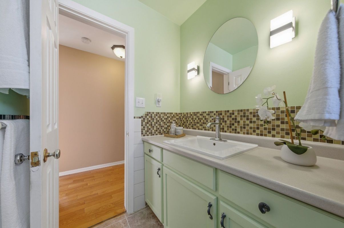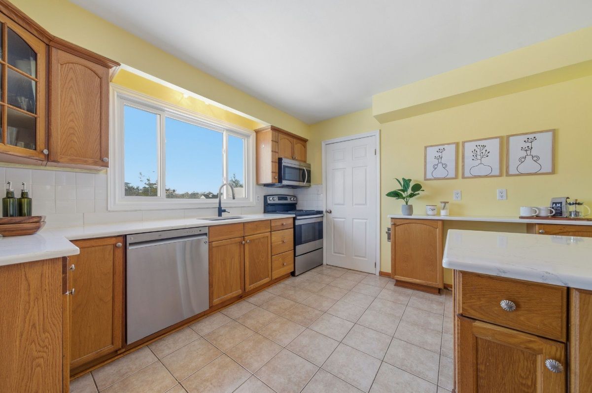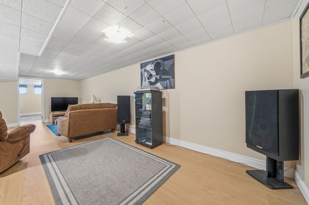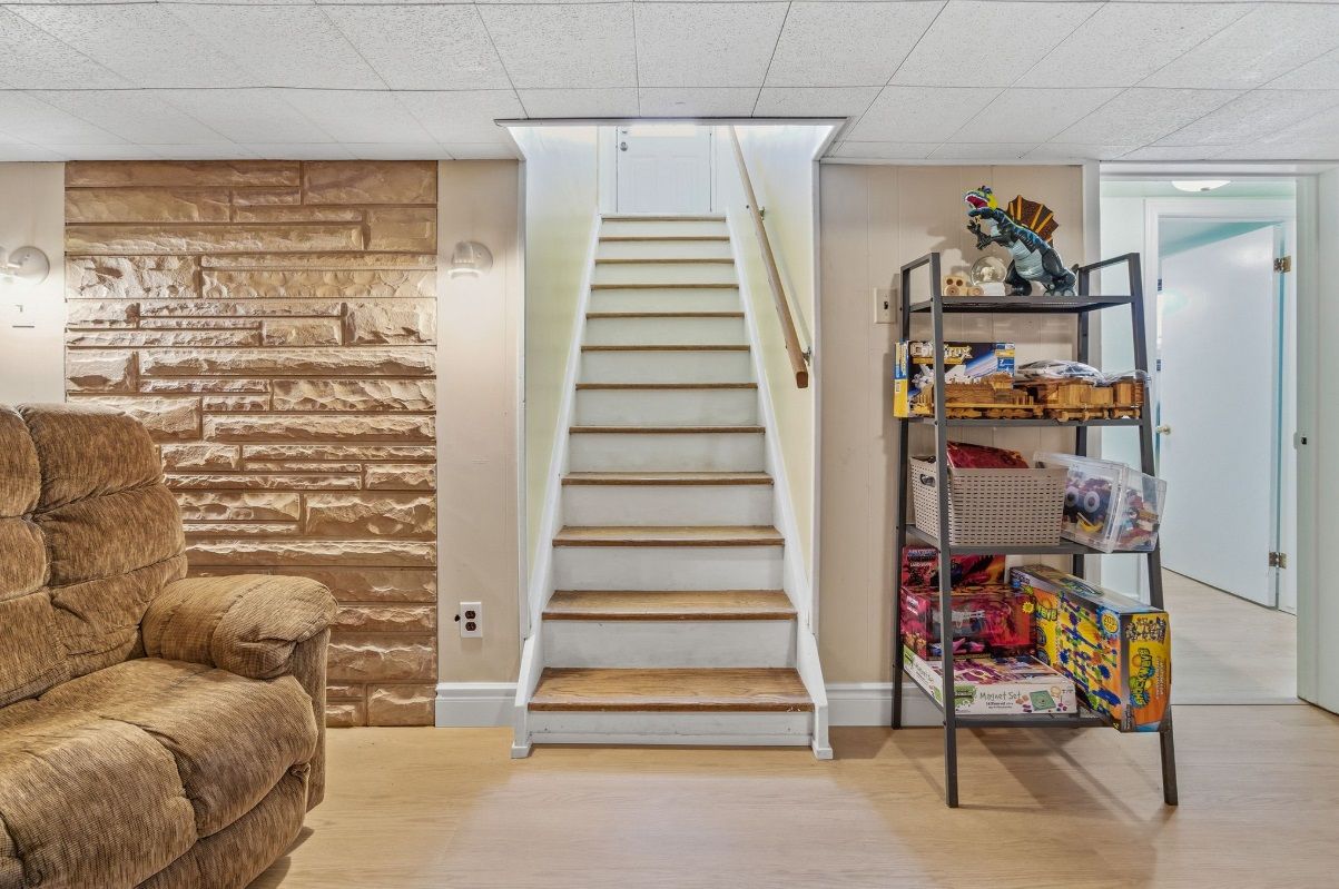 • Lower level includes a rec room, extra bedroom, and storage space.