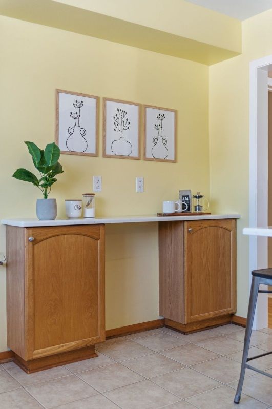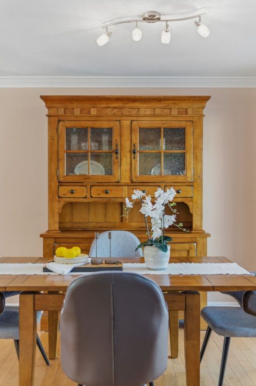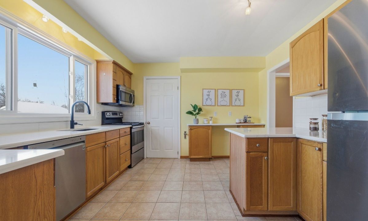 • Functional kitchen with modern quartz countertops for cooking enthusiasts.