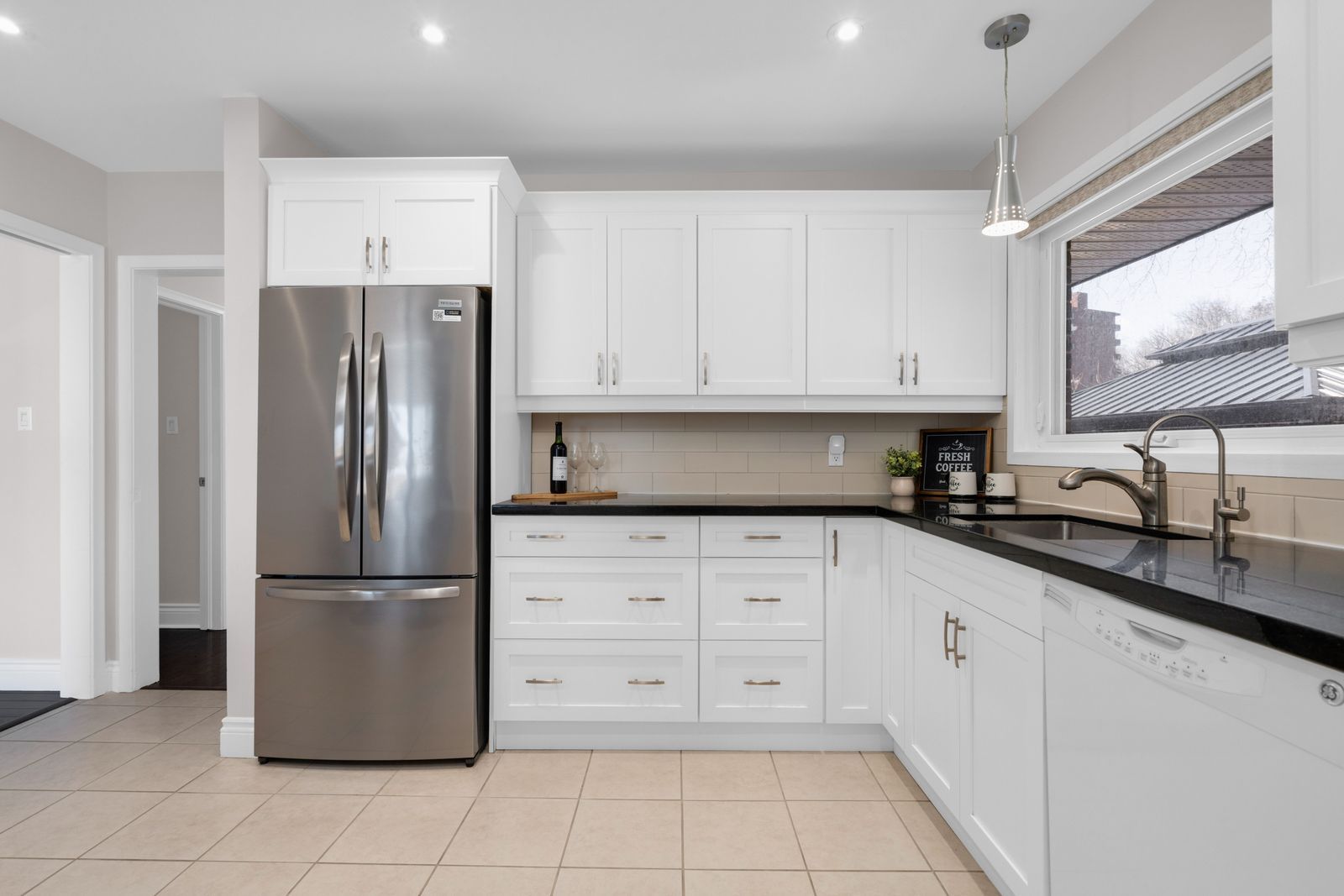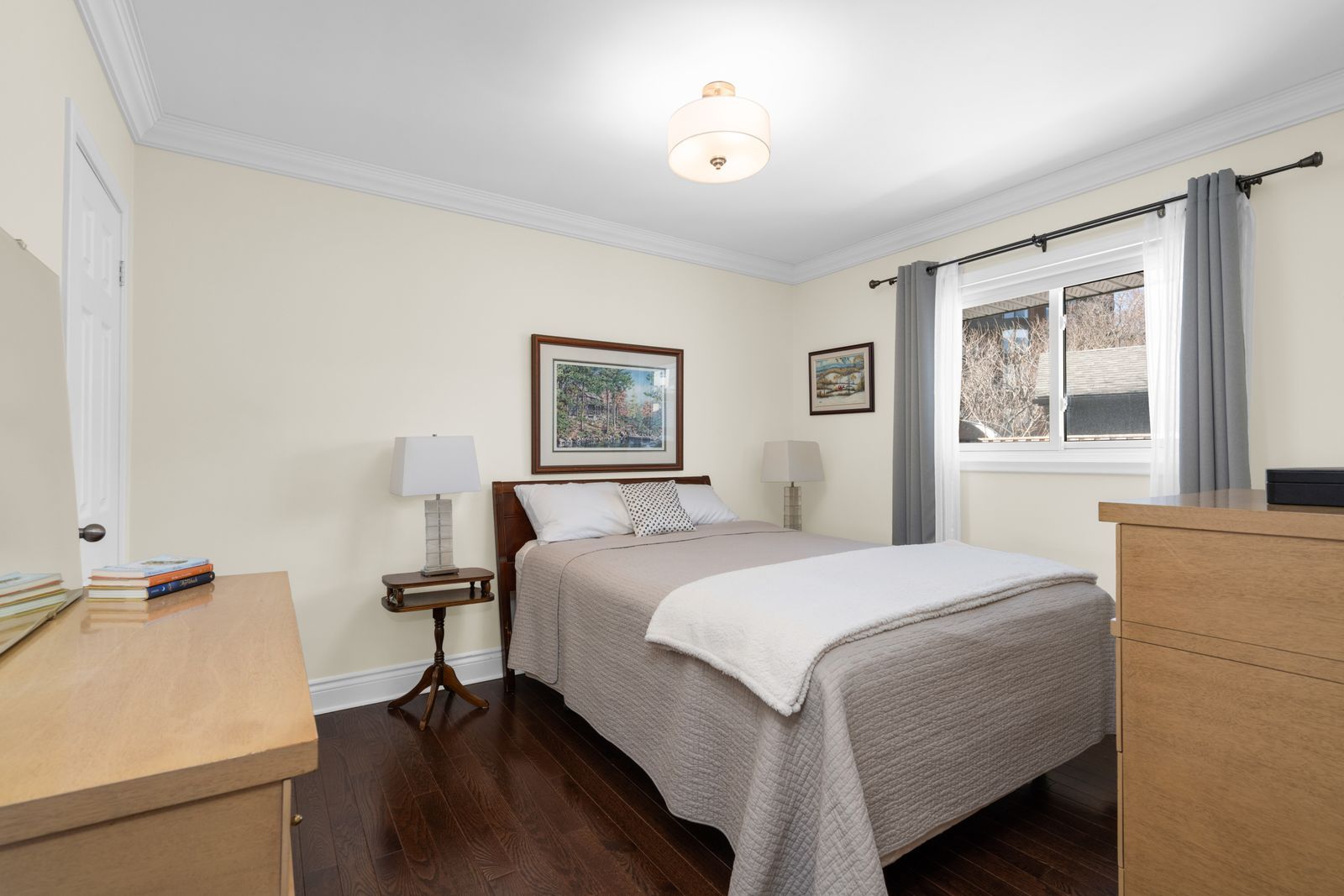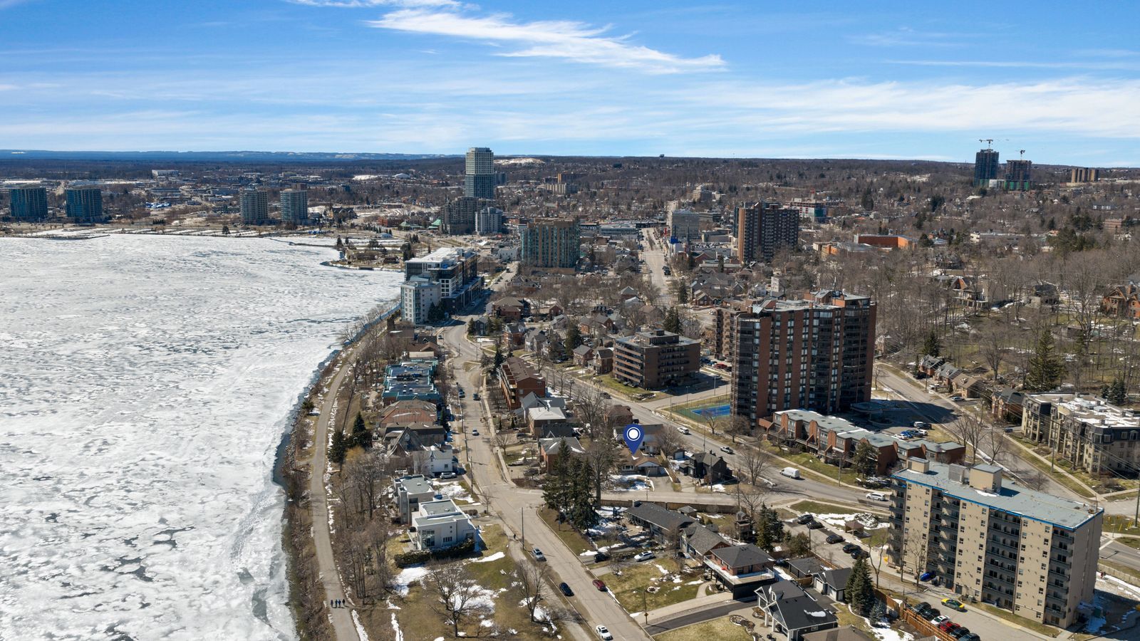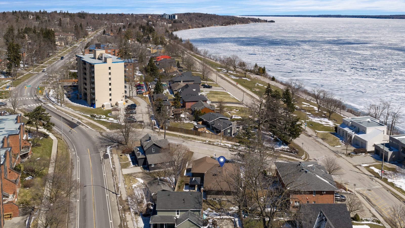 Kempenfelt bay views, a beautifully kept interior with thoughtful updates, & in-law capability with a separate entrance! Morning walks along the barrie north shore trail, quick access to kempenfelt and st. Vincent parks, afternoons at centennial beach or johnson's beach, and evenings spent downtown enjoying local dining, shopping, festivals, and the art scene, this address places you right where barrie feels most alive. Impeccably maintained and full of warmth, this all-brick bungalow offers nearly 2,200 finished sq ft with 4 bedrooms, 2 full baths, and beautiful views of kempenfelt bay from the front porch, kitchen, and living room. An interlock front walkway and porch add charm from the moment you arrive, while the oversized 1-car garage and driveway parking for 4 bring everyday practicality. Out back, the fully fenced yard is beautifully finished with a large interlock patio, hardtop gazebo, garden shed, and attractive landscaping, creating a private outdoor setting to enjoy through the warmer months. Gleaming hardwood floors, crown moulding, updated light fixtures, and bright main living spaces bring character to the main floor, while the updated kitchen features quartz counters, a breakfast bar, tiled backsplash, and soft-close doors and drawers, along with sleek pocket doors that create separation between the kitchen and dining area. The main floor bathroom features heated floors, modern finishes, a frameless glass shower, and a vanity with a granite counter. Downstairs, the finished basement expands the home's versatility with a separate entrance ideal for in-law capability or extended family, plush broadloom throughout, a rec room with a cozy gas fireplace, ample storage, a large bedroom with dual closets, and a lower bathroom featuring heated floors, a large soaker tub, and a vanity with a corian counter.