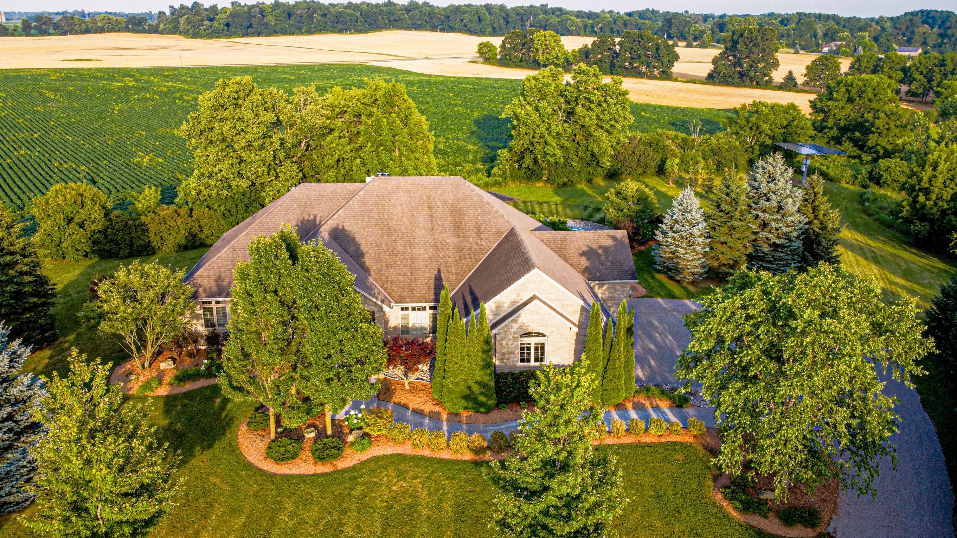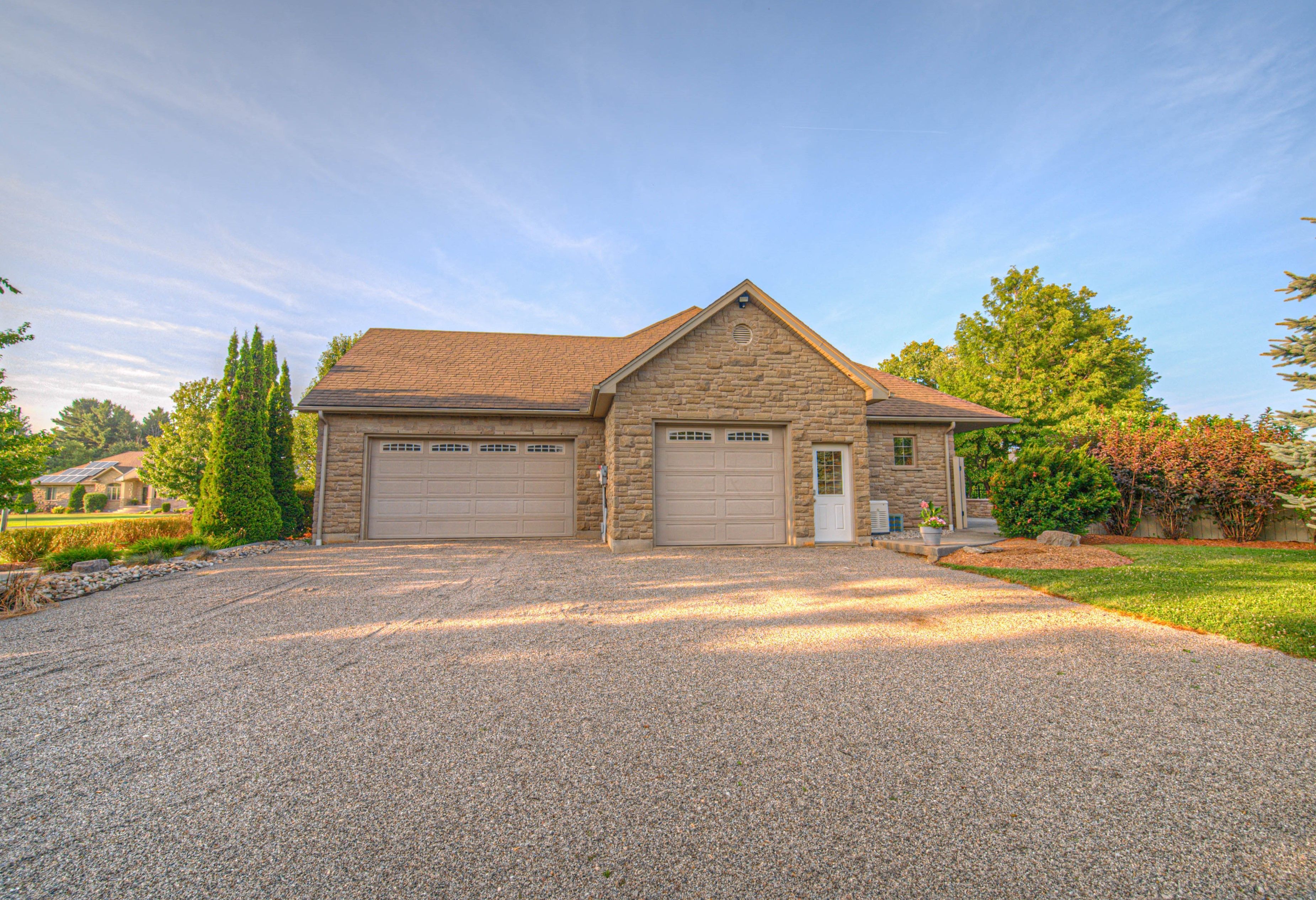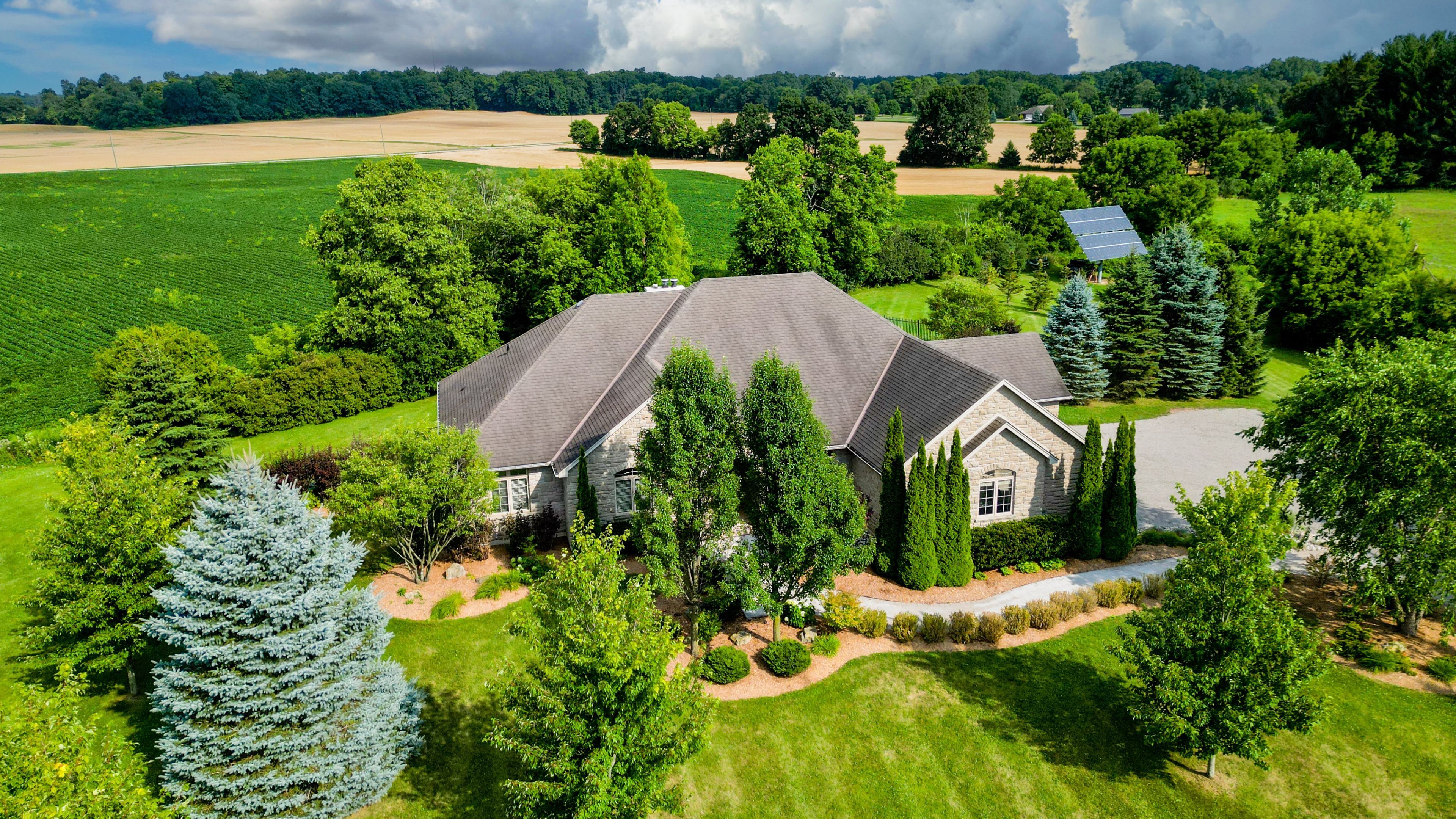 Escape to a private sanctuary in the heart of glen morris. This custom-built bungalow is situated on a sprawling 1. 48-acre estate, perfectly balancing quiet country living with modern, functional luxury. Spanning over 3,467 sqft of finished living space, this 3-bedroom plus office residence is designed for those who appreciate room to breathe and space to entertain. The interior makes a grand impression with soaring ceilings and rich hardwood floors. At the center of the home, a gourmet kitchen with granite countertops and custom cabinetry overlooks a bright great room, complete with a cozy fireplace and expansive windows that frame the lush outdoors. For those seeking multi-generational options or a mortgage helper, the finished lower level features a separate entrance and a bathroom rough-in, offering a turnkey opportunity for an in-law setup or secondary suite. The outdoor living space is nothing short of spectacular. An in-ground pool serves as the focal point of the backyard, wrapped in premium stamped concrete and mature landscaping. High-value mechanical updates including a new pool liner, pump, and filters (2024), ensure the home is move-in ready. A standout feature is the fully owned solar panel system, which provides a rare environmental and financial benefit by generating a steady monthly income for the owner. Practicality meets prestige with a triple-car garage, 200-amp service, and advanced water filtration (r/o and uv systems). Located just moments from the grand river and the charming shops of paris, brantford, and cambridge, this property offers the best of the waterloo region and brant county lifestyle.
