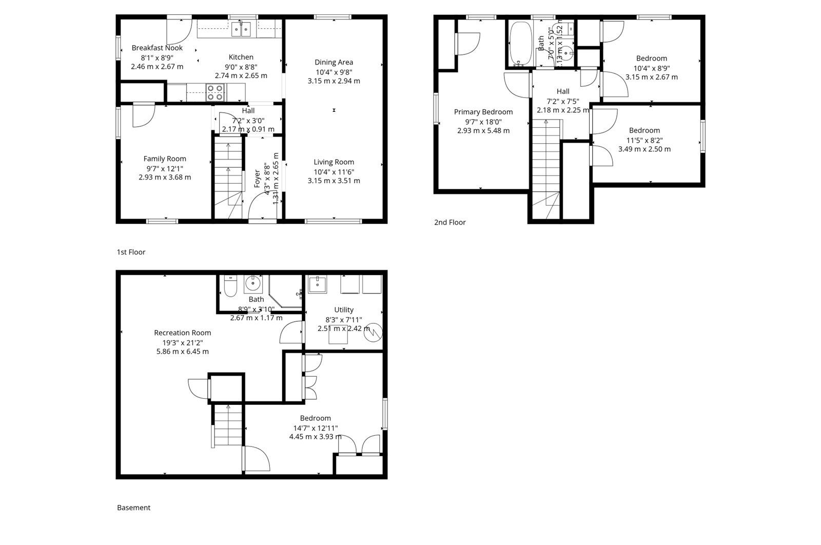 • Fully finished basement with rec room and additional bedroom for versatility.