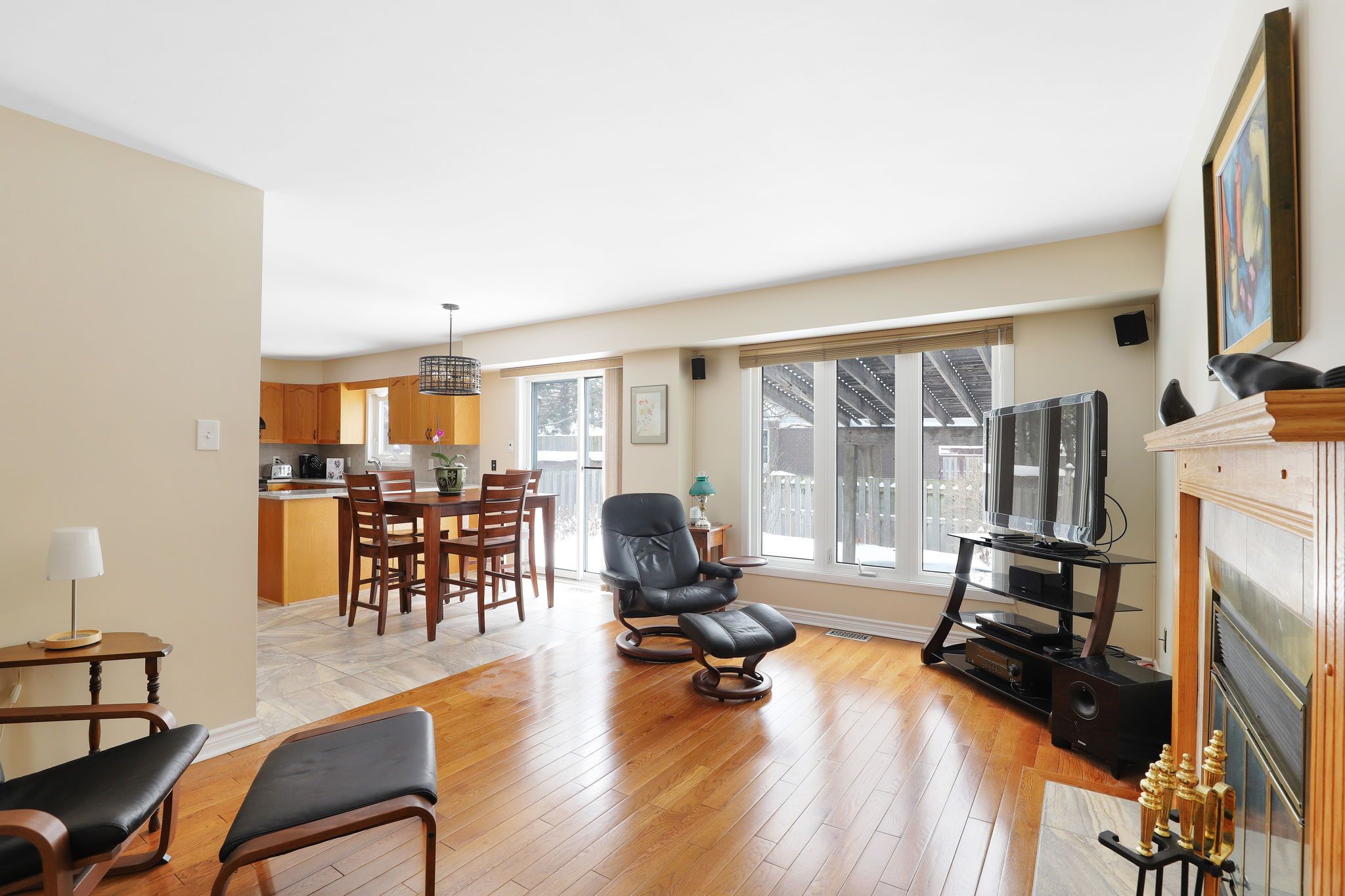 Welcome to 10 ellisson way! This beautifully maintained 4-bedroom, 3-bath single-family home is nestled on an exceptionally quiet street in the family-friendly community of hunt club park, offering a light-filled, comfortable space that blends style and everyday ease for the way families really live. The main floor features a bright living room with a wood-burning fireplace, a convenient laundry area with direct garage access, and an updated powder room. The refreshed kitchen showcases quartz countertops, black stainless steel appliances, and a modern backsplash, opening seamlessly to the cozy family room and dining area with direct backyard access. Upstairs, the spacious primary suite offers a walk-through closet area with 4 closets and a luxurious 5-piece ensuite with granite countertop dual vanities, a soaker tub, and separate shower, along with three additional bedrooms and a full bathroom. Recent updates include a new gas furnace (2024), new exterior doors (2023), a/c (2018), a refreshed kitchen (2017-2018), and new tiles and hardwood on the main level (2016), all contributing to a move-in ready home offering excellent value in a desirable, established neighbourhood. Open house saturday february 14th from 2-4 p. M. And sunday february 15th from 1-3 p. M.