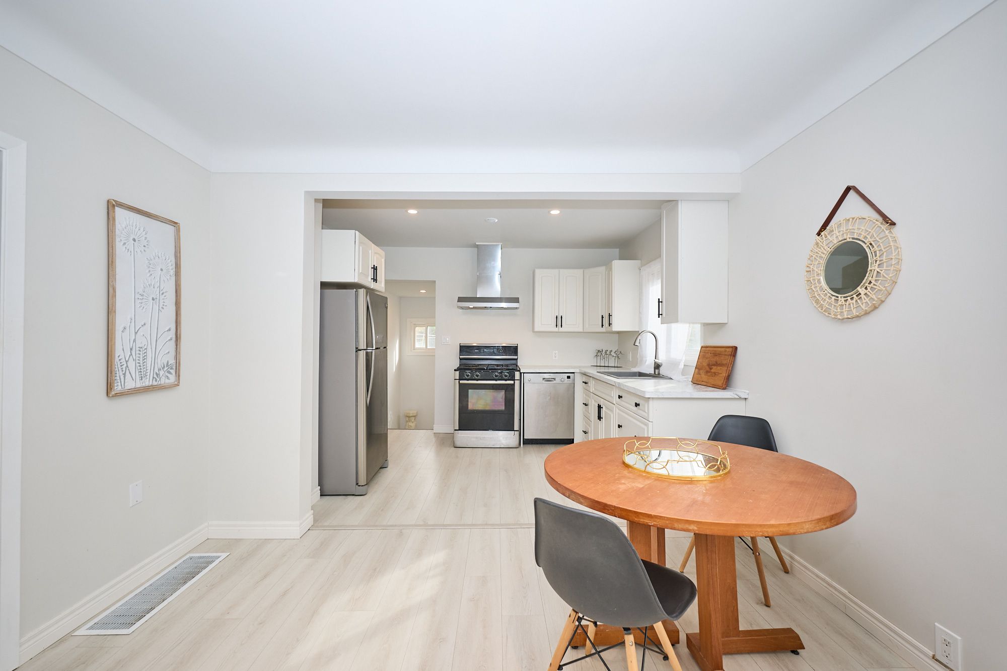 Step into style and comfort in this beautifully updated 2+2 bedroom bungalow with easy set-up for an in-law suite. Bright, open and inviting, the main living space welcomes you with soft natural light, warm-toned flooring, modern finishes and a seamless flow from living room to the dining area to the kitchen. The contemporary kitchen shines with stainless steel appliances, classic cabinetry and plenty of counter space. The thoughtfully designed lower level truly complements the home's overall appeal, offering additional living space that can adapt to your lifestyle. The separate entrance, kitchenette, 2 additional bedrooms, 3pc bath, rec room and laundry provide flexible living options - ideal for extended family, guests or in-law accommodation. Whether you're relaxing in the sunlit living room, cooking dinner in the open kitchen or enjoying quiet evenings in the backyard, this home caters to both intimate family moments and lively gatherings with friends. Located in a peaceful neighbourhood near parks, schools, shopping and everyday conveniences - it's a place where comfort comes naturally.