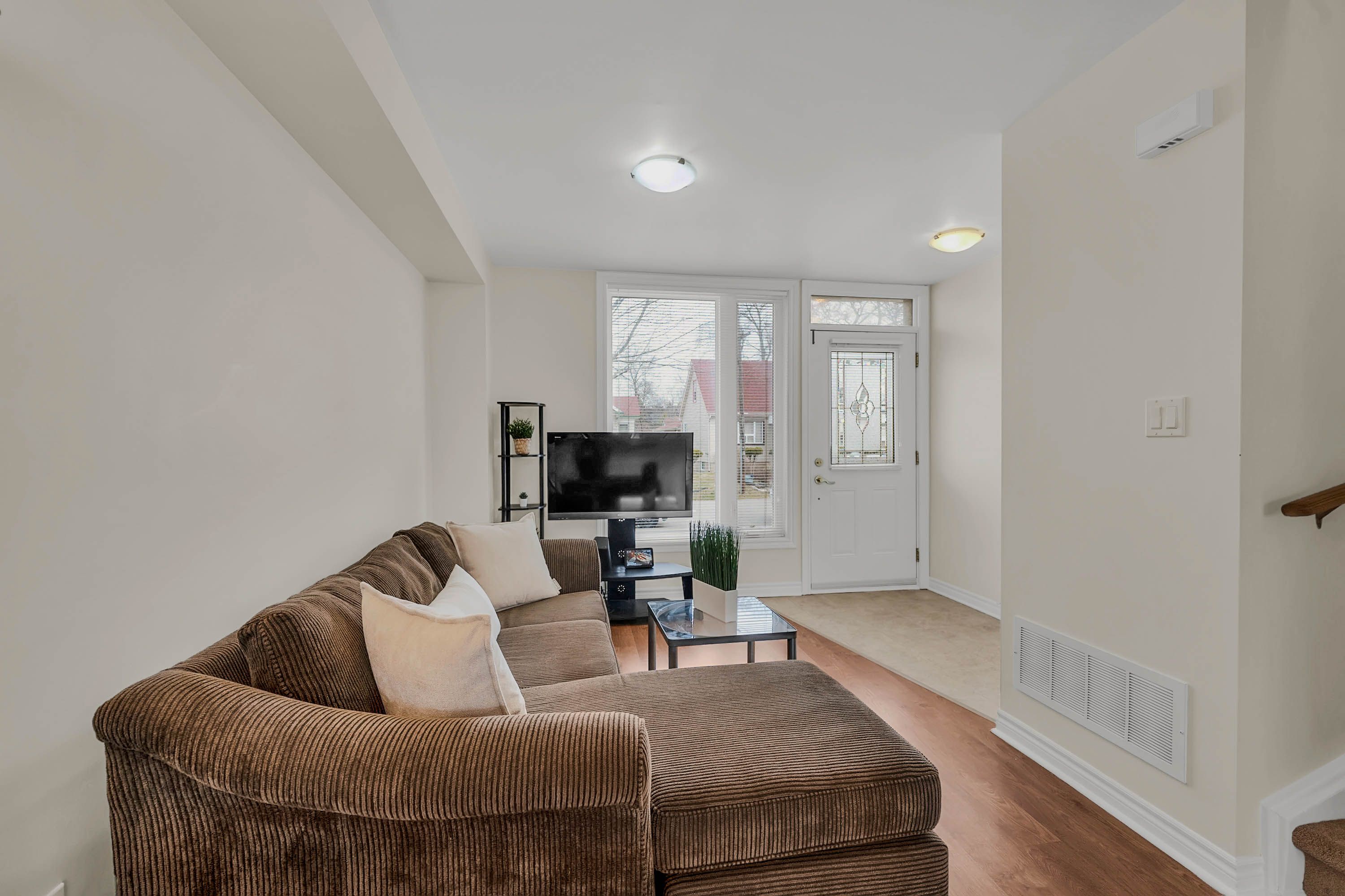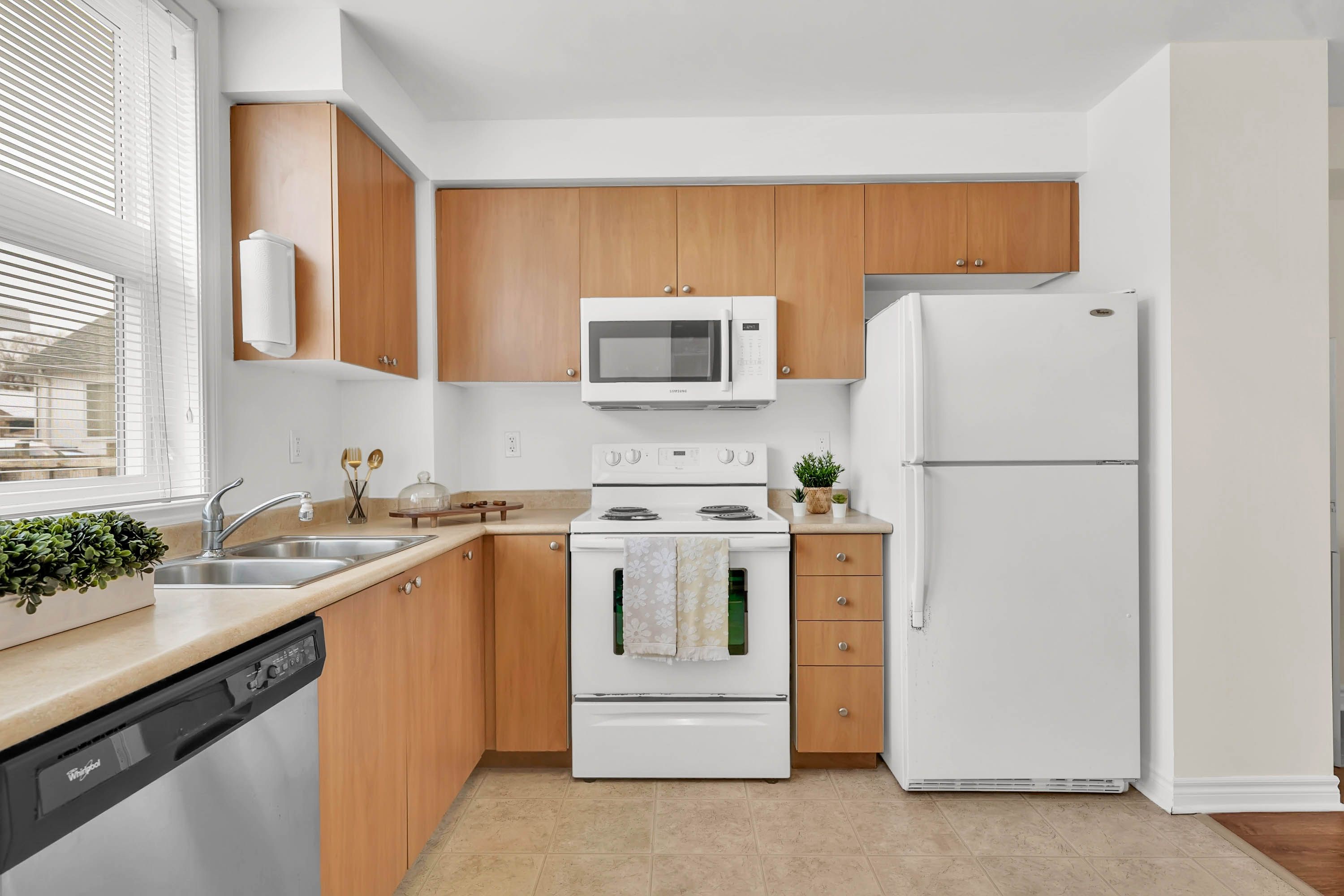 • Bright and airy two-bedroom townhouse with fresh paint and new carpets.