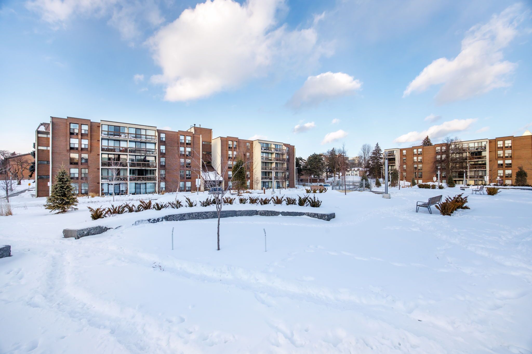 This unit features one of the largest floor plans in the building, offering 3 spacious bedrooms and 2 full bathrooms. This immaculate suite provides 1,258 sq. Ft. Of interior living space, plus a 74 sq. Ft. Balcony. Enjoy a sun-filled, open-concept layout with oversized windows, a generous living and dining area, and a walk-out to a large balcony overlooking a quiet, green setting. The updated eat-in kitchen features a breakfast bar and ample storage. The unit also includes a a large en suite laundry room, one parking space and an ensuite locker. Situated in a well-managed low-rise condominium within the family-friendly willowdale east community, the building is surrounded by lush gardens and a park-like courtyard. Located in the top-ranked earl haig secondary school district, all inclusive maintenance fees covers all utilities, bell fibe tv, and bell internet (not property tax). Close to transit, shopping, parks, schools, and all essential amenities.