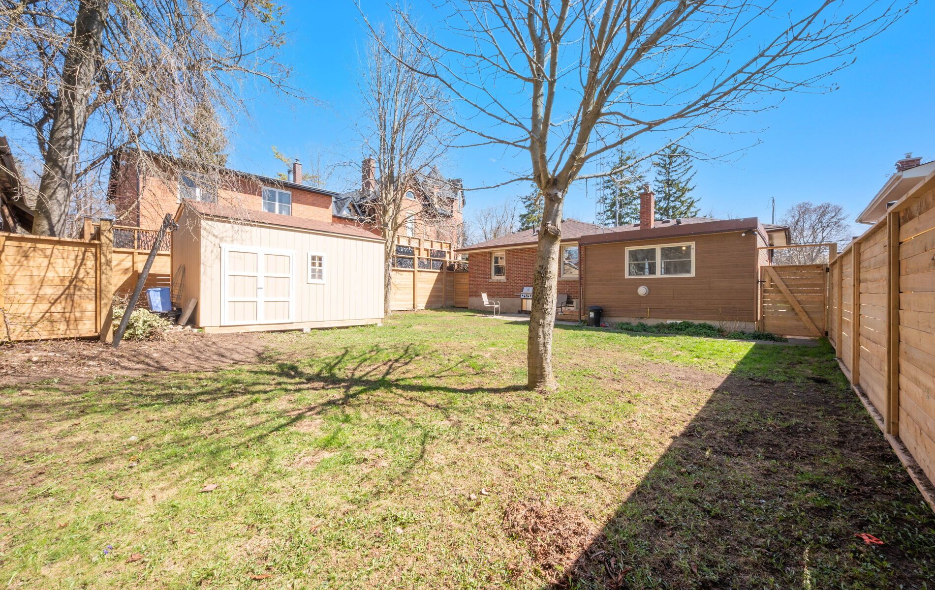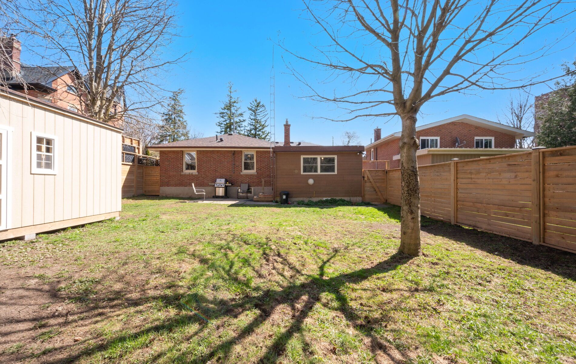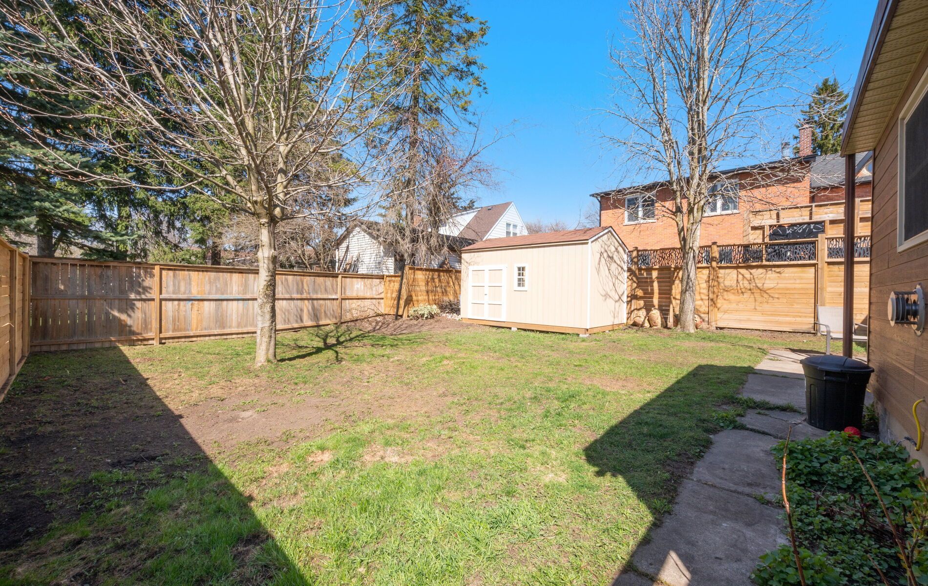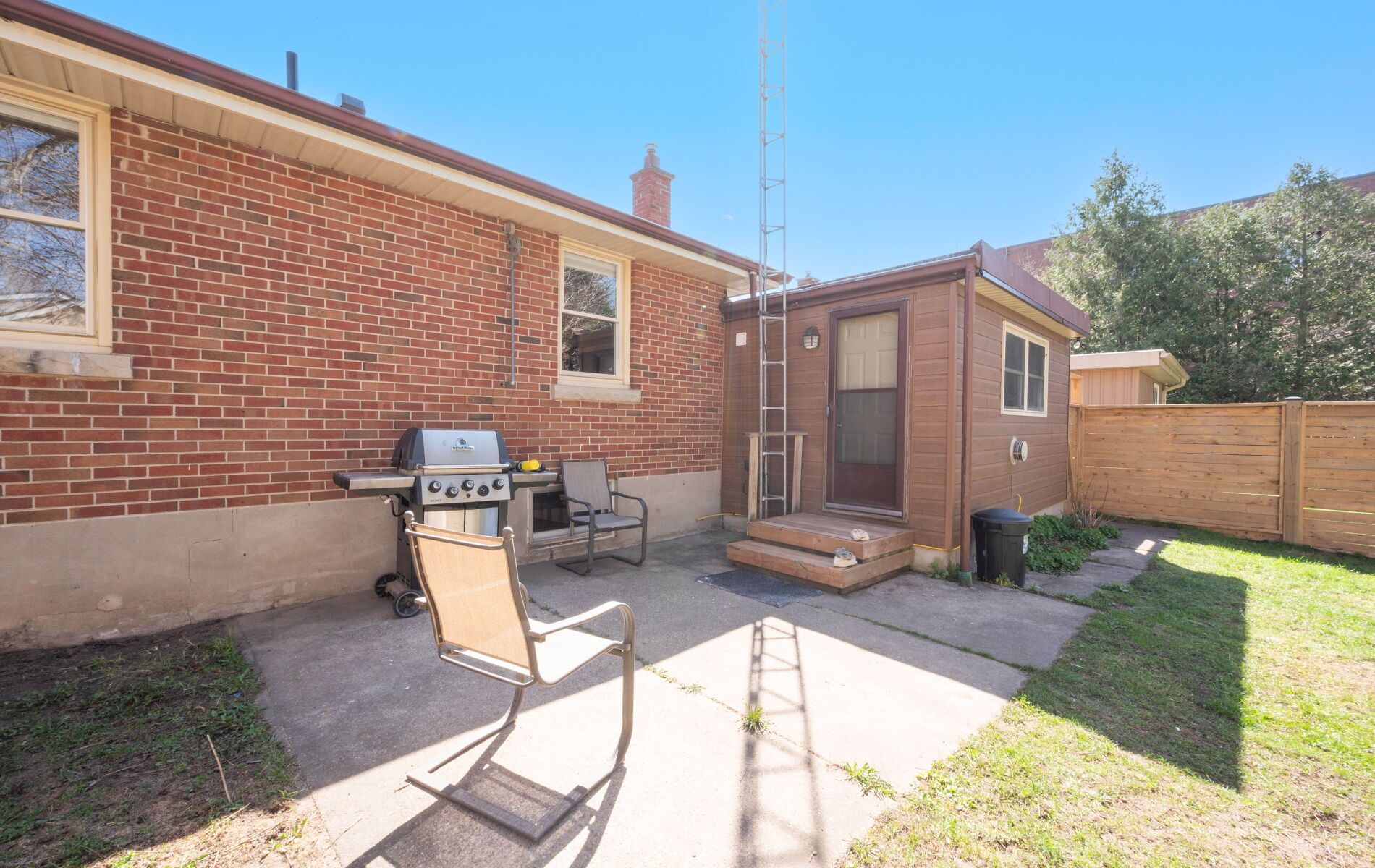 • Private fenced yard with a multi-purpose room and storage shed.