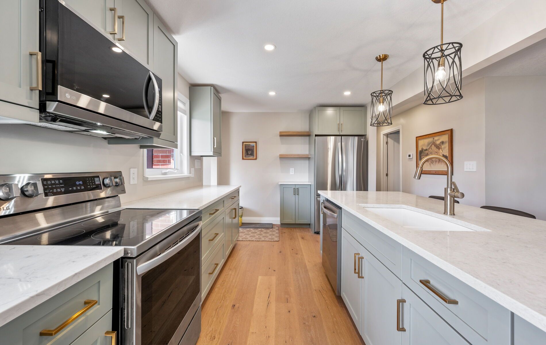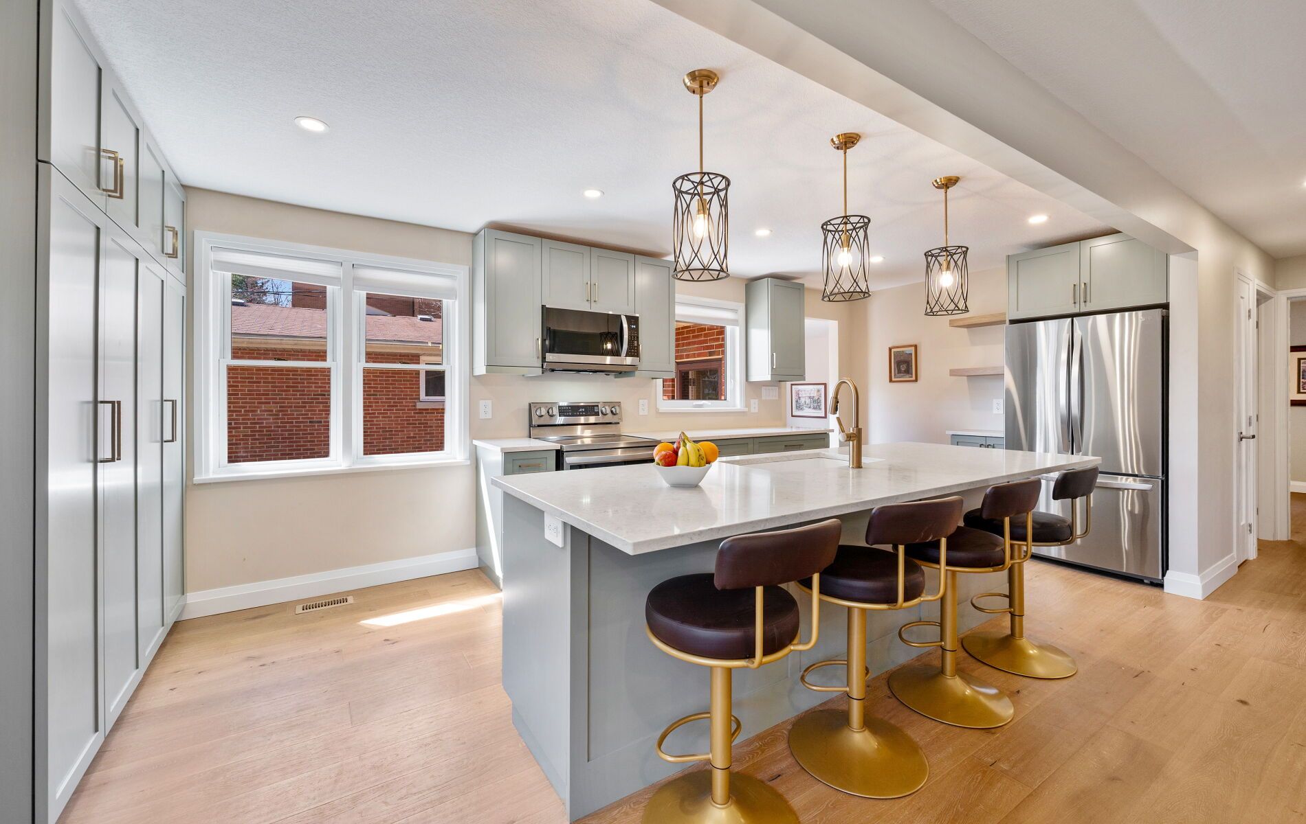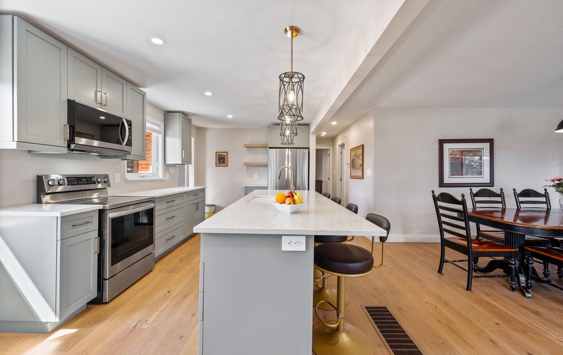 • Chef's kitchen with premium cabinetry, quartz countertops, and large island.