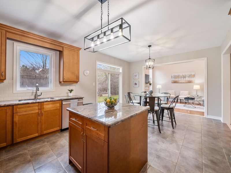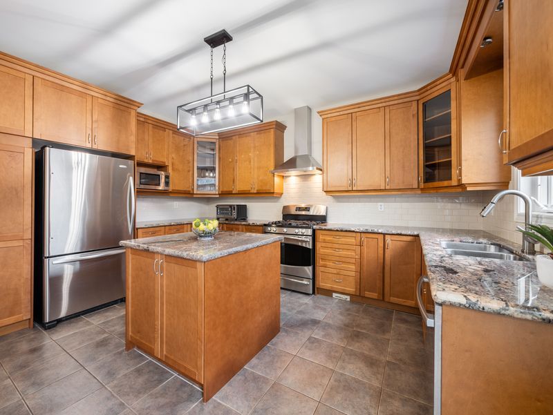 • Gourmet kitchen features granite counters and a large breakfast area.