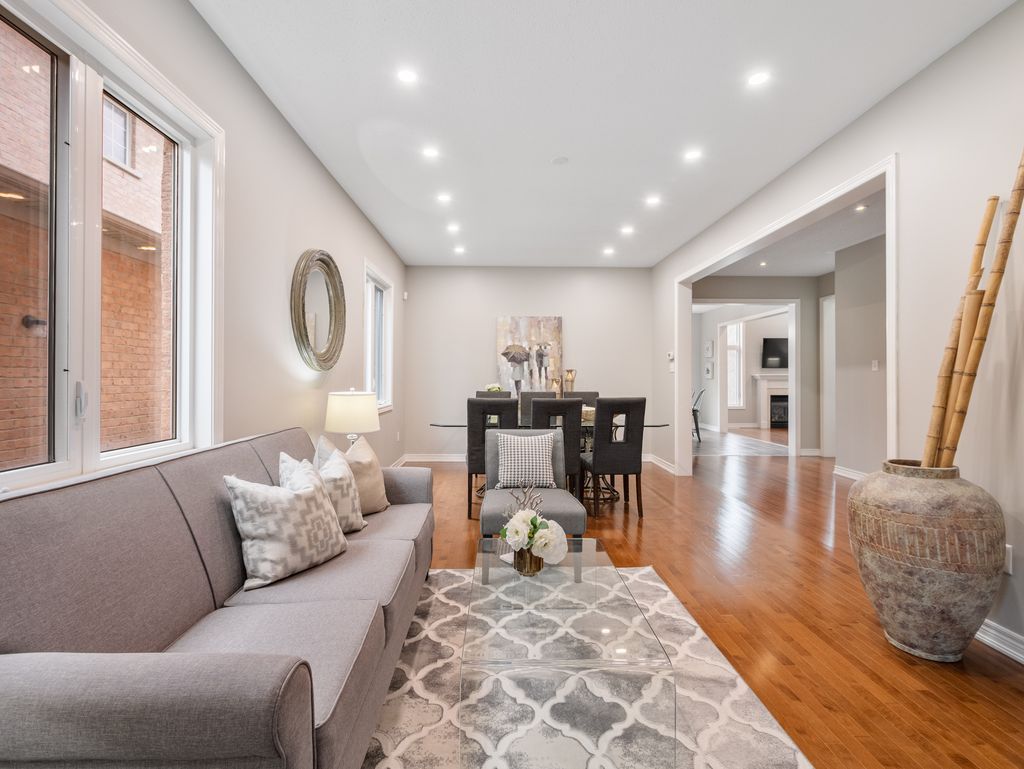 The perfect 4 bedroom detached on a private court backing onto ravine massive driveway with no sidewalk w/ pool sized backyard* beautiful curb appeal w/ brick exterior* double door entrance* large covered front porch* 8 car total parking* enjoy 3040 sq ft above grade* open concept living & dining combo w/ hardwood floors, pot lights & expansive windows* 9 ft ceilings on main jaw dropping family room w/14 ft ceilings & gas fireplace, a true showpiece of the home gourmet chef's kitchen features maple wood cabinetry w/granite counters, subway style backsplash, gas range, double undermount sink, beautiful centre island & large breakfast area w/ walk out to pool sized backyard* main floor office w/ large windows overlooking front yard* staircase w/ iron pickets* primary bedroom w/ views of ravine* 5pc spa like ensuite & walk-in closet* all bedrooms w/ large closets & direct access to ensuite* no neighbours in the back* walking distance to multiple schools* one of the nicest courts in aurora, oversized driveway, freshly painted* walking distance to schools, parks, trails, shops, gym, cineplex & restaurants* easy access to the go & yrt transit & hwy 404! Must see! Don't miss.