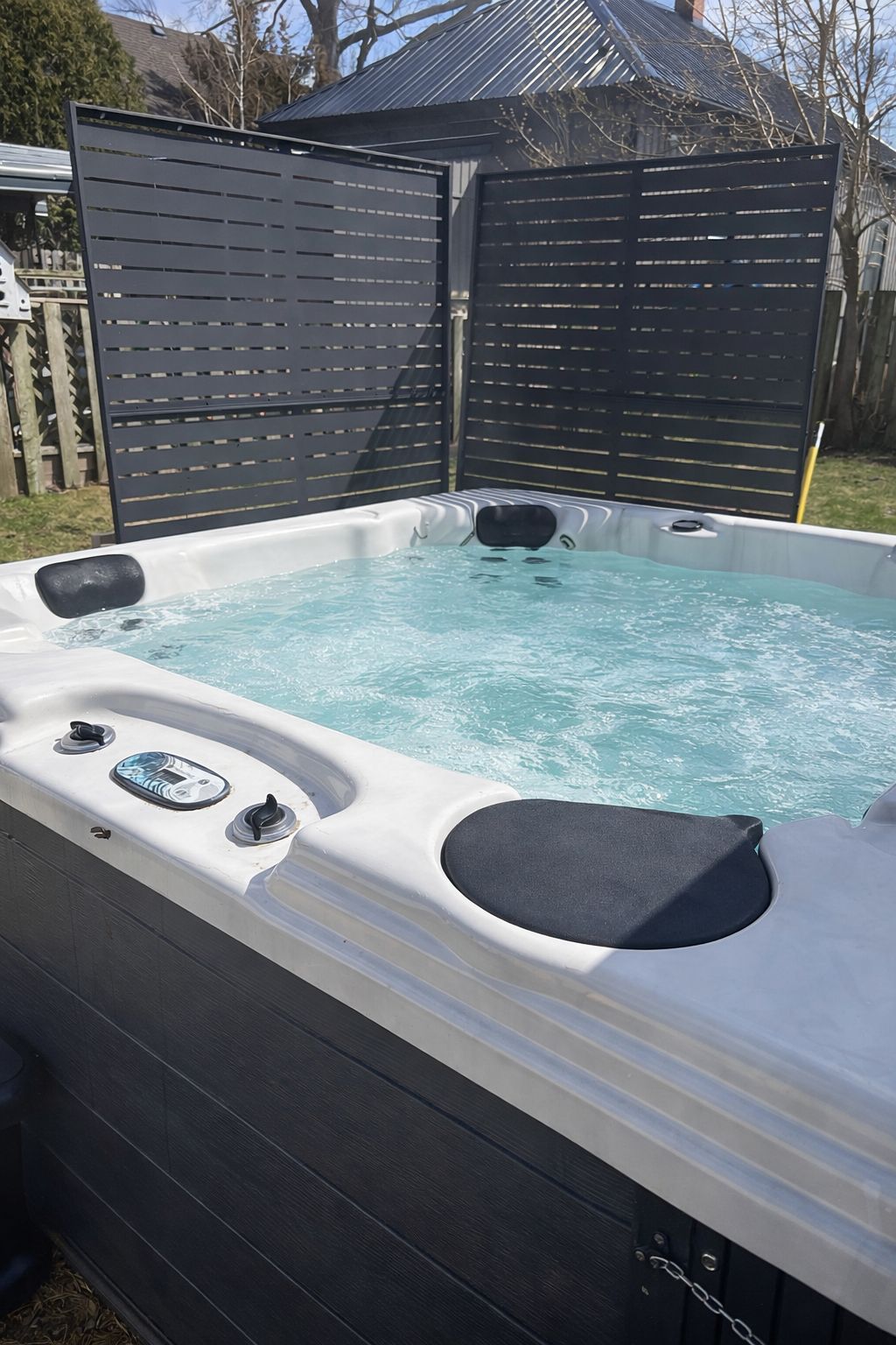 • Fully fenced backyard with hot tub for outdoor relaxation.