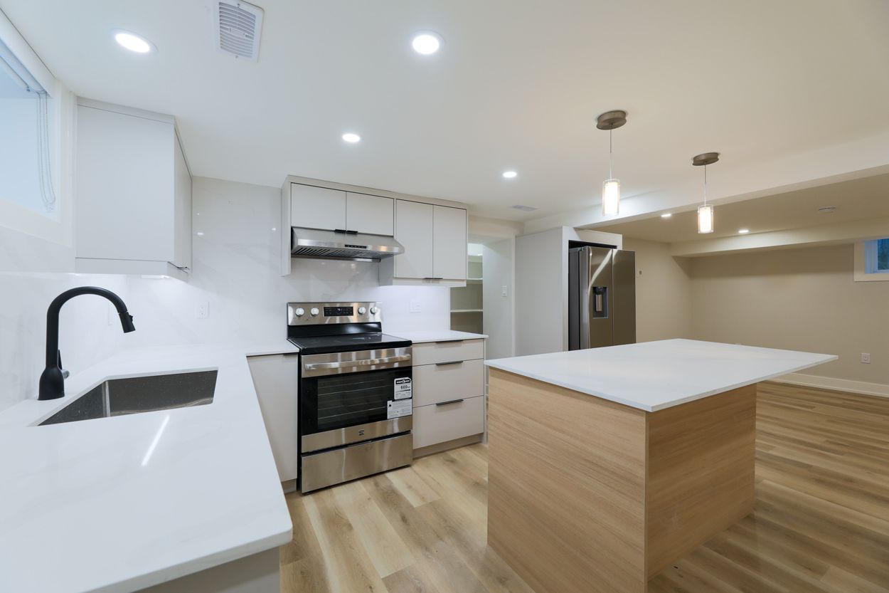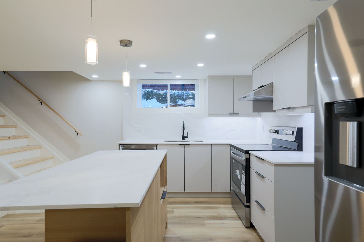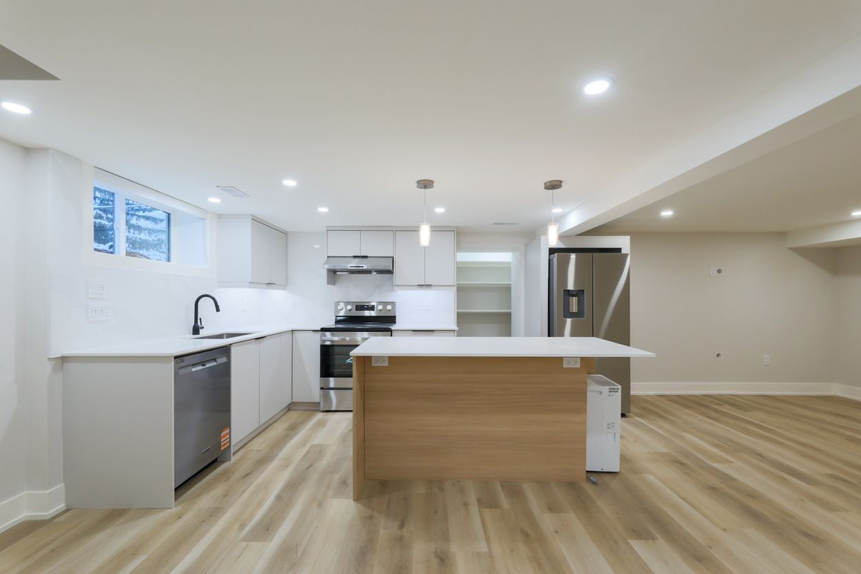 This beautifully designed 2-bedroom, all new with high end finishes* boasts a spacious layout, perfect for both relaxation. The highlight of the space is its stunning modern kitchen, which comes fully equipped with high-quality appliances and a large island. The stylish cabinetry and ample counter space make cooking a joy. Each bedroom offers generous natural light and abundant closet space, ensuring a comfortable and convenient stay. The en-suite laundry provides comfort and convenience. With its contemporary finishes and thoughtful design, this suite is an ideal retreat for those seeking a stylish and functional living space. One car parking is included on the private drive. A short walk to ttc, schools, parks and shopping. The tenant is responsible for paying 40% of the heat, hydro, and water