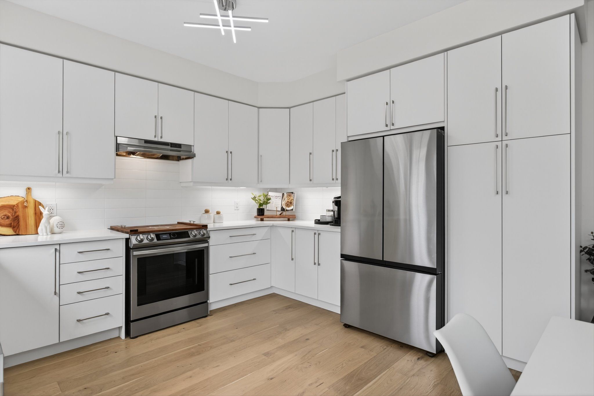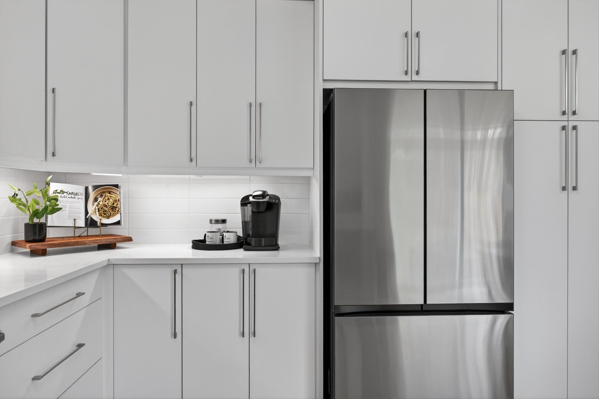 • Spacious kitchen with upscale cabinetry, premium countertops, and high-end appliances.
