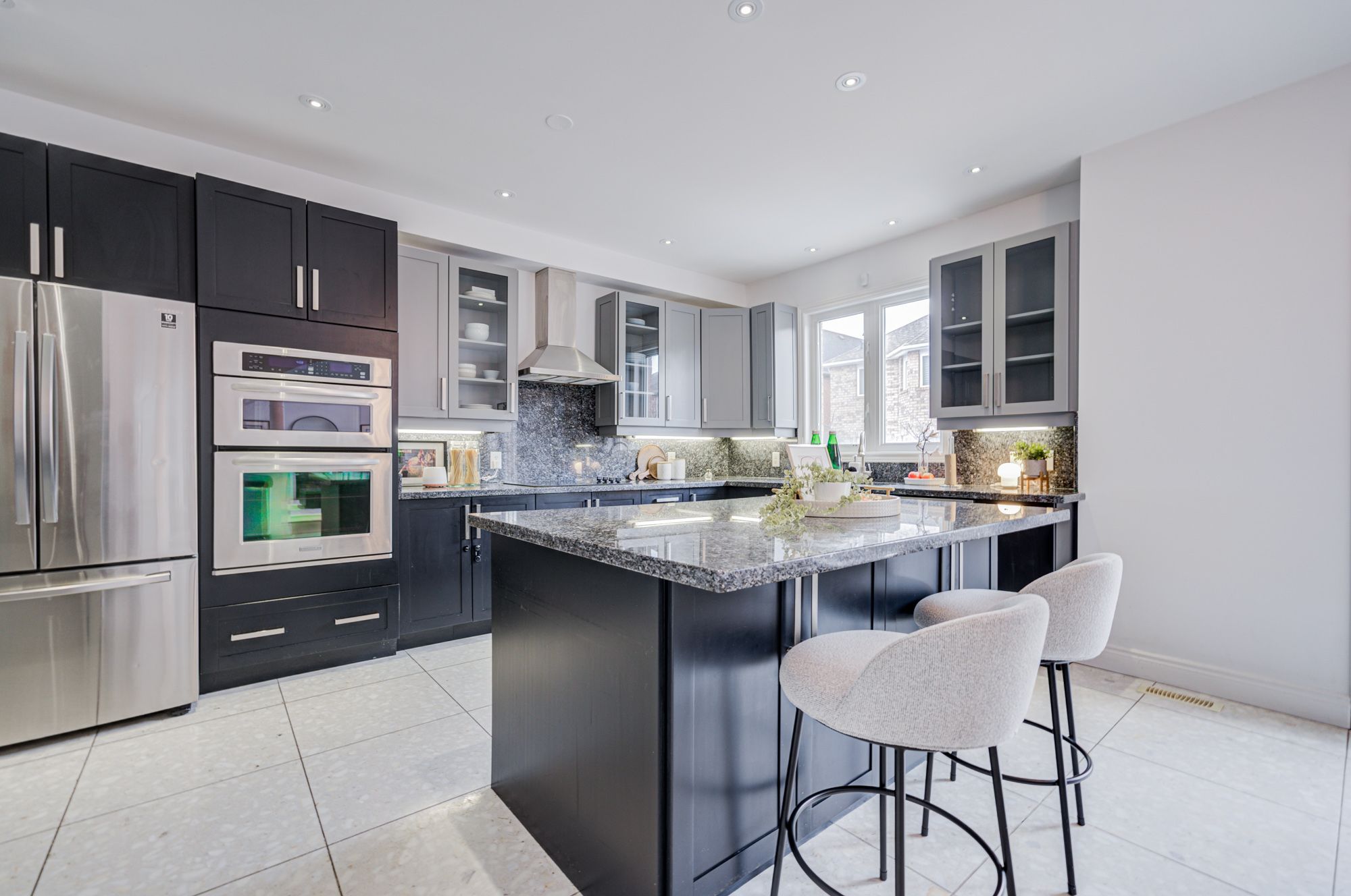 Luxury executive custom-built home in the wismer community. This prestigious home offers over 5,000 sq ft of total living space. 50-ft premium lot nestled on a quiet street. Sun-filled south-facing back yard. Impressive 18-ft cathedral ceiling in family room with expansive windows bathed abundant natural light. Hardwood oak flooring on main & second fl. Natural oak circular staircase with wrought iron railings. Modern kitchen featuring custom made cabinets, oversized central island, granite countertop & backsplash. Upgraded marble tile flooring in foyer, hallway, kitchen & breakfast area. Gas fireplace with marble stone & mantle. Skylight on second floor. Approximately 2,000 sq ft of professional finished basement, ceramic flooring throughout, huge recreation area with wet bar, 3pc bath & extra bedroom, upgraded basement windows to 36h*30w. Outdoor pot lights. Patterned concrete driveway & backyard, no sidewalk driveway allows up to 4-car parking. Steps to top-ranked bur oak h. S., grocery, go station & more.