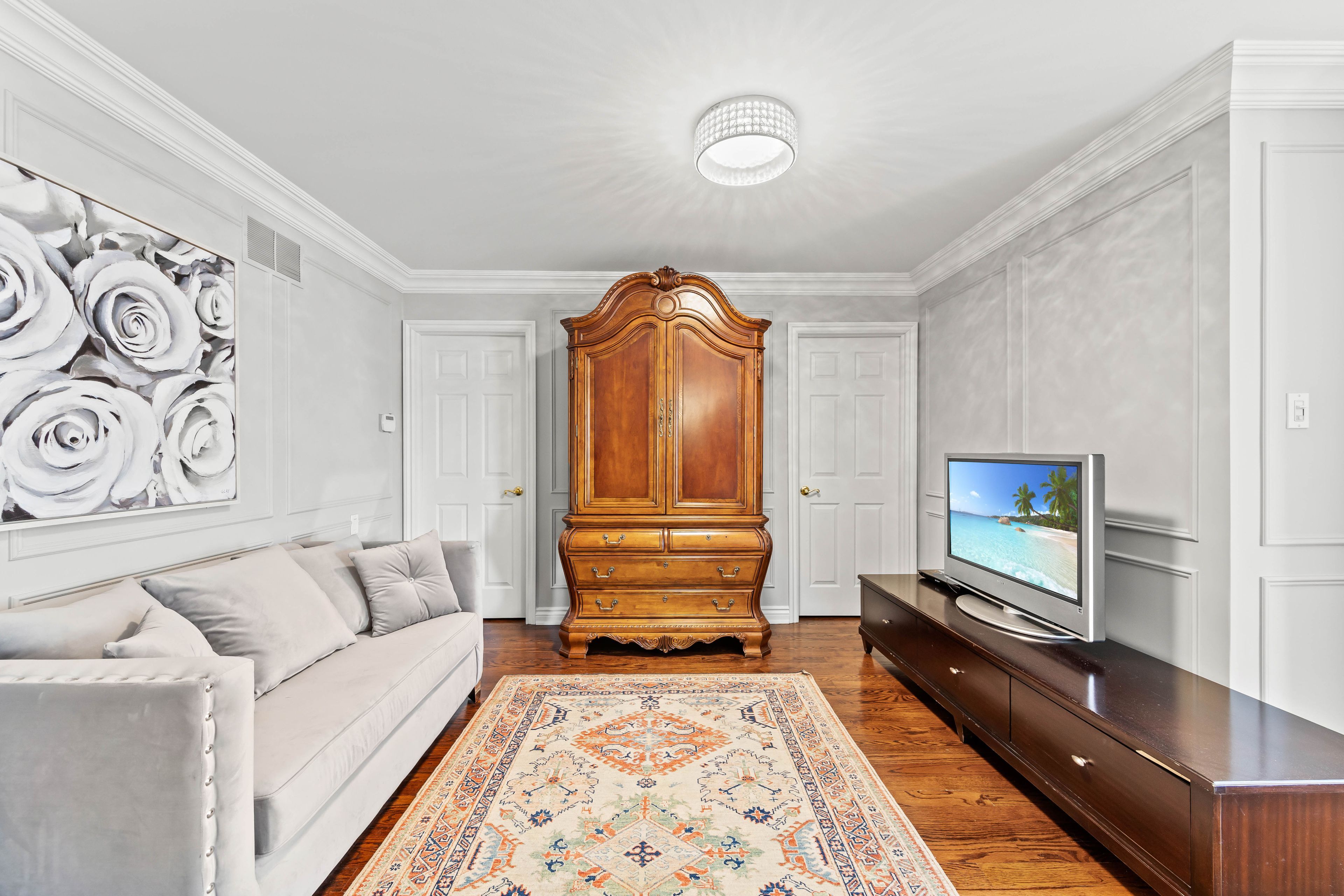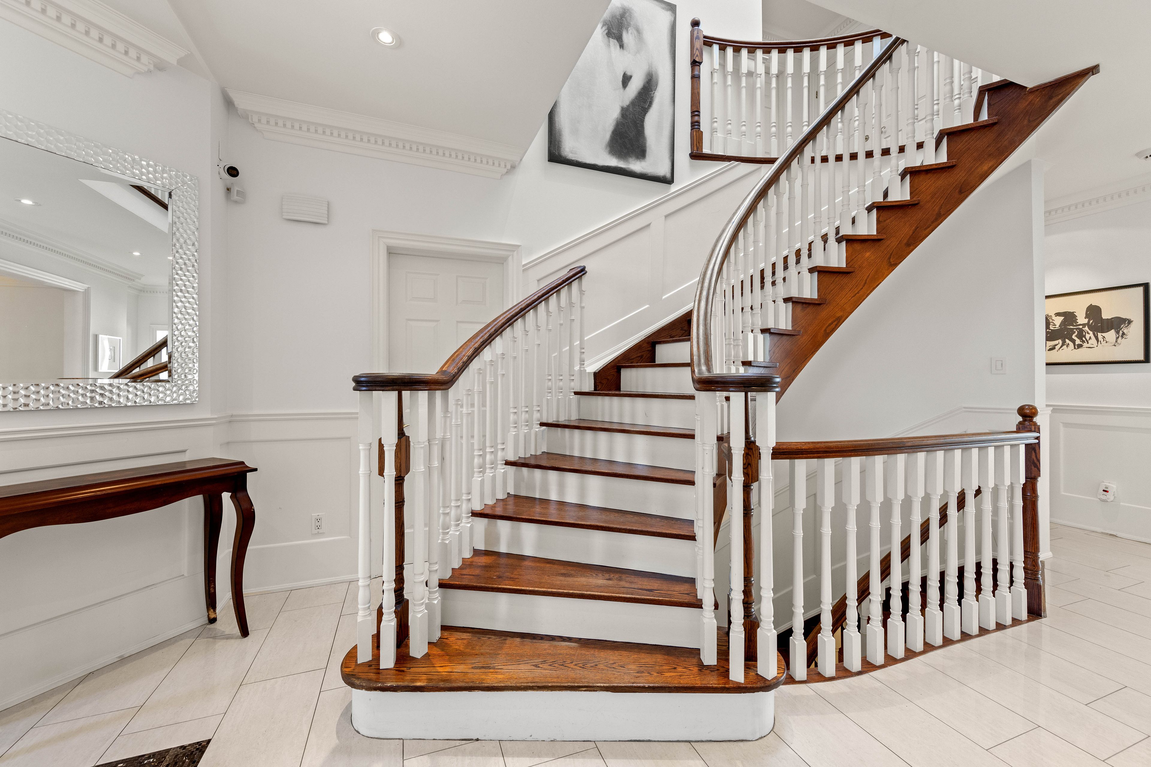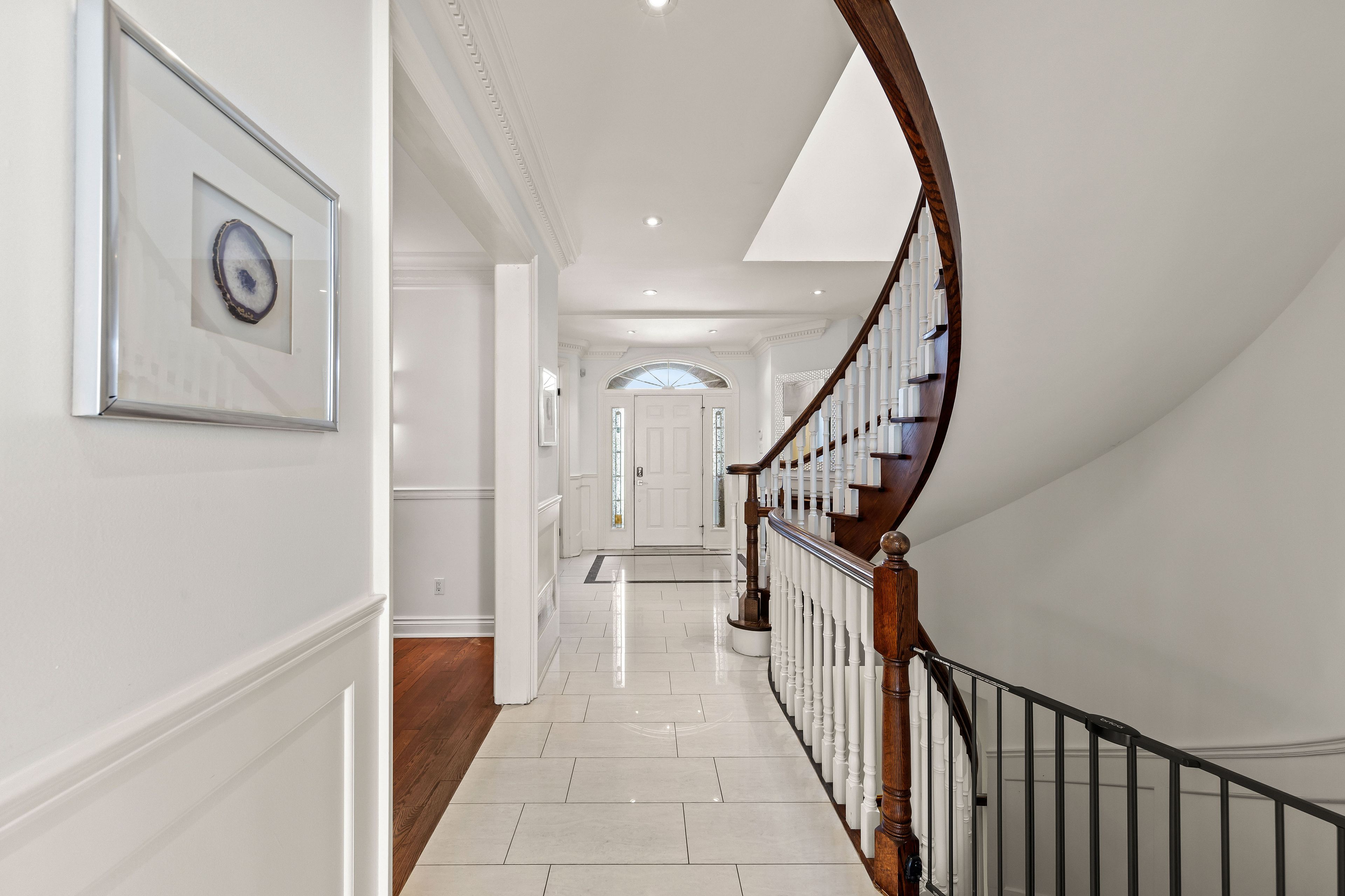 Welcome to this exquisite custom-built residence, nestled in highly sought-after clanton park. Boasting approx 3,300 sq. Ft. Of meticulously designed living space on a generous 50' x 150' lot, this home offers a seamless blend of comfort, & modern functionality. Upon entering, you're greeted by a grand foyer. With soaring 9ft ceilings, hardwood & porcelain flooring, & pot lights throughout, this home creates an inviting & sophisticated ambiance. The separate formal dining room is perfect for entertaining, while the main floor office provides a quiet retreat for work or study. The open-concept, designer kitchen, features granite countertops, new custom cabinets, custom backsplash, &large center island with a breakfast bar. Premium built-in appliances include: gas cooktop, built-in wall oven & microwave, sub-zero fridge, dishwasher, mini fridge, pullout trash disposal bins, ample storage ensuring both style & practicality. Flowing seamlessly from the kitchen is a bright and airy breakfast area, bathed in natural light, leading to a beautifully oversized, fully fenced backyard; a private oasis perfect for family gatherings and outdoor entertaining. The adjacent family room exudes warmth and charm, offering custom built-in shelving, custom window coverings, & a cozy gas fireplace, making it the perfect space to relax and unwind. The upper level features generously sized bedrooms, ideal for growing families. The primary suite is a true sanctuary, accessed through double-doors & featuring elegant wainscoting, crown molding, a wall of windows overlooking the rear gardens, a sitting area with a new gas fireplace, walk-in closet with custom shelving, and a luxurious 6-piece ensuite; complete with a soaker tub, glass-enclosed shower, & dual vanities elevate the primary suite to a spa-like retreat. The versatile, fully finished lower level offers endless possibilities, boasting a spacious rec/family & gym area, a galley kitchen, & a potential nanny/in-law suite.