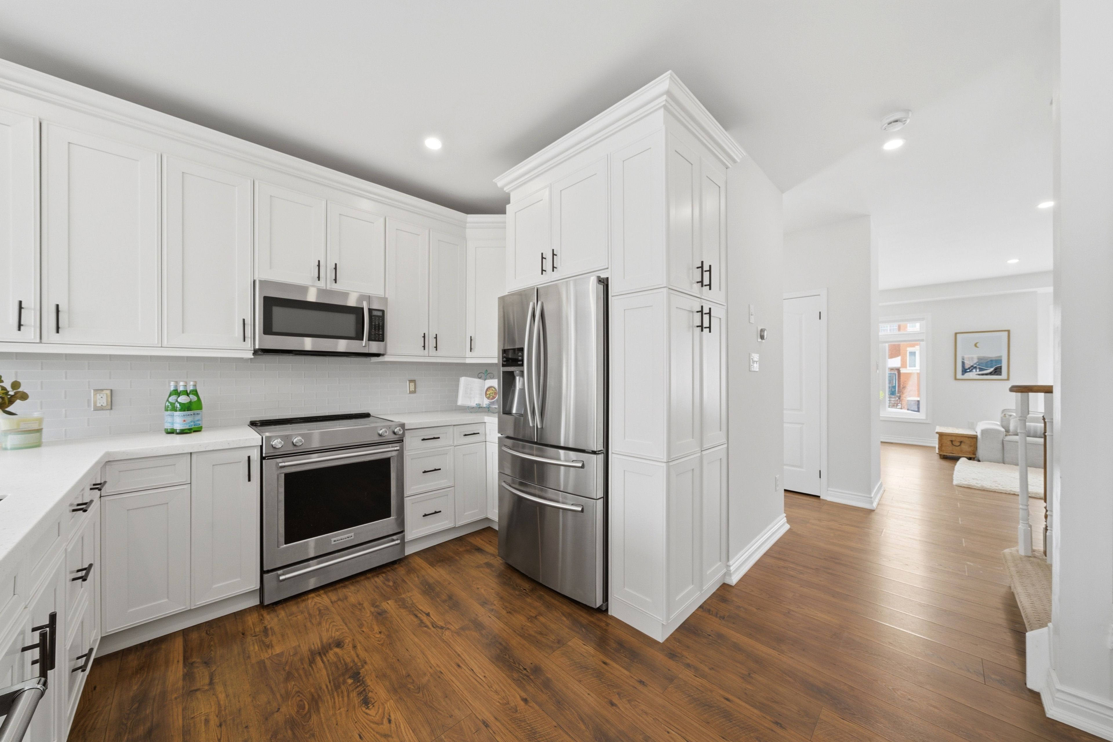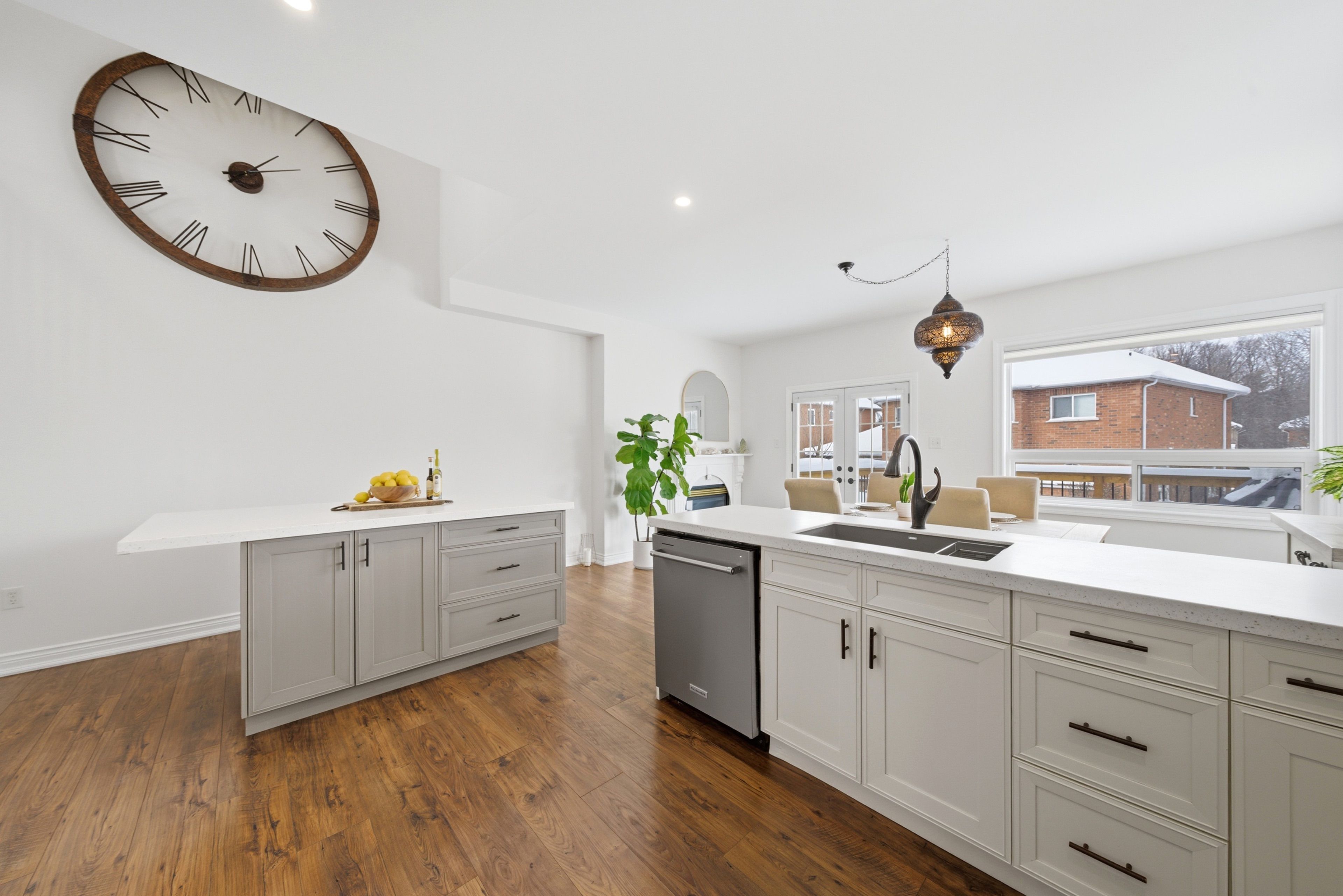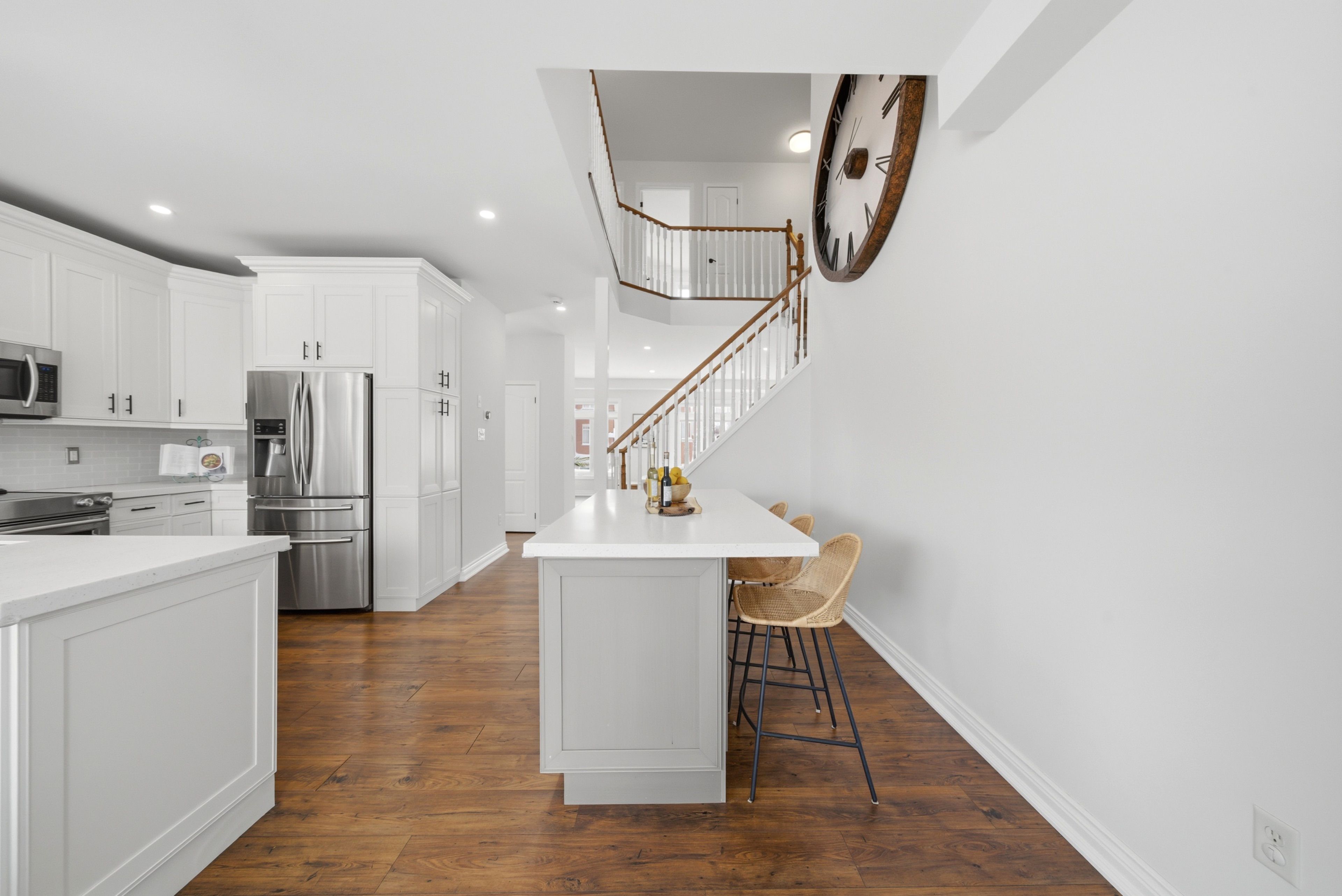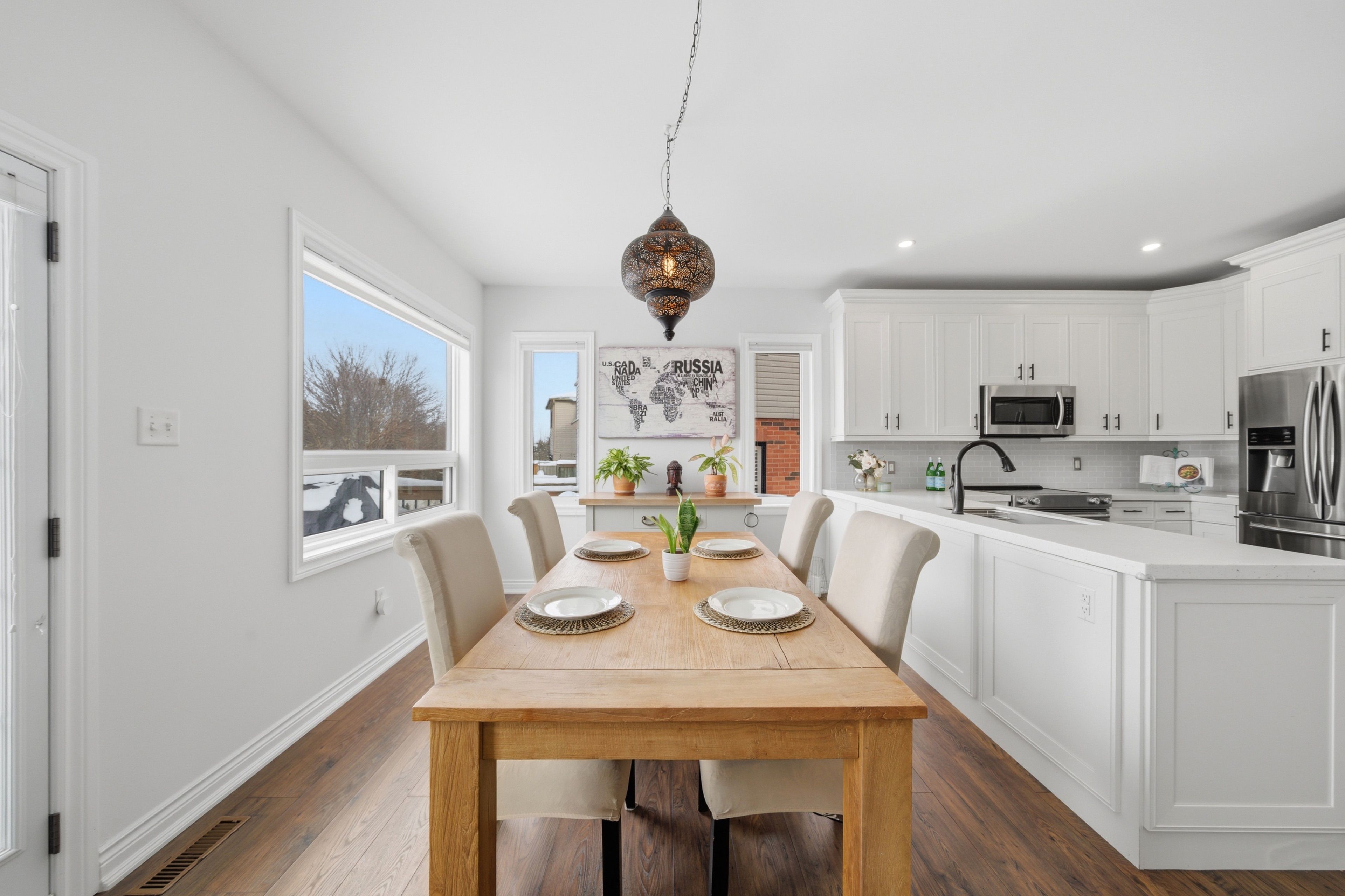 The one you've been waiting for has arrived. Tucked into one of georgetown's most welcoming cul-de-sacs, this rare dbl car garage end-unit freehold townhome offers 1,800+ sq ft of beautifully renovated living designed for every stage of life. Families, professionals, and downsizers alike are drawn to grey owl run for its strong sense of community, nearby trails, and exceptional convenience. Step inside to soaring ceilings and a bright, open-concept layout filled with natural light, enhanced by a skylight that adds warmth and dimension to the upper level. The heart of the home is a stunning chef-inspired kitchen featuring an oversized breakfast island, stone countertops, stainless steel appliances, and soft-close cabinetry. The spacious living area with gas fireplace creates the perfect setting for both everyday comfort and effortless entertaining. Upstairs offers generous bedrooms and recently renovated bathrooms (2023). The finished walk-out basement provides flexible space for a recreation room, office, or gym, with direct access to the double car garage. Enjoy outdoor living with a private two-tier deck w/bbq gas hookup, gorgeous low maintenance perennials, privacy fencing, and ample green space. With no sidewalk, parking is abundant-4 cars on the driveway plus 2 in the garage. Major updates include high efficiency furnace (6 yrs), a/c (5 yrs), windows (2021), and added attic insulation (4 yrs). Steps to trails, schools trafalgar sports plex & georgetown hospital. Minutes to downtown georgetown and go train access. Renovated, functional & ideally located w/rare parking & walk-out basement. This home truly is the total package!