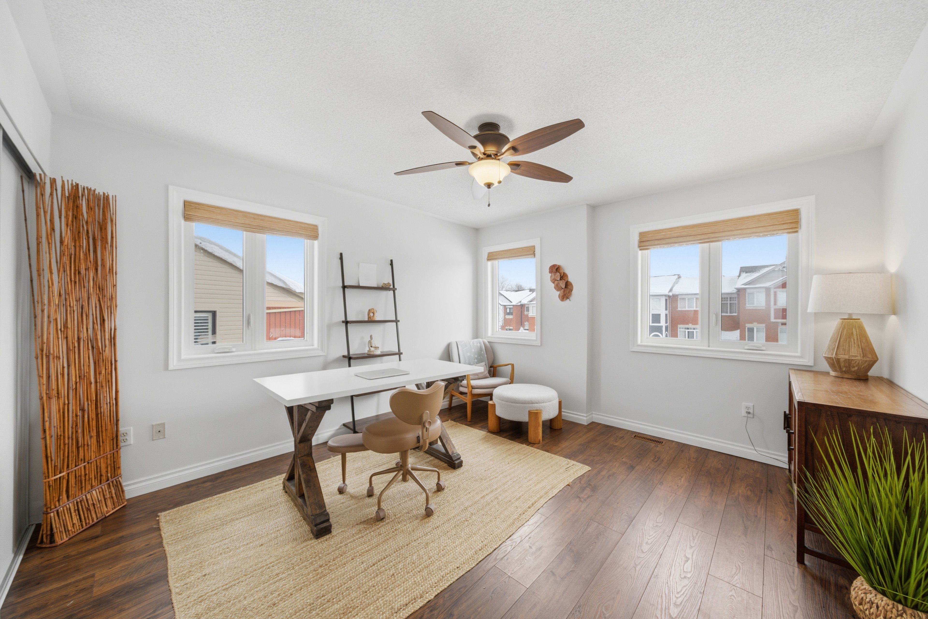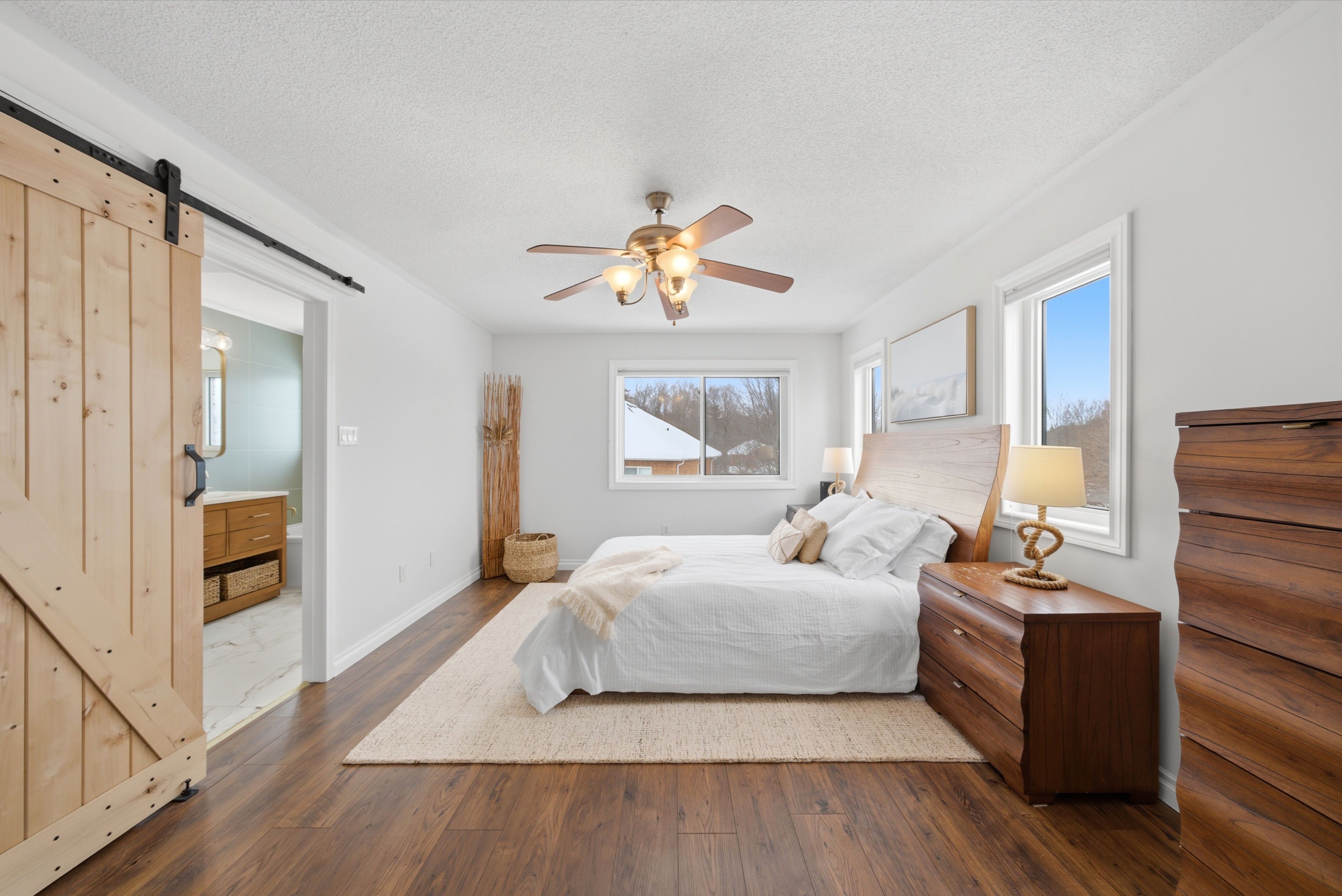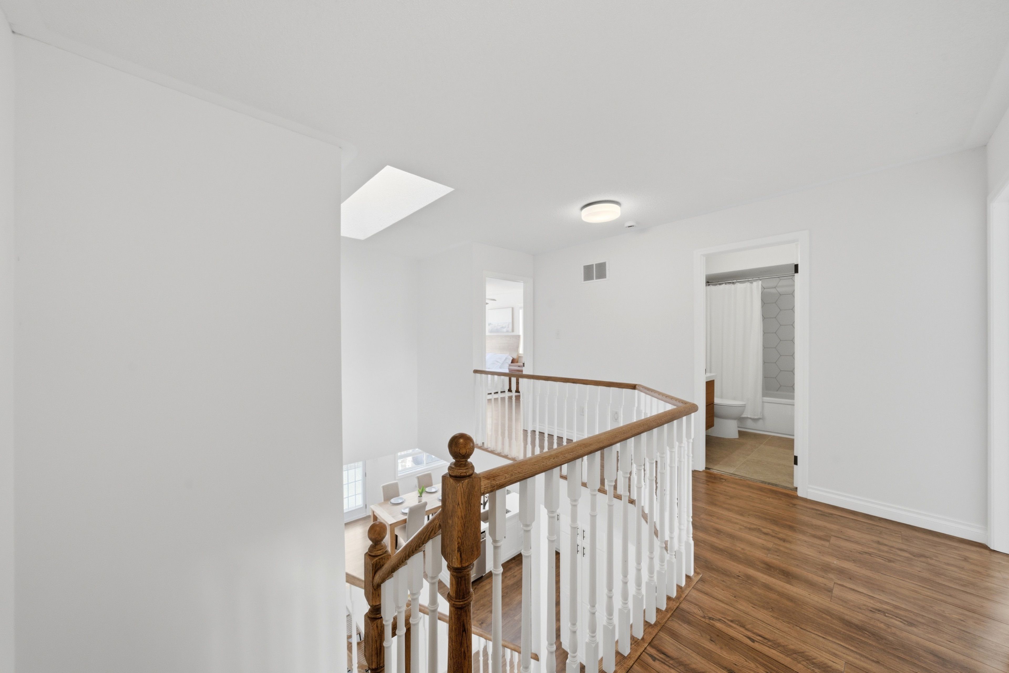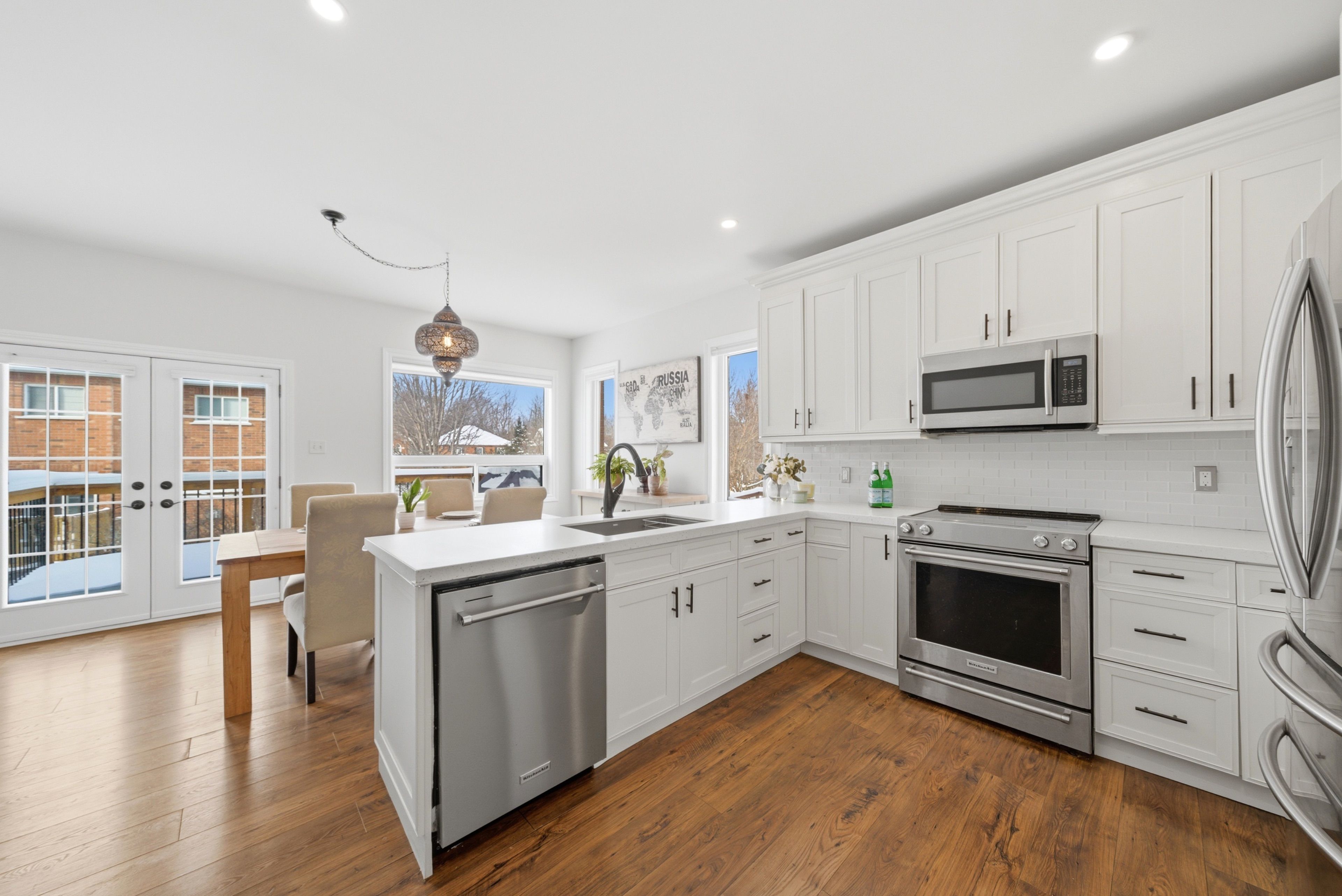 The one you've been waiting for has arrived. Tucked into one of georgetown's most welcoming cul-de-sacs, this rare dbl car garage end-unit freehold townhome offers 1,800+ sq ft of beautifully renovated living designed for every stage of life. Families, professionals, and downsizers alike are drawn to grey owl run for its strong sense of community, nearby trails, and exceptional convenience. Step inside to soaring ceilings and a bright, open-concept layout filled with natural light, enhanced by a skylight that adds warmth and dimension to the upper level. The heart of the home is a stunning chef-inspired kitchen featuring an oversized breakfast island, stone countertops, stainless steel appliances, and soft-close cabinetry. The spacious living area with gas fireplace creates the perfect setting for both everyday comfort and effortless entertaining. Upstairs offers generous bedrooms and recently renovated bathrooms (2023). The finished walk-out basement provides flexible space for a recreation room, office, or gym, with direct access to the double car garage. Enjoy outdoor living with a private two-tier deck w/bbq gas hookup, gorgeous low maintenance perennials, privacy fencing, and ample green space. With no sidewalk, parking is abundant-4 cars on the driveway plus 2 in the garage. Major updates include high efficiency furnace (6 yrs), a/c (5 yrs), windows (2021), and added attic insulation (4 yrs). Steps to trails, schools trafalgar sports plex & georgetown hospital. Minutes to downtown georgetown and go train access. Renovated, functional & ideally located w/rare parking & walk-out basement. This home truly is the total package!