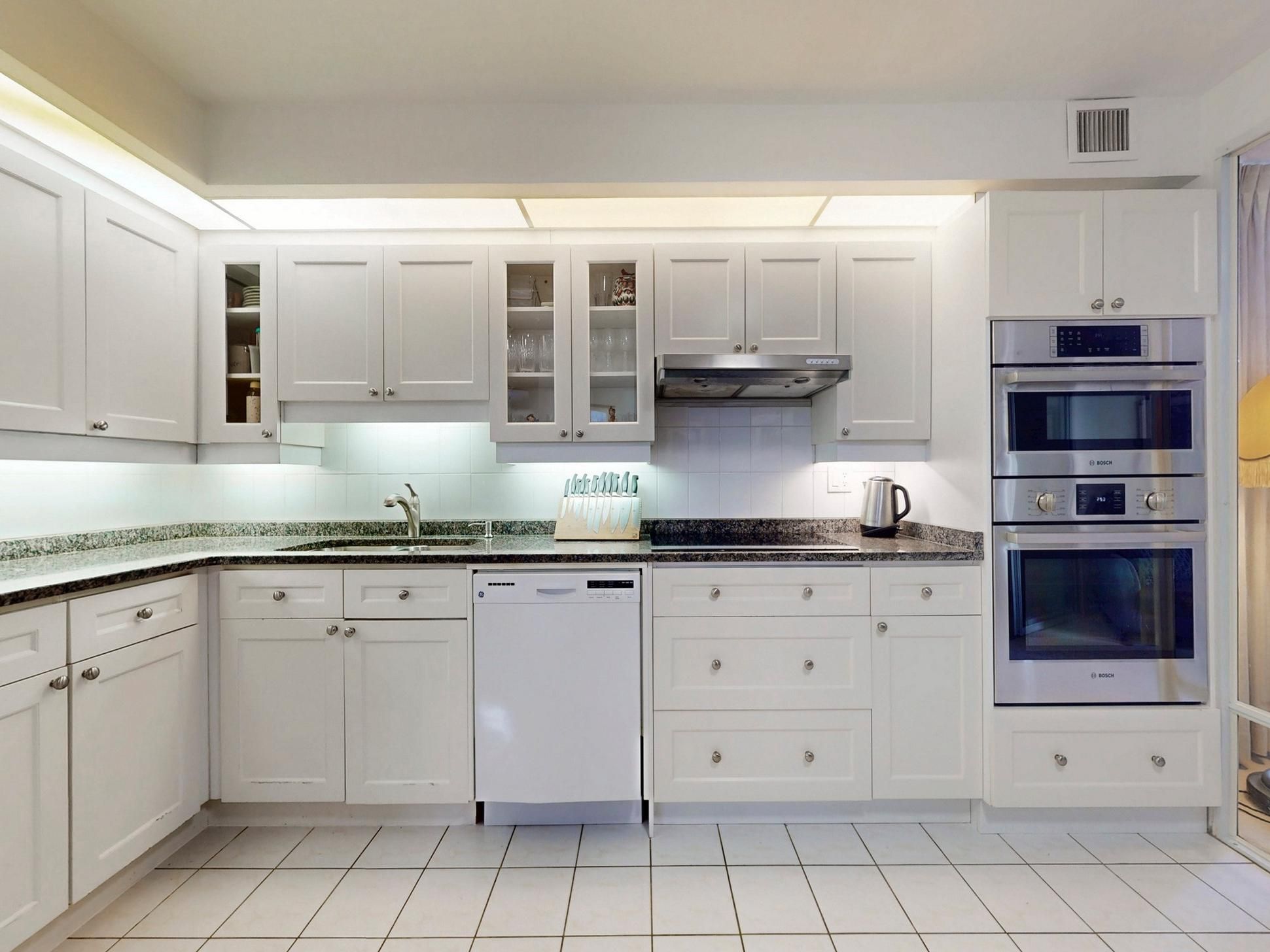 • Well-appointed kitchen with granite counters and built-in appliances.
