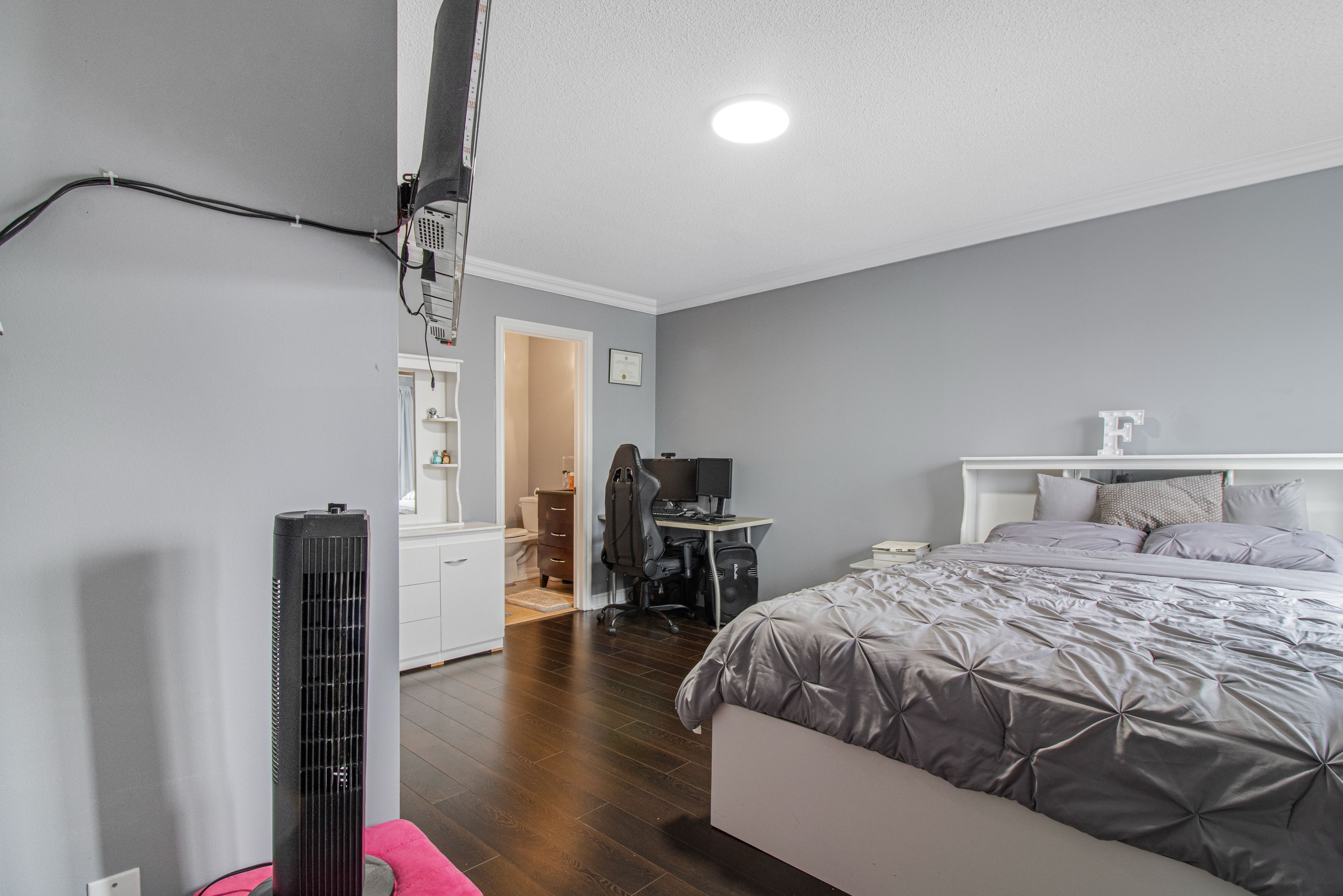 • Large master bedroom with a three-piece ensuite bathroom.