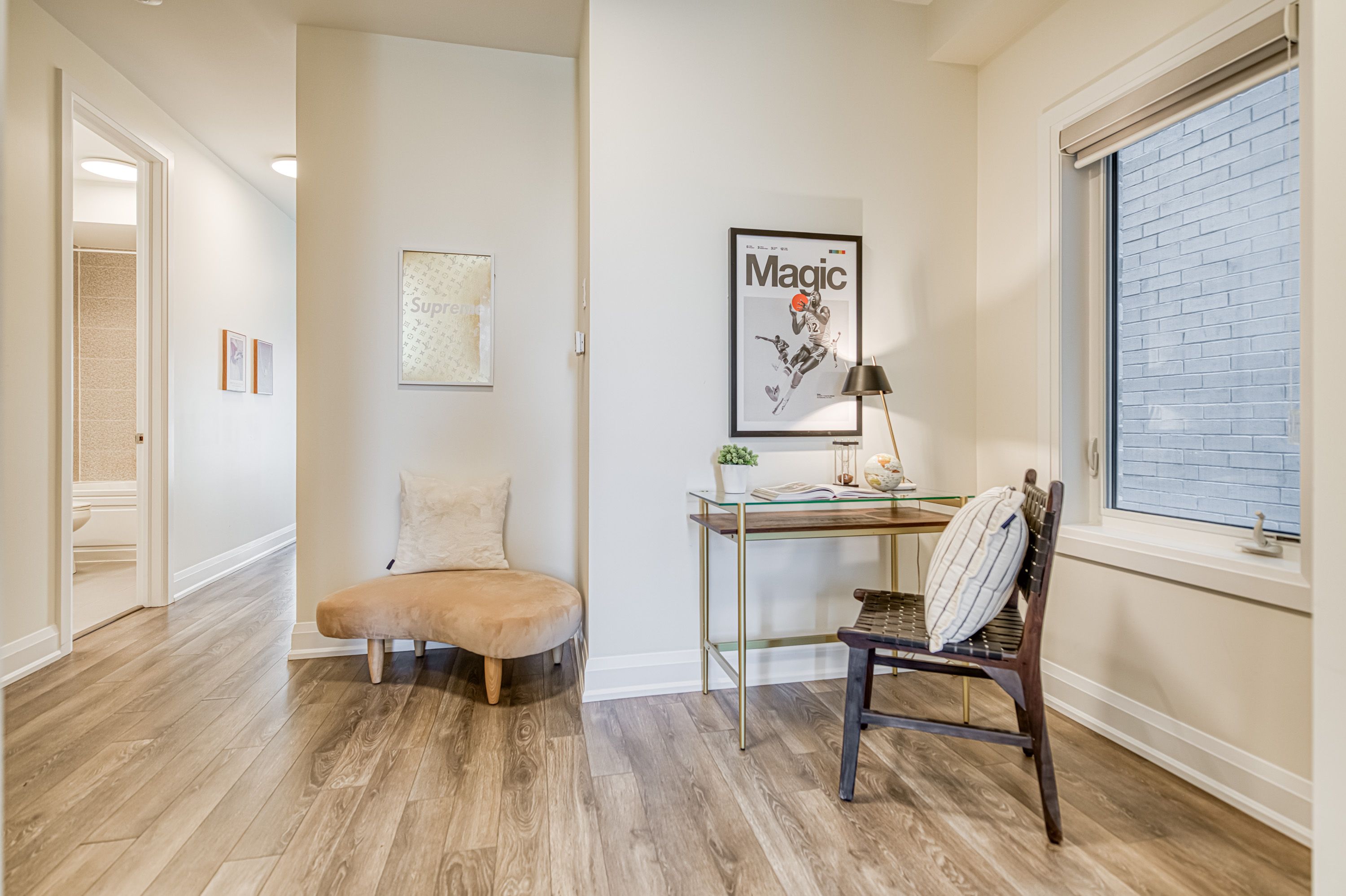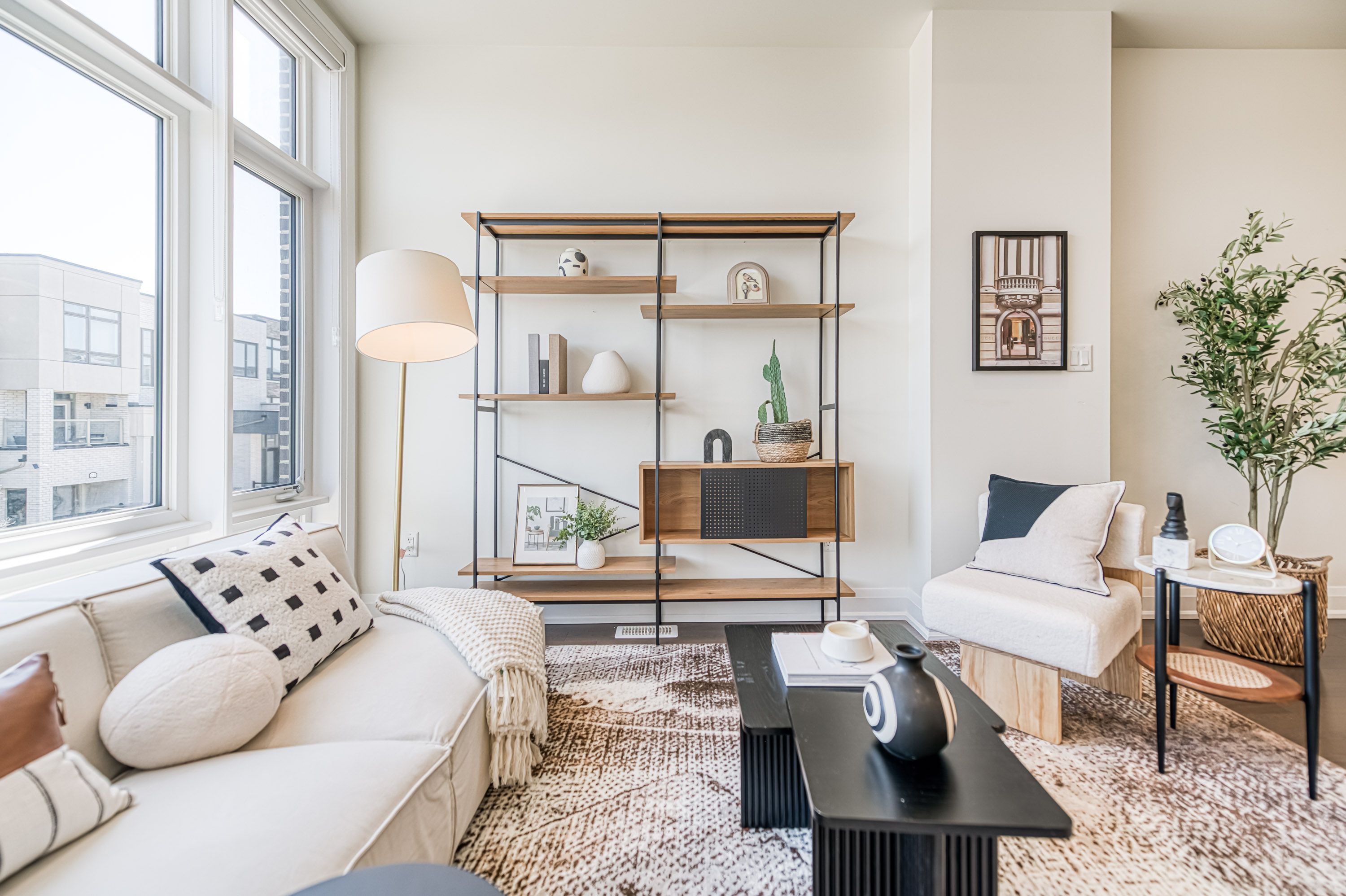 • Light-filled rooms with floor-to-ceiling windows and high ceilings.