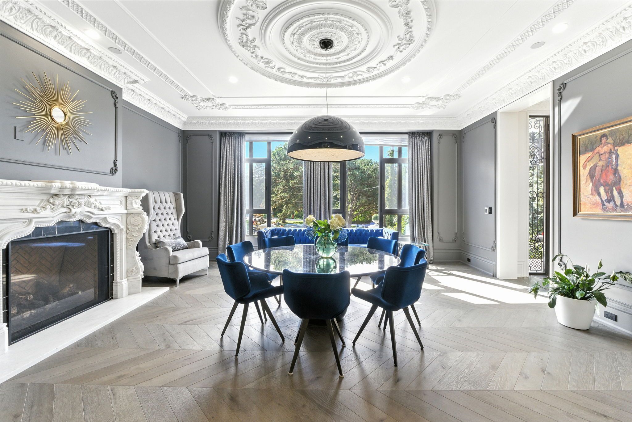Welcome to a class of its own. A european-inspired masterpiece that seamlessly blends timeless architecture with modern luxury. From the moment you arrive, sophistication and craftsmanship define every detail of this extraordinary residence. A grand glass and wrought-iron door sets the tone, opening to elegant crown mouldings, soaring ceilings, and bold yet refined finishes that speak to the most discerning sense of style. The formal dining room is a statement in itself. An inviting space where family dinners and elegant gatherings feel equally at home, designed to celebrate life's finest moments. The sleek, modern kitchen combines aesthetic beauty with functionality, featuring built-in appliances and bespoke details that make every culinary experience effortless and inspired. For those who work from home, a private office overlooking the ravine offers an inspiring backdrop, a peaceful setting where productivity meets tranquility. Beyond the interiors, discover a wellness-inspired retreat designed for ultimate relaxation. A sparkling pool, rejuvenating hot tub, and luxurious steam shower create an atmosphere of serenity and renewal. Multiple outdoor living spaces provide the perfect setting for both grand entertaining and quiet reflection surrounded by nature's beauty. Inside, an indoor garden brings the outdoors in a rare feature that enhances the home's harmonious connection between architecture and nature. Every element of this residence has been thoughtfully curated to evoke balance, elegance, and inspired living. Timeless european elegance meets contemporary luxury. A world of magnificence awaits!