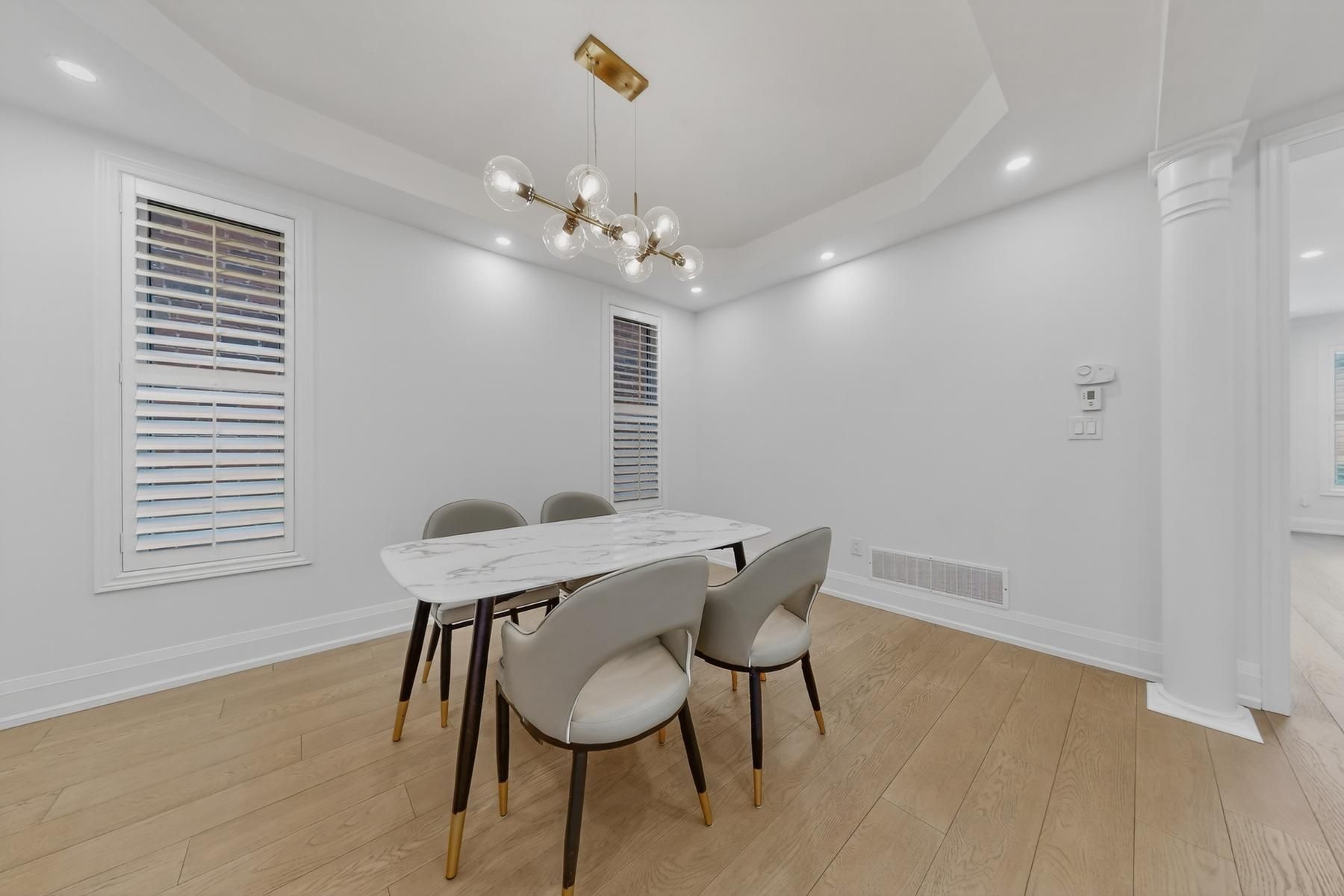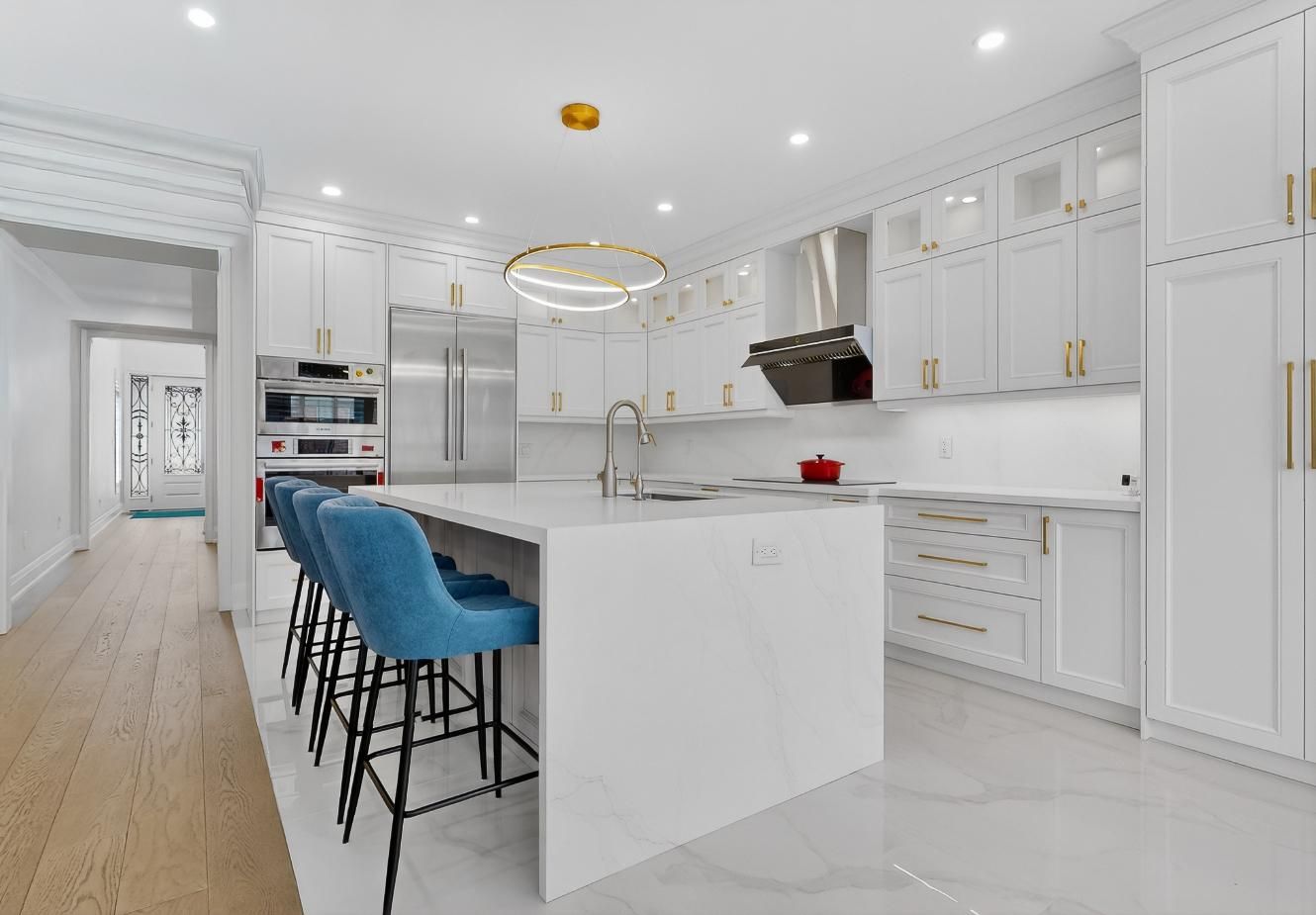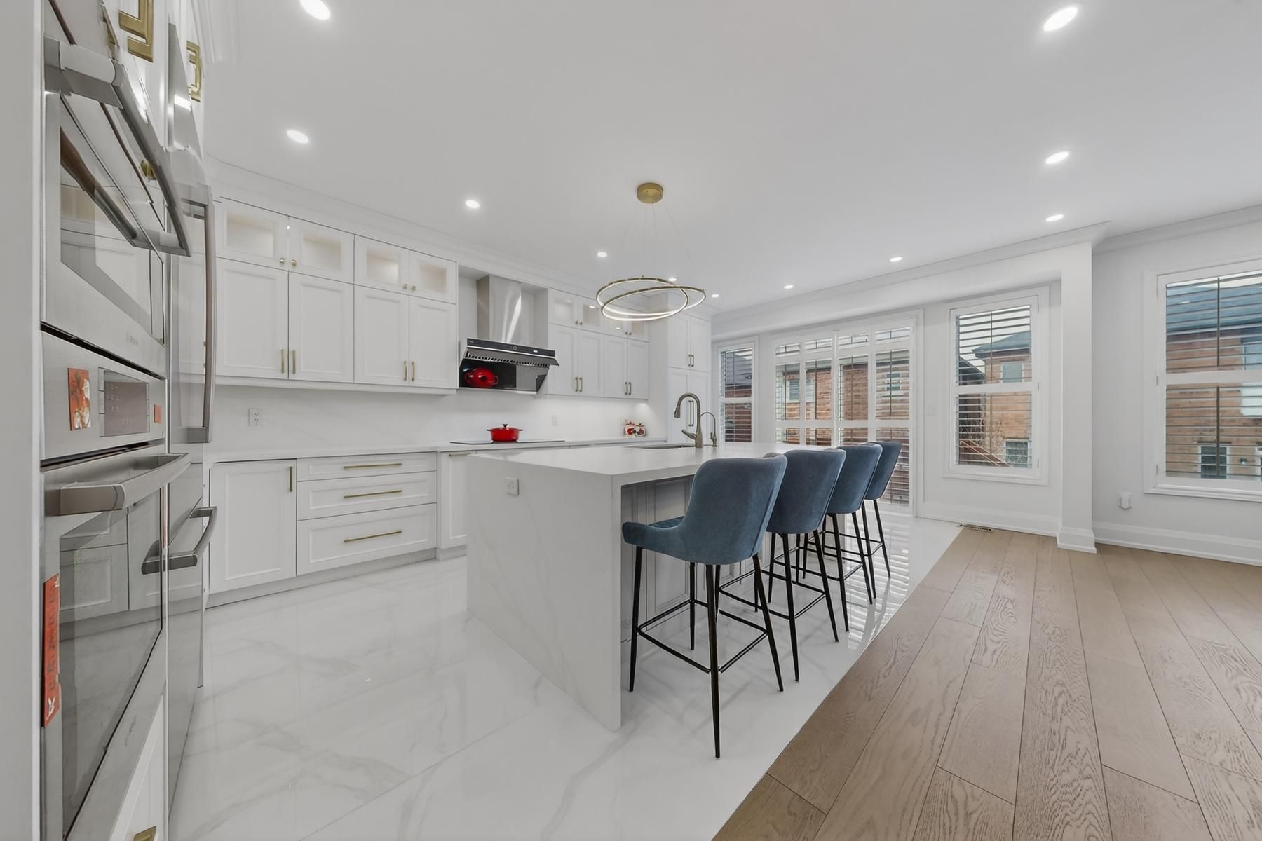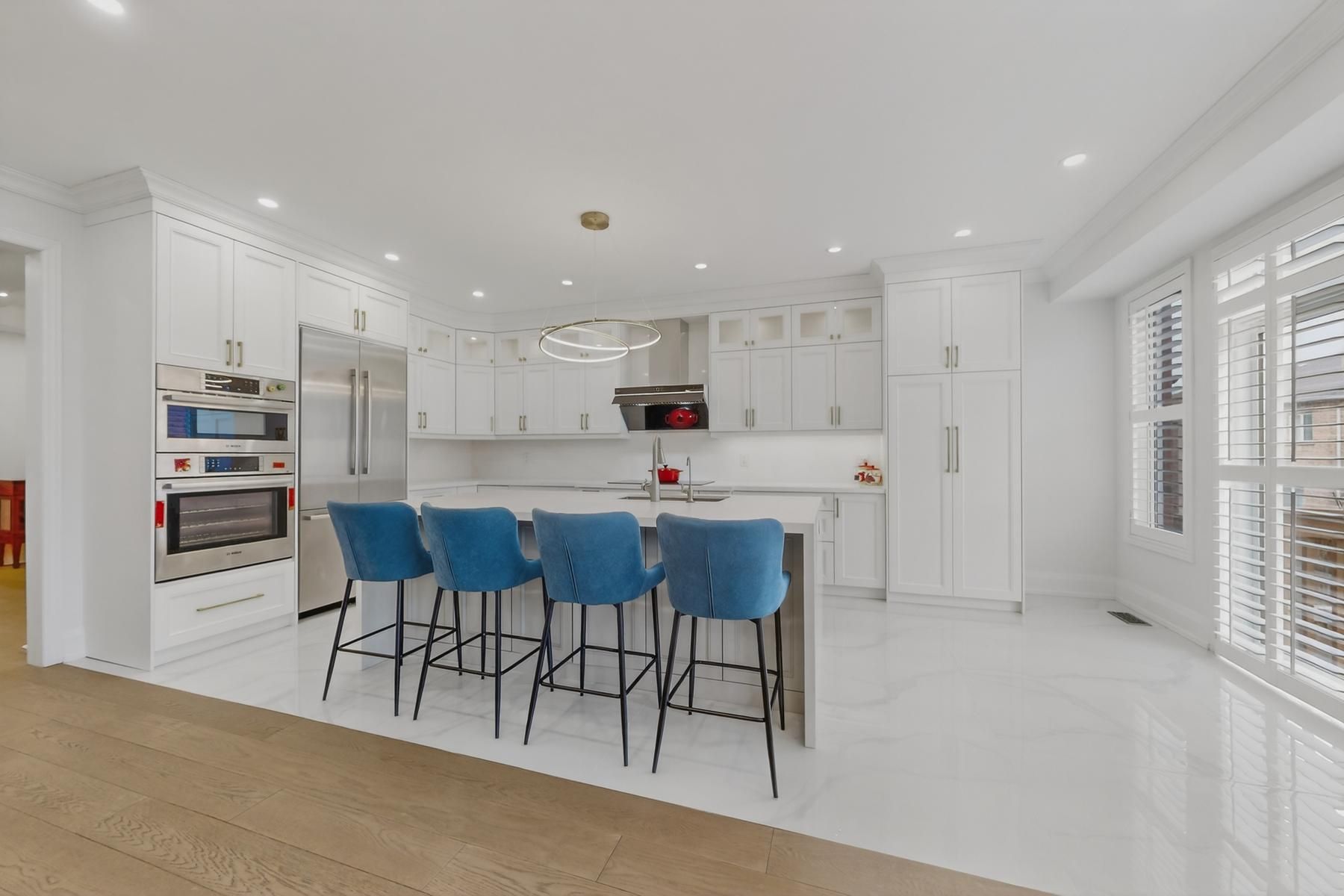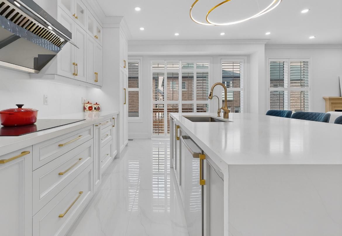 Newly renovated luxury home offering 4+1 spacious bedrooms, located in the highly sought-after berczy community. A main-floor office can be easily converted into an additional bedroom, providing flexible living options. This residence features thoughtfully upgraded interior living spaces, with significant investment in premium finishes throughout. The home boasts a grand open-to-above foyer with soaring ceilings, 9-foot ceilings on the main floor, and elegant hardwood flooring throughout. Refined details include iron balusters, upgraded baseboards, and seamless glass shower doors, creating a timeless and sophisticated aesthetic. Large windows with california shutters fill the home with an abundance of natural light. The expansive primary bedroom offers generous closet space and a spa-inspired 5-piece ensuite bathroom. The gourmet eat-in kitchen is equipped with stainless steel appliances and a centre island, perfect for everyday living and entertaining. A large finished basement provides flexible space with endless potential for customization. Ideally situated within walking distance to top-ranked pierre trudeau high school, supermarkets, parks, and other essential amenities. An exceptional opportunity to lease a luxury home in a prime, family-friendly community, located within a top-ranked school district.