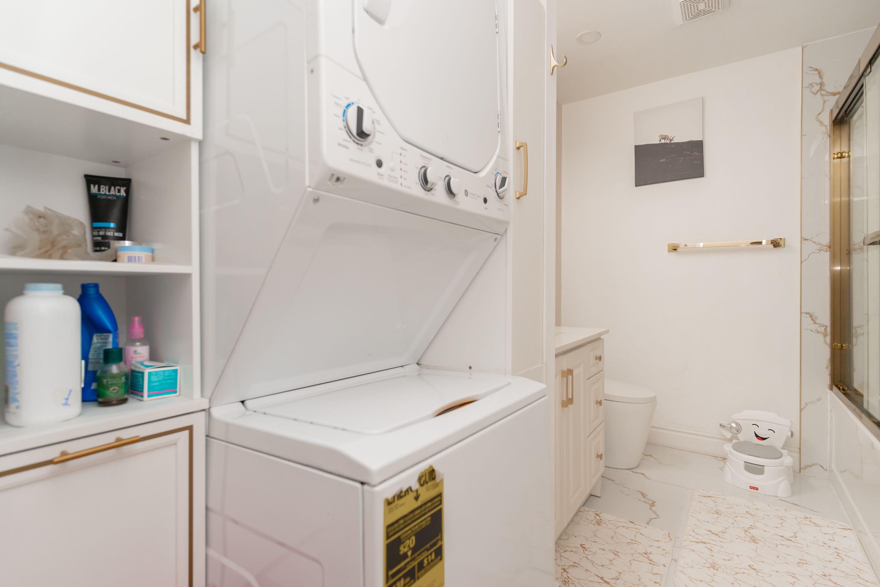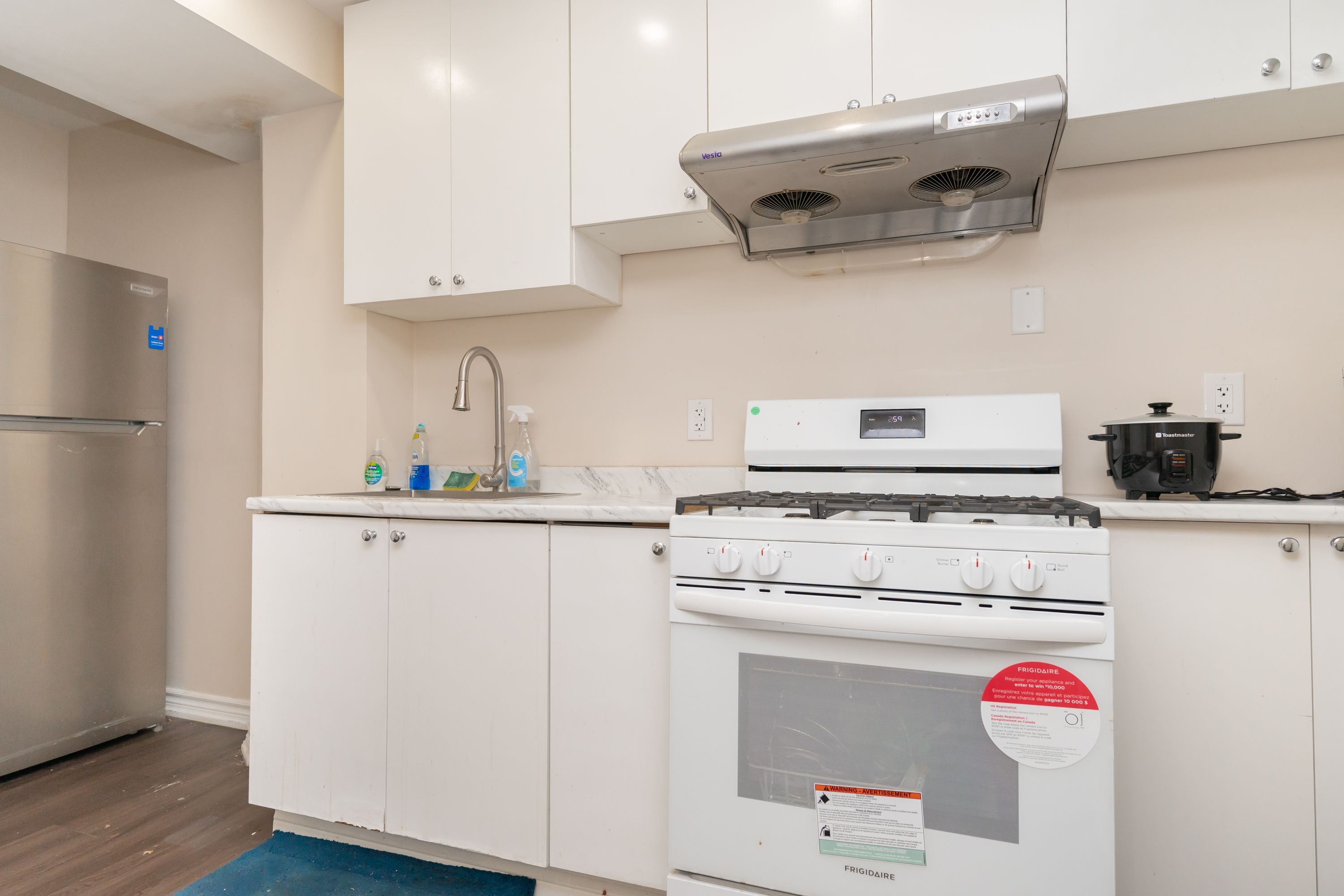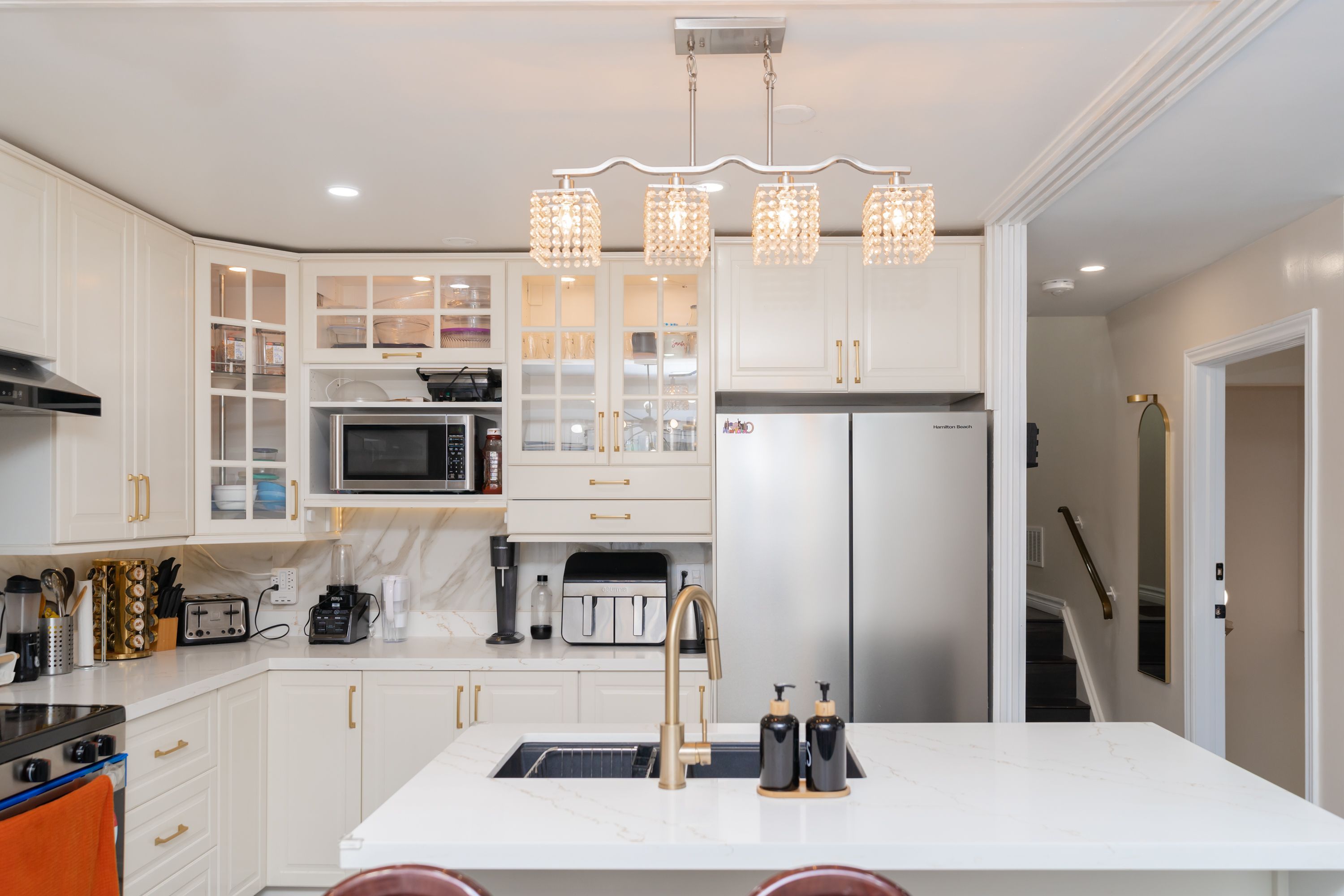 • Modern kitchen with quartz countertops and stainless steel appliances included.