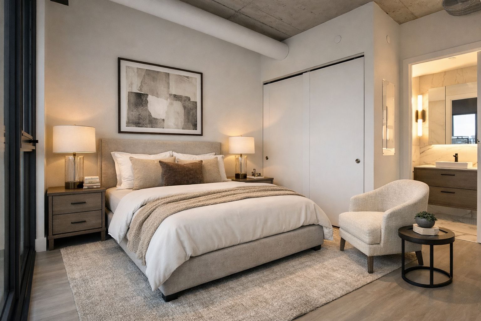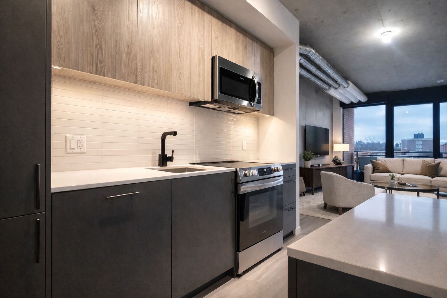 • Modern 2-bedroom, 2-bathroom condo in a newly completed downtown development.
