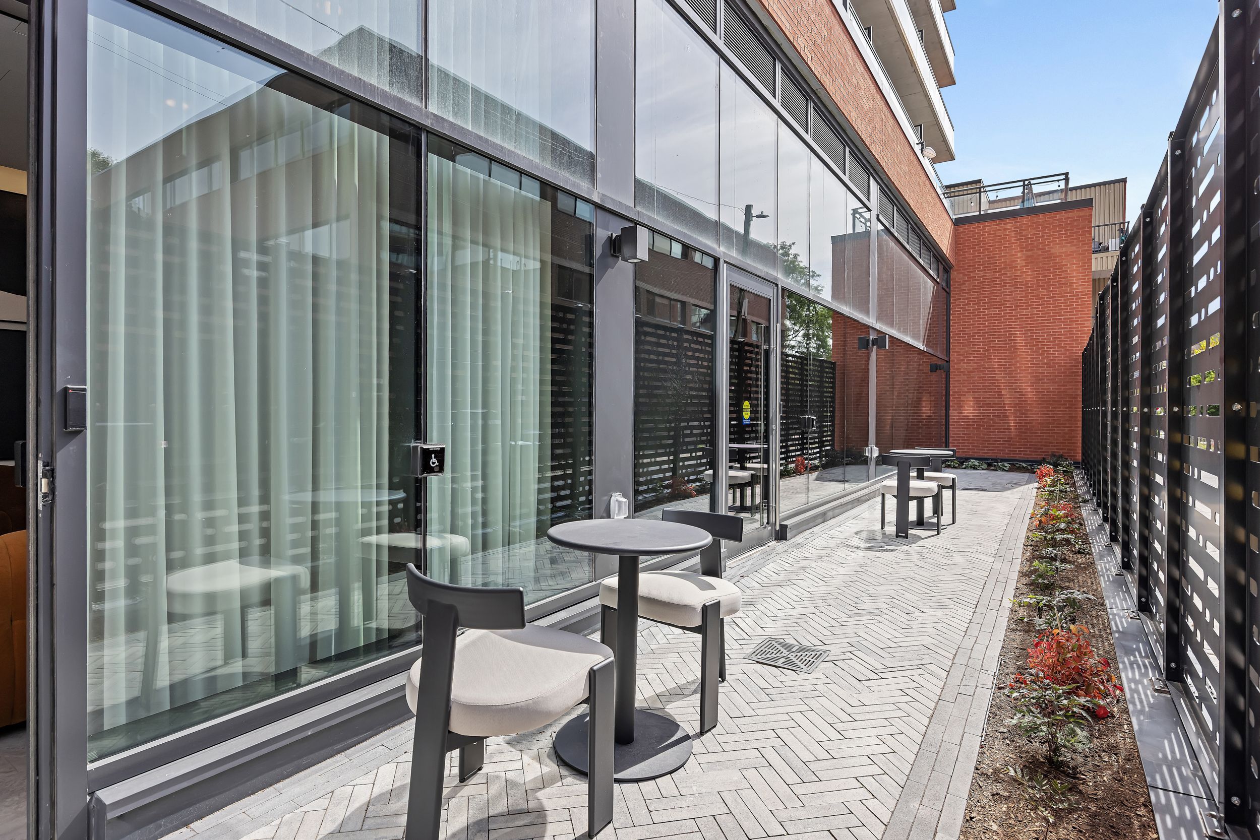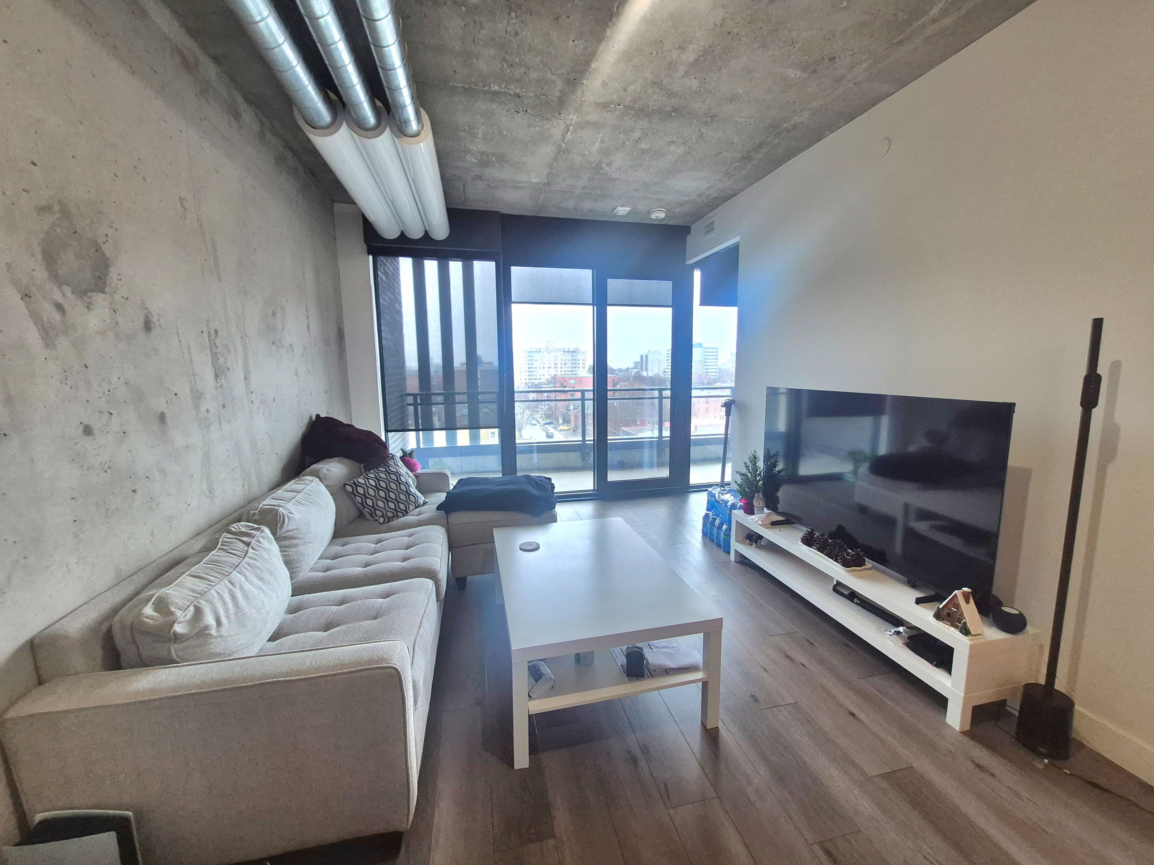 • Bright open concept living space with floor-to-ceiling windows.