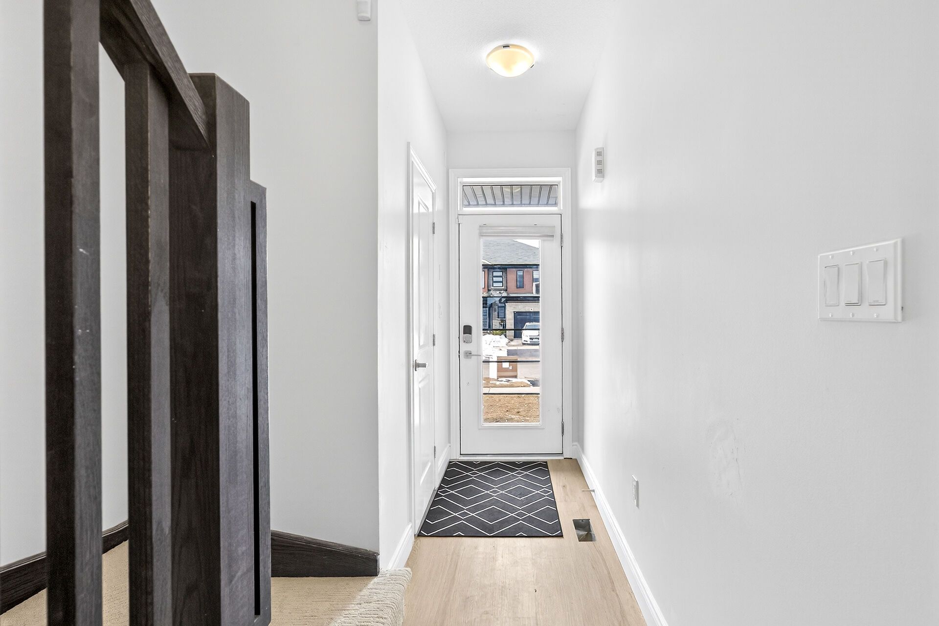 Welcome to the gold standard of west brant living! This impeccably renovated freehold townhouse offers a rare combination of designer aesthetics and everyday durability. Step inside to discover a bright, open-concept main floor featuring brand-new, 100% waterproof flooring that flows seamlessly throughout perfect for families and pets. The heart of the home is a refreshed, modern kitchen equipped with a full suite of stainless steel appliances, complemented by new designer lighting fixtures and crisp, modern baseboards. The transformation continues upstairs with carpet-free appeal and bathrooms elevated with all-new vanities. Enjoy the ultimate convenience of second-floor laundry-no more hauling baskets to the basement! Step through the sliding doors to your private backyard, ideal for summer bbqs and outdoor relaxation. With a high-efficiency ac to keep you cool all summer, this home isn't just "move-in ready" - it's a fully updated masterpiece where every detail has been handled for you. Located in a highly desirable, family-friendly neighborhood close to top-tier schools, scenic trails and playgrounds. This is the one you've been waiting for!