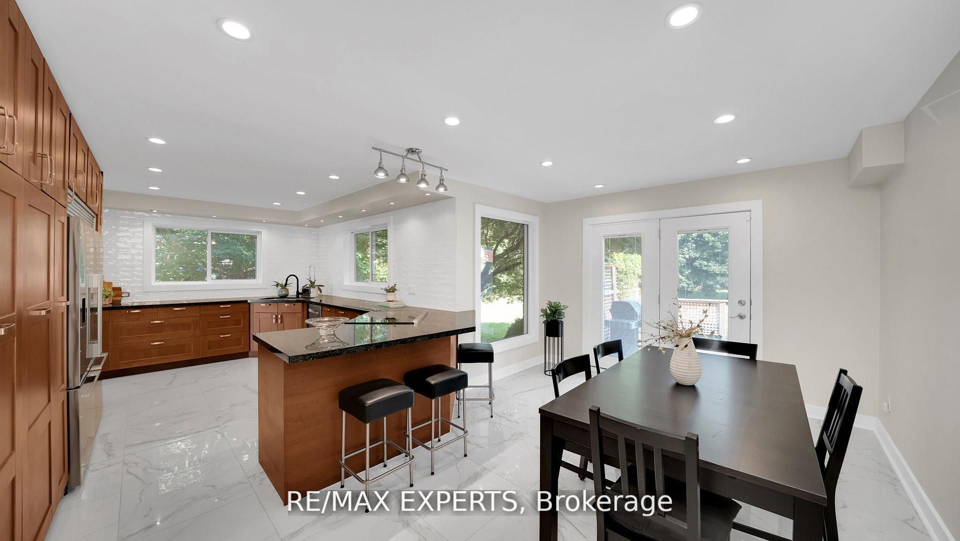• Bright chef's kitchen with modern appliances and custom cabinetry.