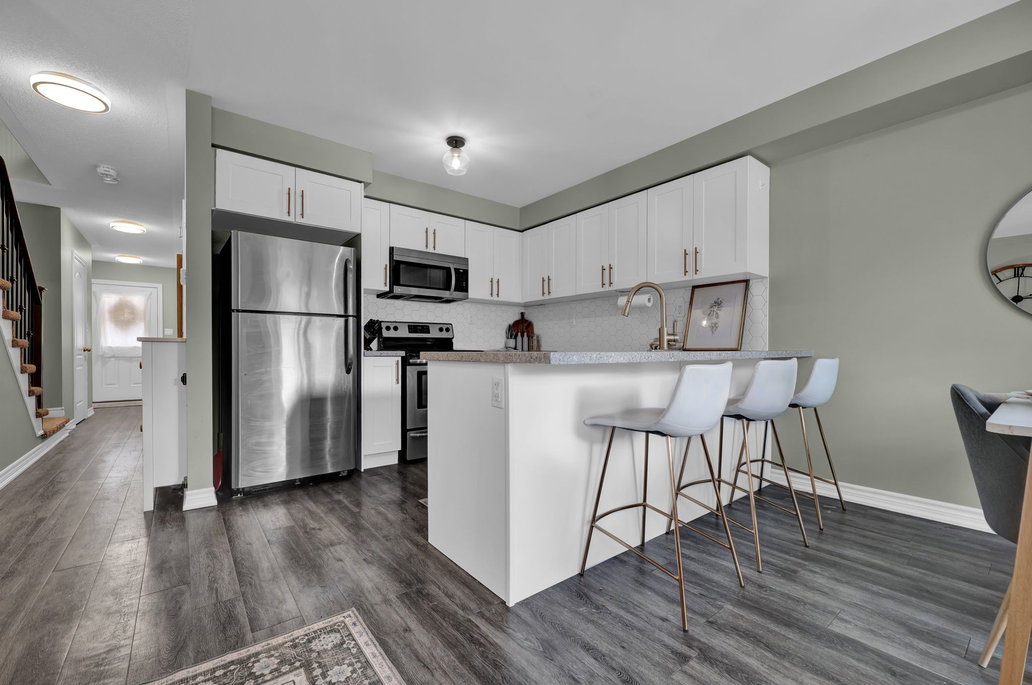 Bright, stylish and move in ready in a prime north bowmanville location. Welcome to this immaculate 3 bedroom, 2 storey townhome nestled in a family friendly pocket just minutes to historic downtown bowmanville. Enjoy unbeatable convenience with top rated schools, parks, shops and restaurants nearby, as well as quick and easy access to both highway 401 and 407 for commuters. The main floor offers a functional and updated layout featuring a modern kitchen with granite countertops, breakfast bar and stainless steel appliances and walks out to the deck, providing an ideal space for outdoor dining and entertaining. A bright living room create a clean, contemporary feel throughout the main level. Convenient garage access from the home adds everyday practicality. Upstairs, the spacious primary bedroom includes a walk in closet and semi ensuite access. Two well sized secondary bedrooms offer flexibility for family, guests or a home office. The professionally finished basement with an oversized window provides additional living space perfect for a recreation room, workspace or play area. A well maintained home in an exceptional location close to amenities and major commuter routes, this property is an excellent opportunity in one of bowmanville's most desirable neighbourhoods.