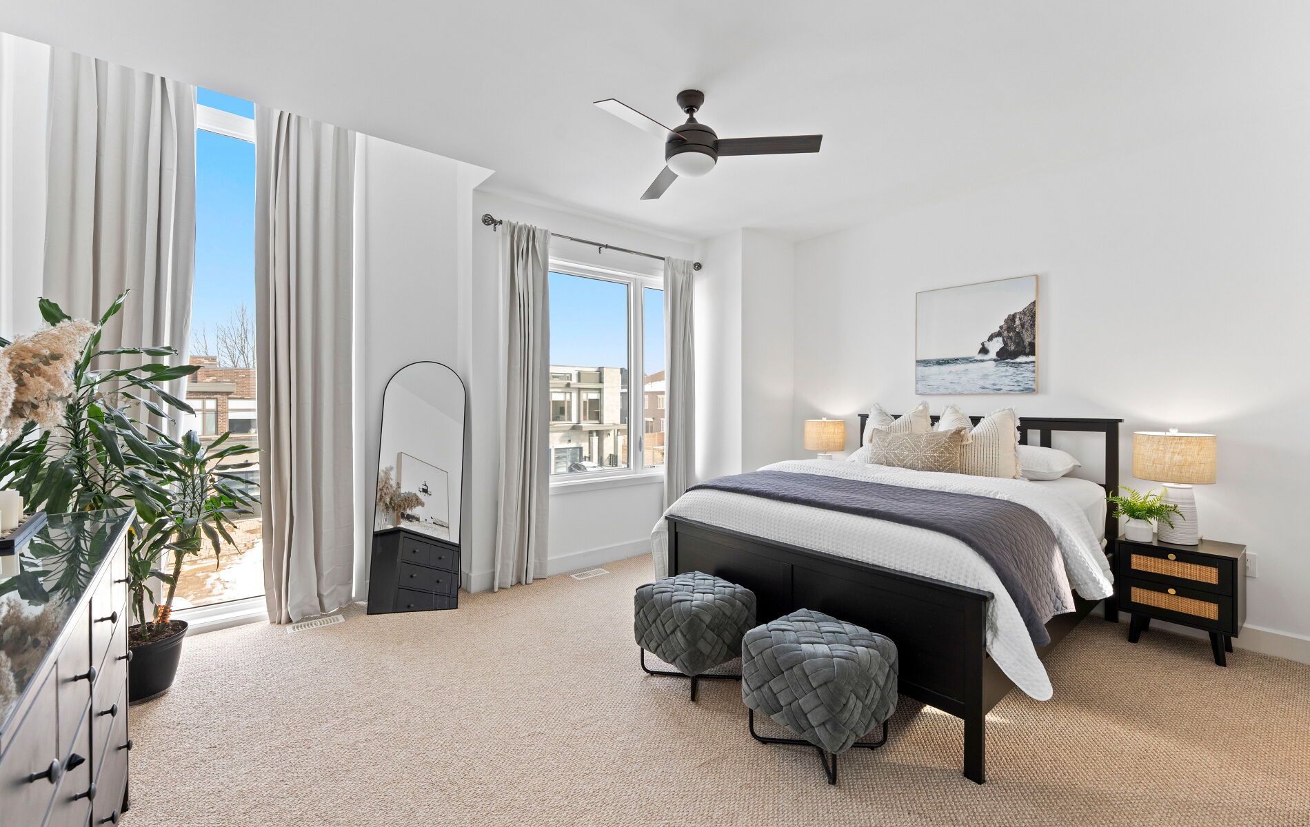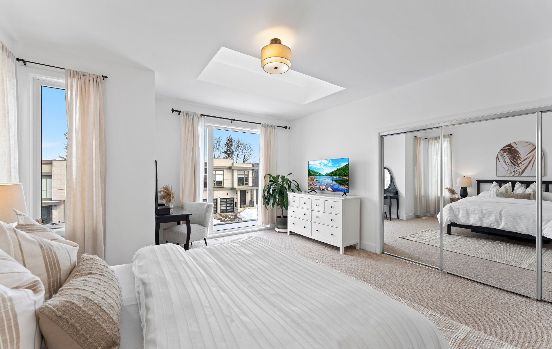 • Open concept design with 10 ft ceilings and large windows for natural light.