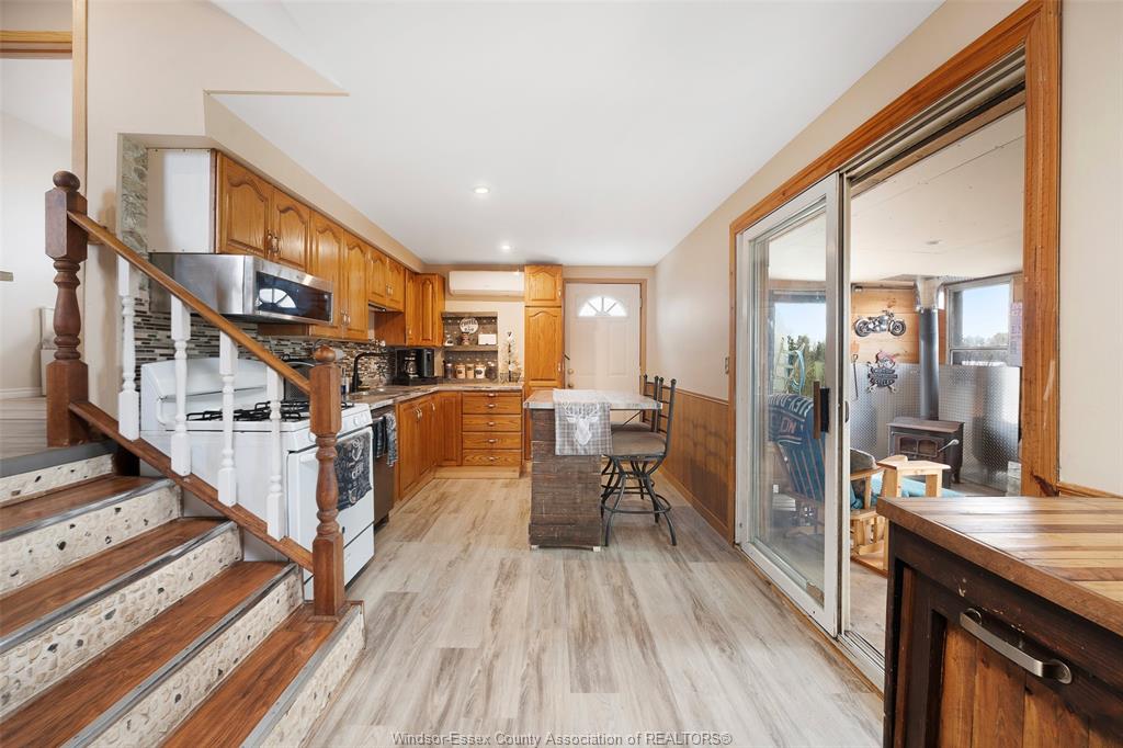 Welcome to peaceful county living at an incredible price of $299,900!! This charming 2-bedroom home sits on a beautiful half-acre, surrounded by trees for ultimate privacy. Just minutes from the water & point pelee national park, this property offers the perfect blend of serenity & lifestyle. Enjoy a spacious 4-season sunroom w/ wood burning fireplace, recently updated eat-in kitchen w/ appliances incl, main floor laundry & full bath. Upstairs features a bright living area w/ fireplace, + 2 bedrooms incl a primary suite w/ walk-in closet & jacuzzi ensuite w/ private porch access. Outside, you'll love the 20x22 detached shop w/ concrete floor, motorcycle lift, & pellet stove, + storage shed & chicken coop. Updates incl siding (2020), roof (2021) & newer flooring. Perfect for first time home buyers or anyone craving quiet country living & being close to the water - this one is a must see & will not last long!