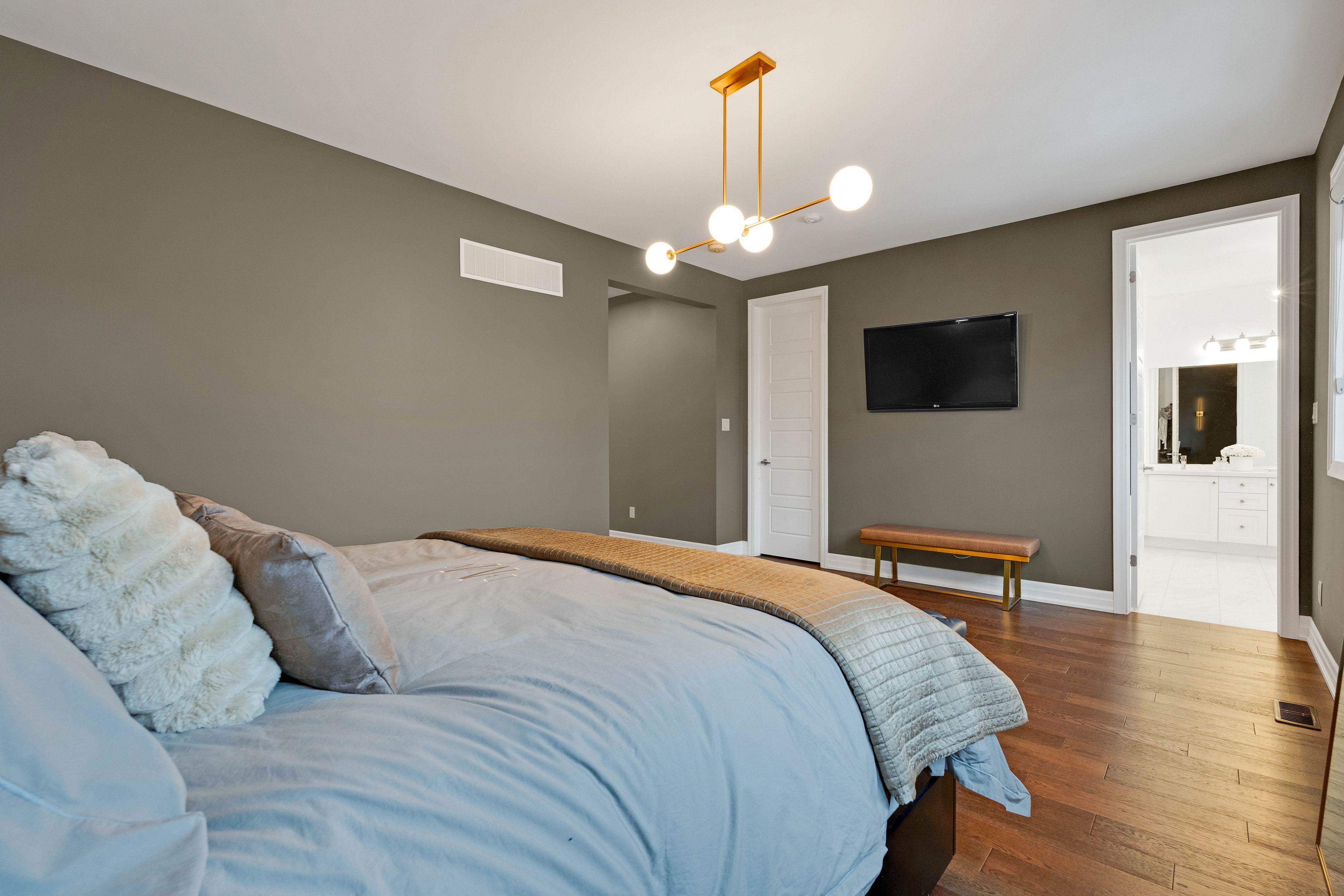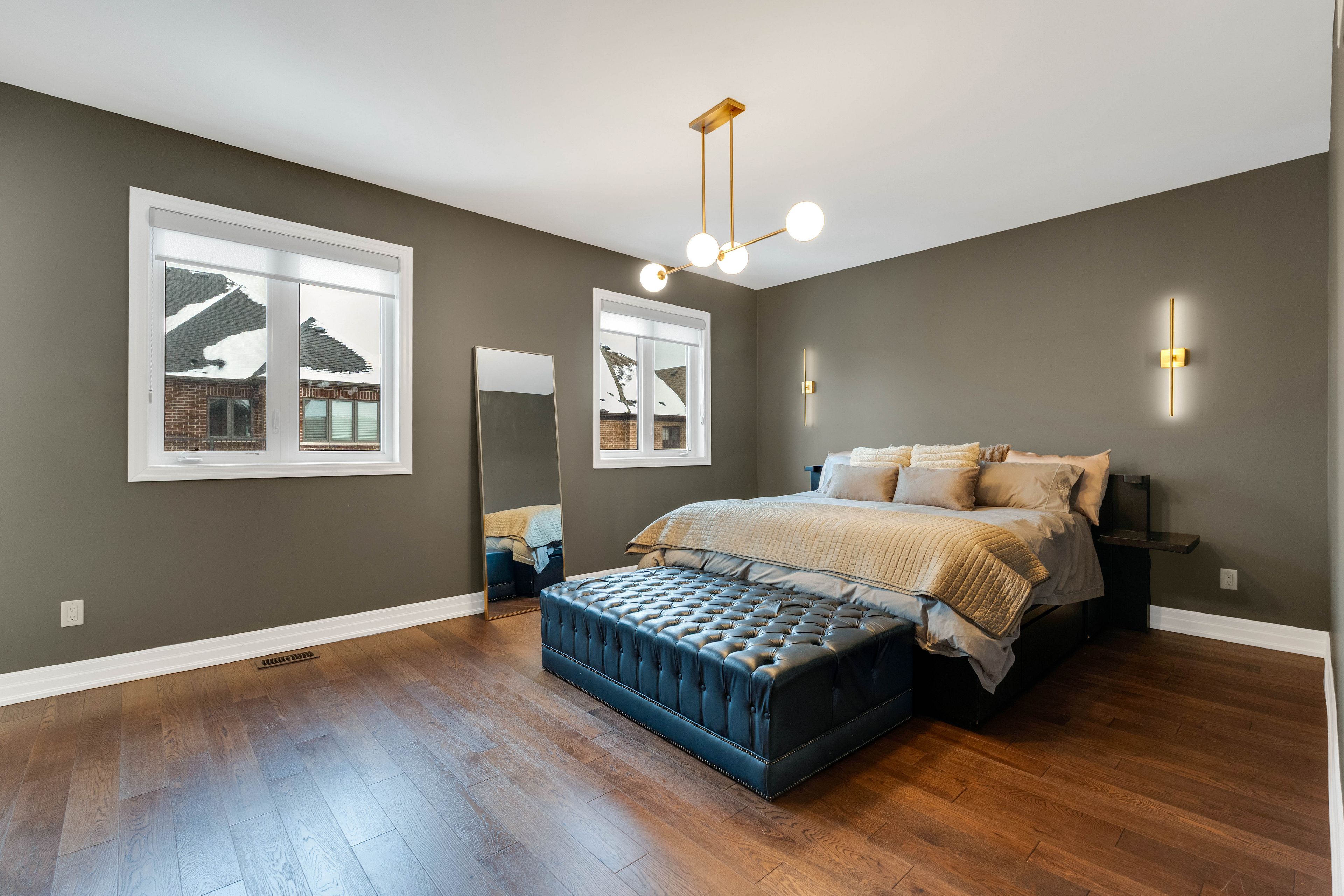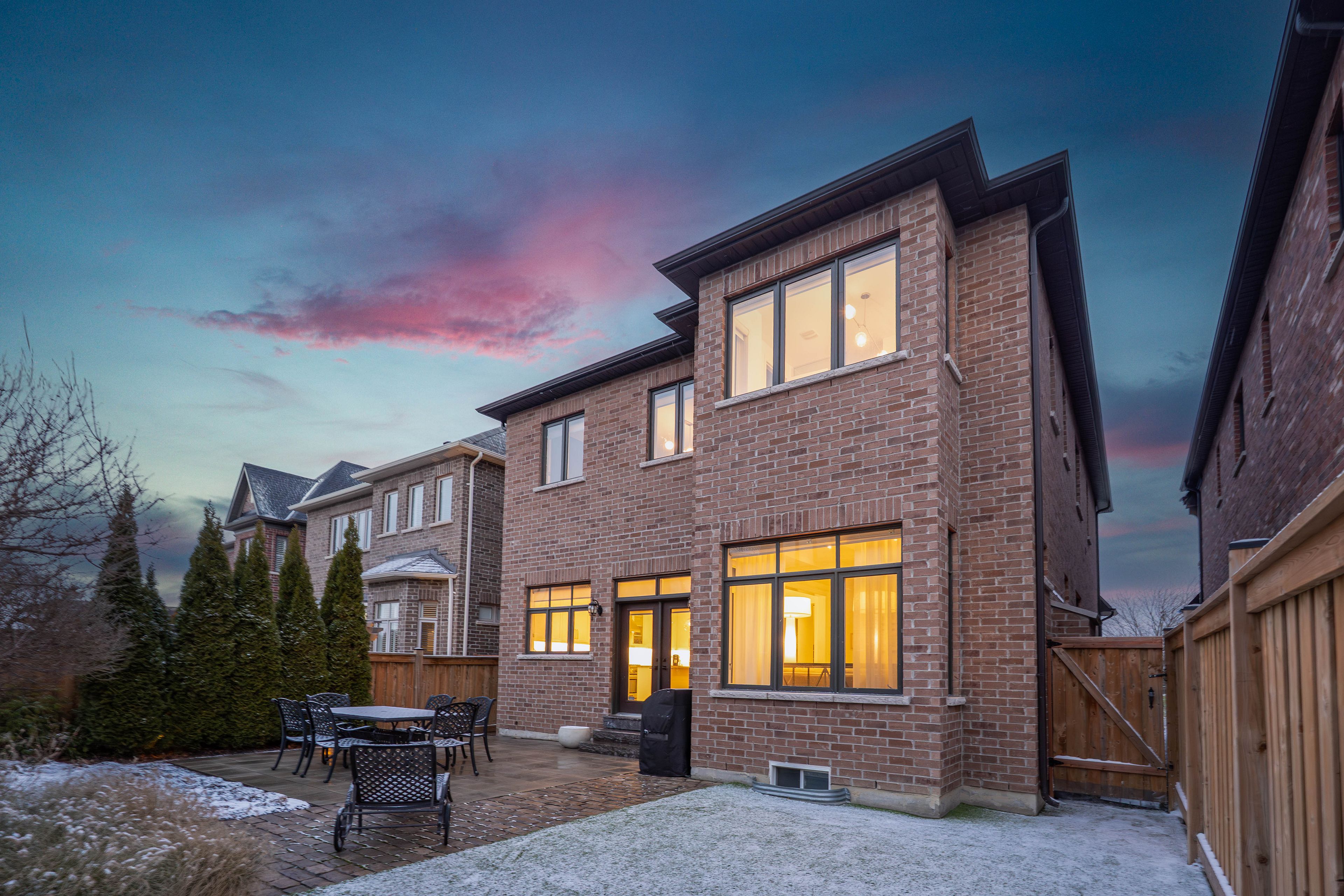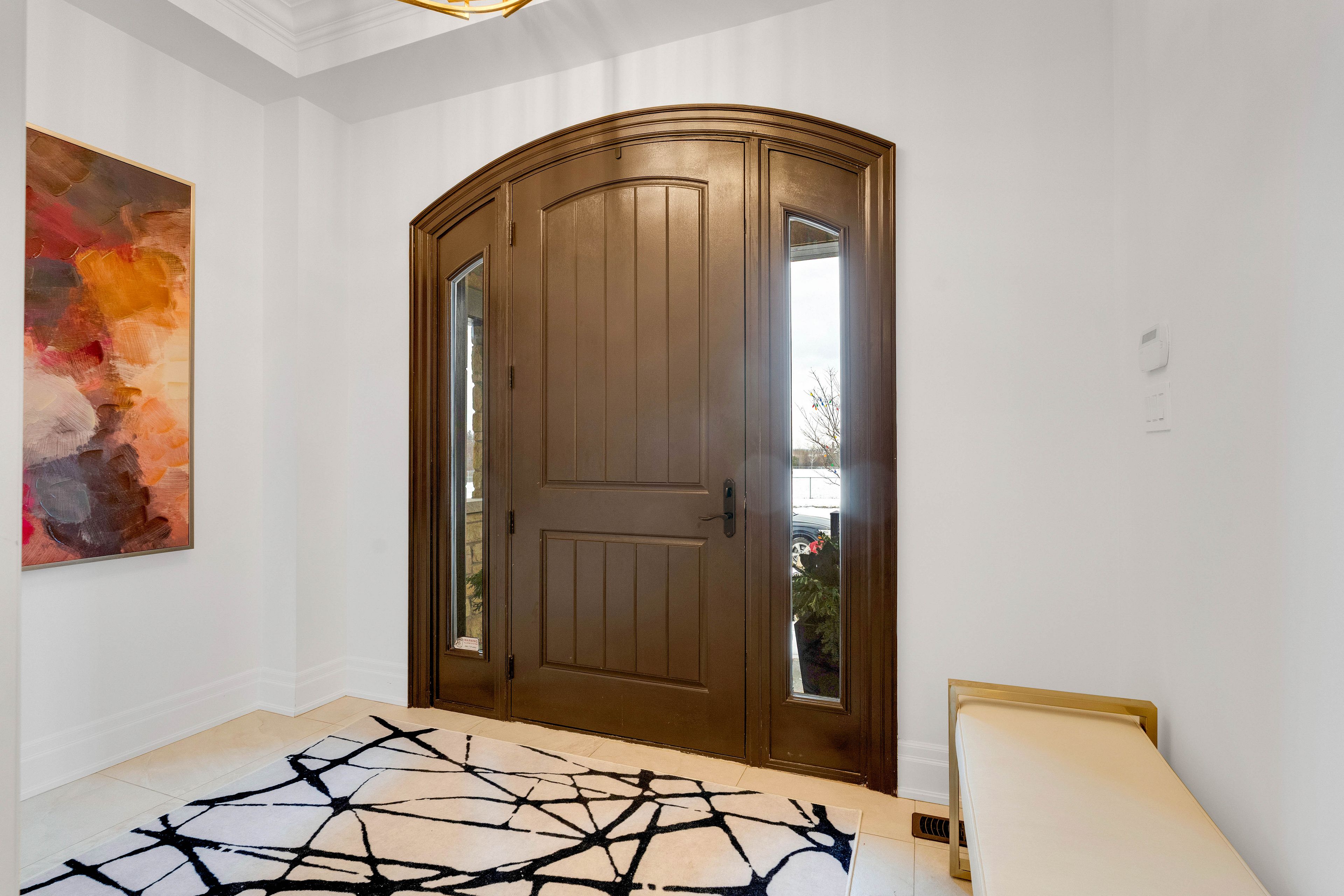 Stunning stone & brick home in the heart of king city offering over 4,000 sq ft of finished luxury living space. Over $250,000 in upgrades featuring 5 bedrooms, 6 bathrooms, 10 ft ceilings on the main, 9 ft on the second and basement, 8 ft interior doors, 24 x 24 porcelain tiles on main, 5" wire-brushed hardwood flooring on main and second, crown moulding, wainscoting, and designer lighting throughout. Modern custom kitchen with extended uppers, farmers sink, and premium thermador appliances. Spacious living area with floor-to-ceiling marble gas fireplace. Main floor office with double french glass doors. All bedrooms include their own upgraded bathrooms with quartz counters, 12x24 tiles, and frameless glass doors. Primary suite features a freestanding tub, double vanity, and frameless glass shower. Professionally landscaped front & back yard with gas bbq hookup, outdoor landscape lighting, and 2 ev plugs in garage. Finished basement includes a fitness room, large recreation area, great room with electric fireplace, storage rooms, cantina, and 3-pc bath. Additional features include custom closet organizers, upgraded window coverings, second-floor laundry, solid 3-lock fiberglass main door, and 200-amp electrical panel. Premium lot with unobstructed east views-luxury living in a prime king city location.