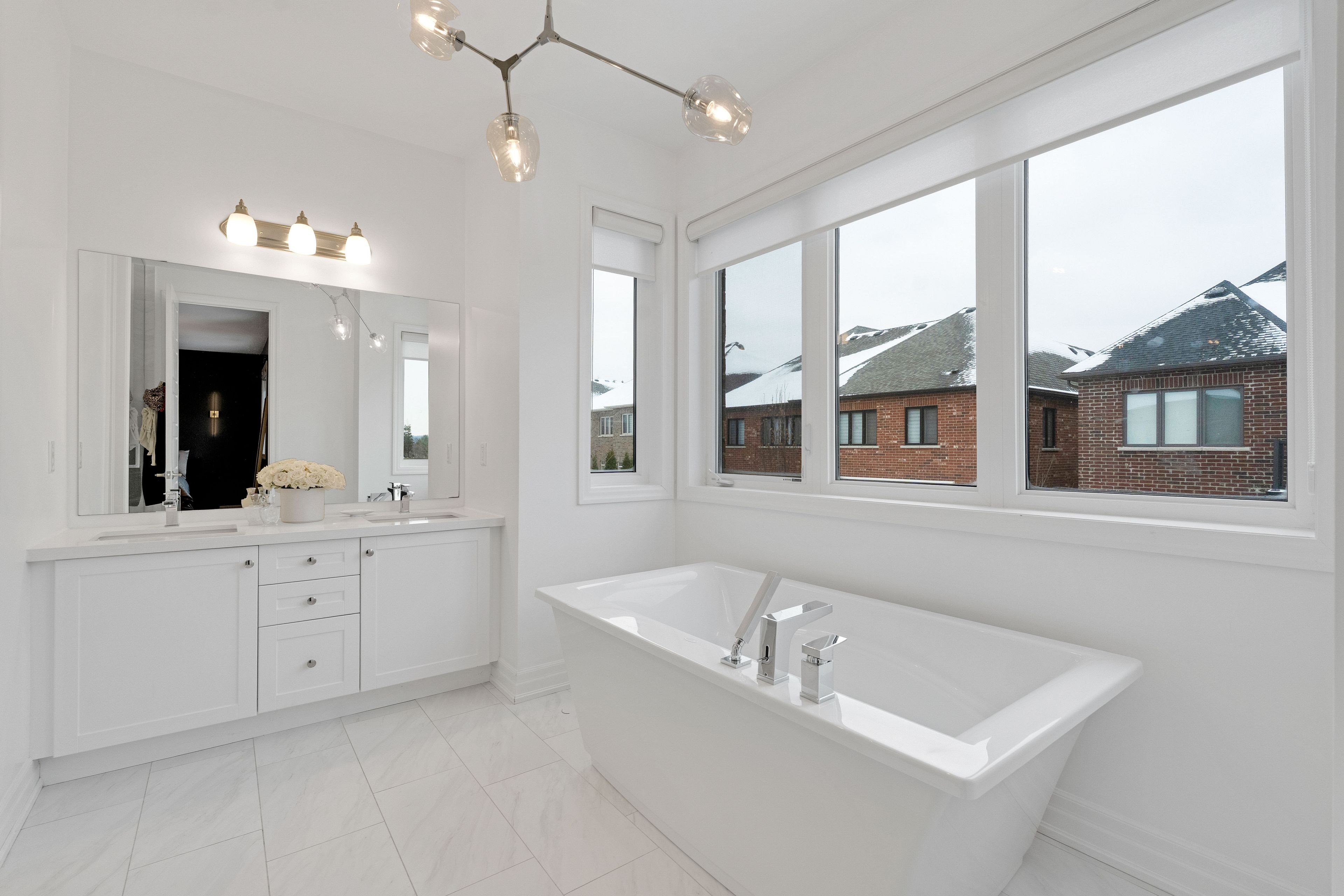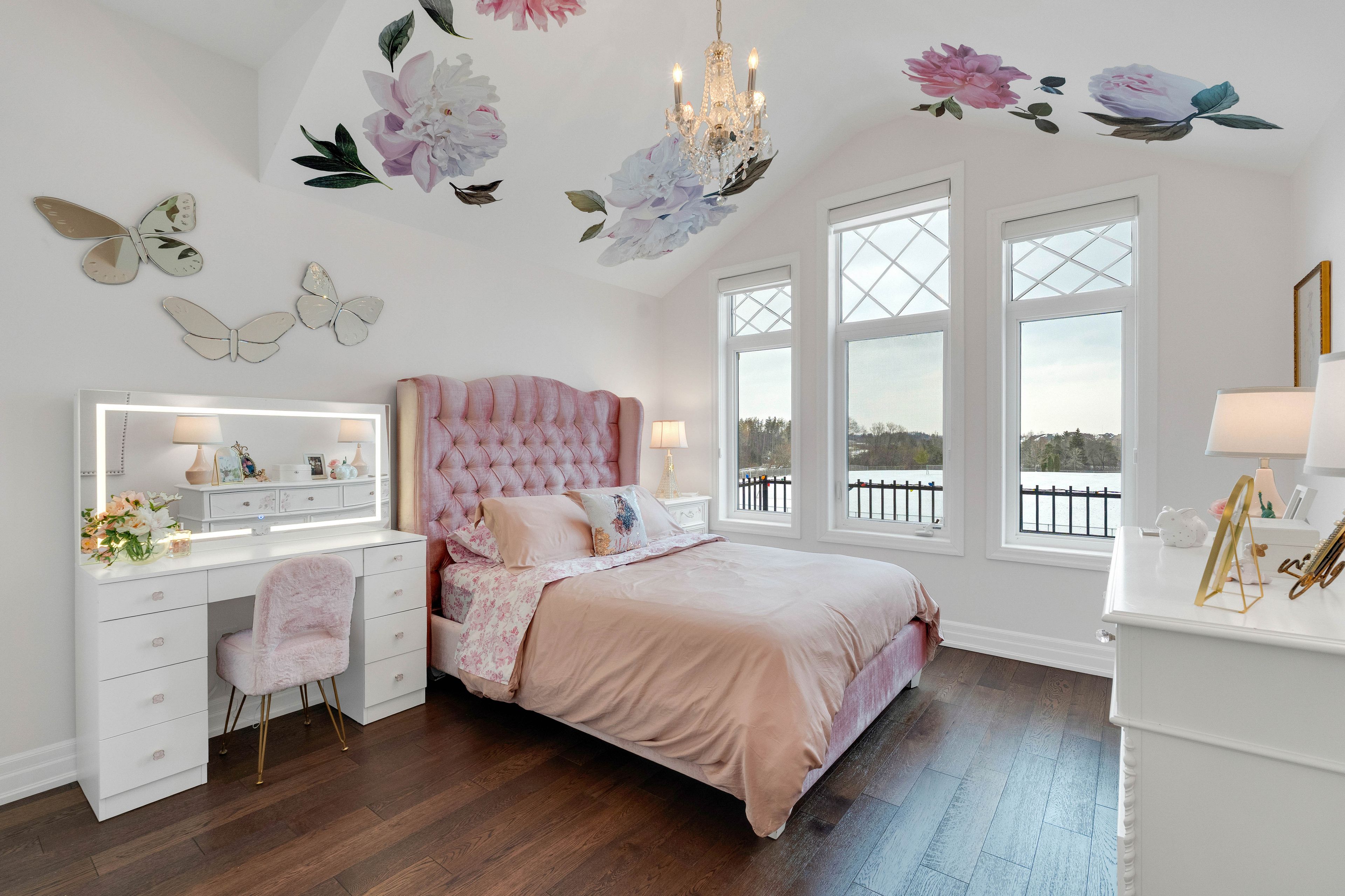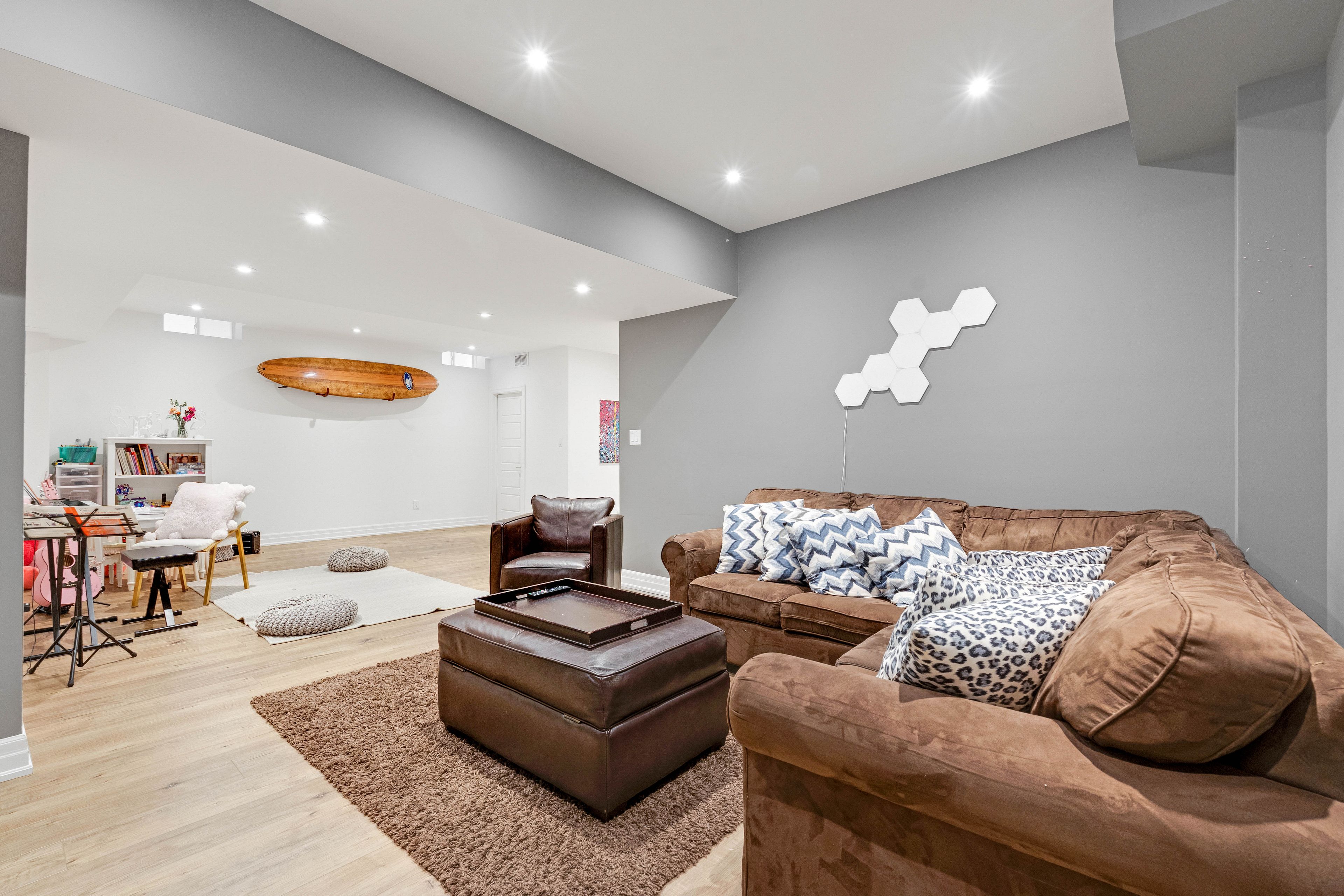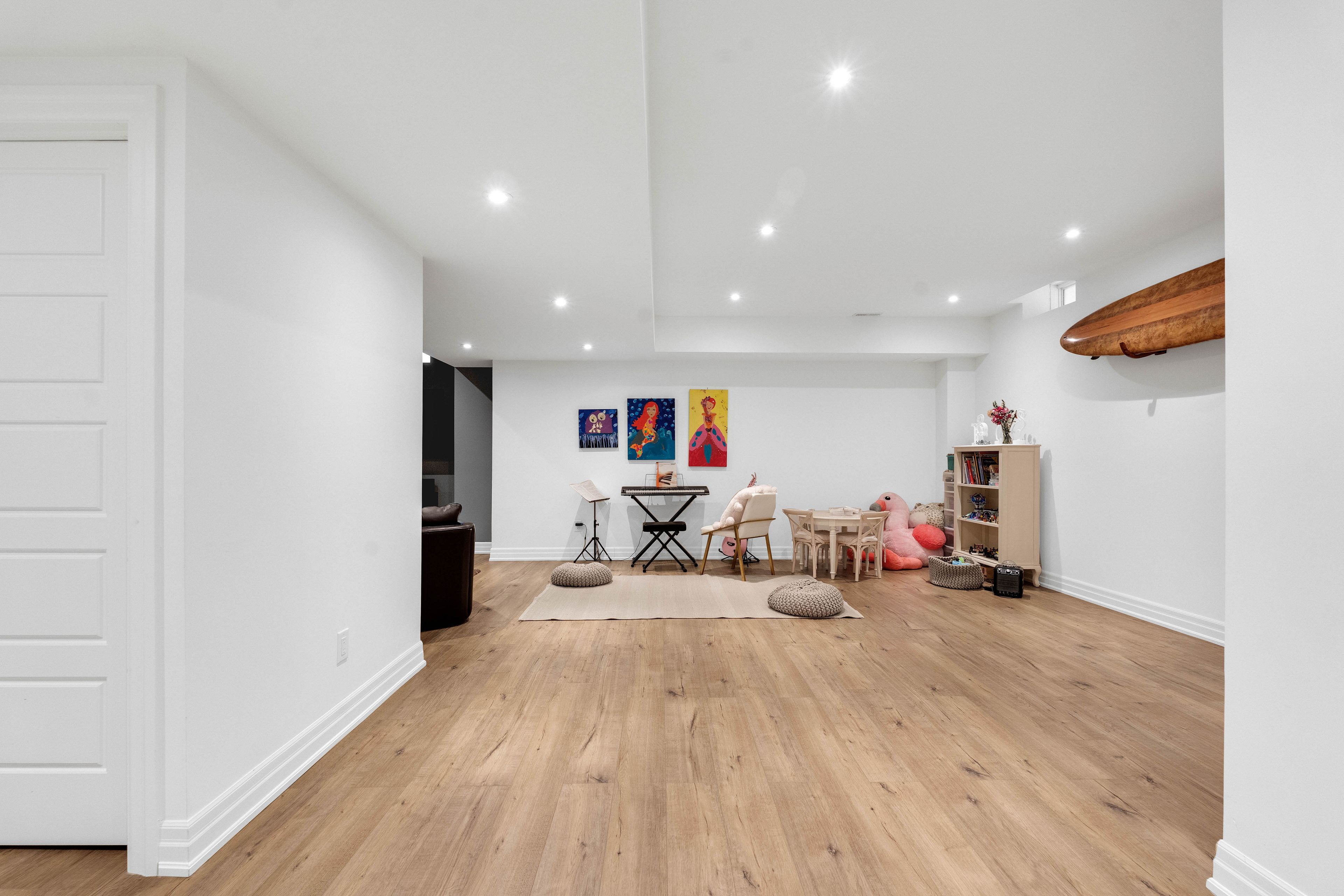 Stunning stone & brick home in the heart of king city offering over 4,000 sq ft of finished luxury living space. Over $250,000 in upgrades featuring 5 bedrooms, 6 bathrooms, 10 ft ceilings on the main, 9 ft on the second and basement, 8 ft interior doors, 24 x 24 porcelain tiles on main, 5" wire-brushed hardwood flooring on main and second, crown moulding, wainscoting, and designer lighting throughout. Modern custom kitchen with extended uppers, farmers sink, and premium thermador appliances. Spacious living area with floor-to-ceiling marble gas fireplace. Main floor office with double french glass doors. All bedrooms include their own upgraded bathrooms with quartz counters, 12x24 tiles, and frameless glass doors. Primary suite features a freestanding tub, double vanity, and frameless glass shower. Professionally landscaped front & back yard with gas bbq hookup, outdoor landscape lighting, and 2 ev plugs in garage. Finished basement includes a fitness room, large recreation area, great room with electric fireplace, storage rooms, cantina, and 3-pc bath. Additional features include custom closet organizers, upgraded window coverings, second-floor laundry, solid 3-lock fiberglass main door, and 200-amp electrical panel. Premium lot with unobstructed east views-luxury living in a prime king city location.