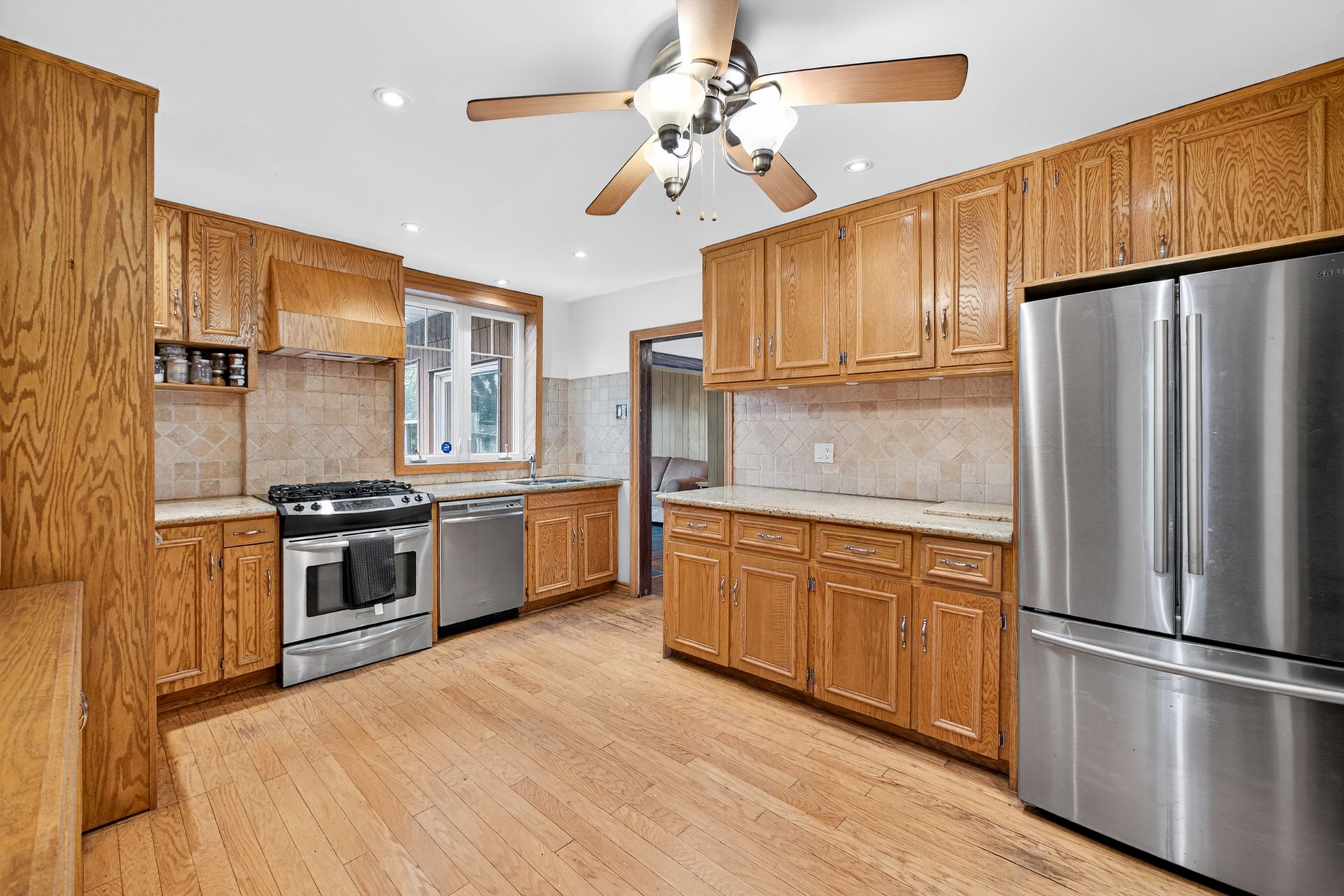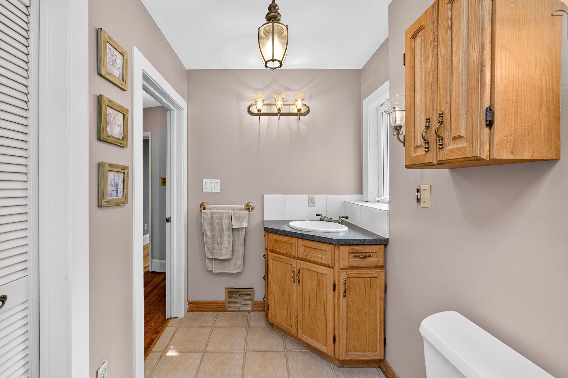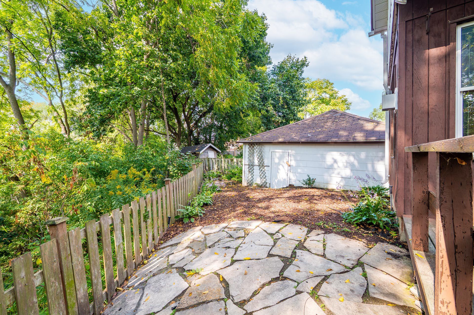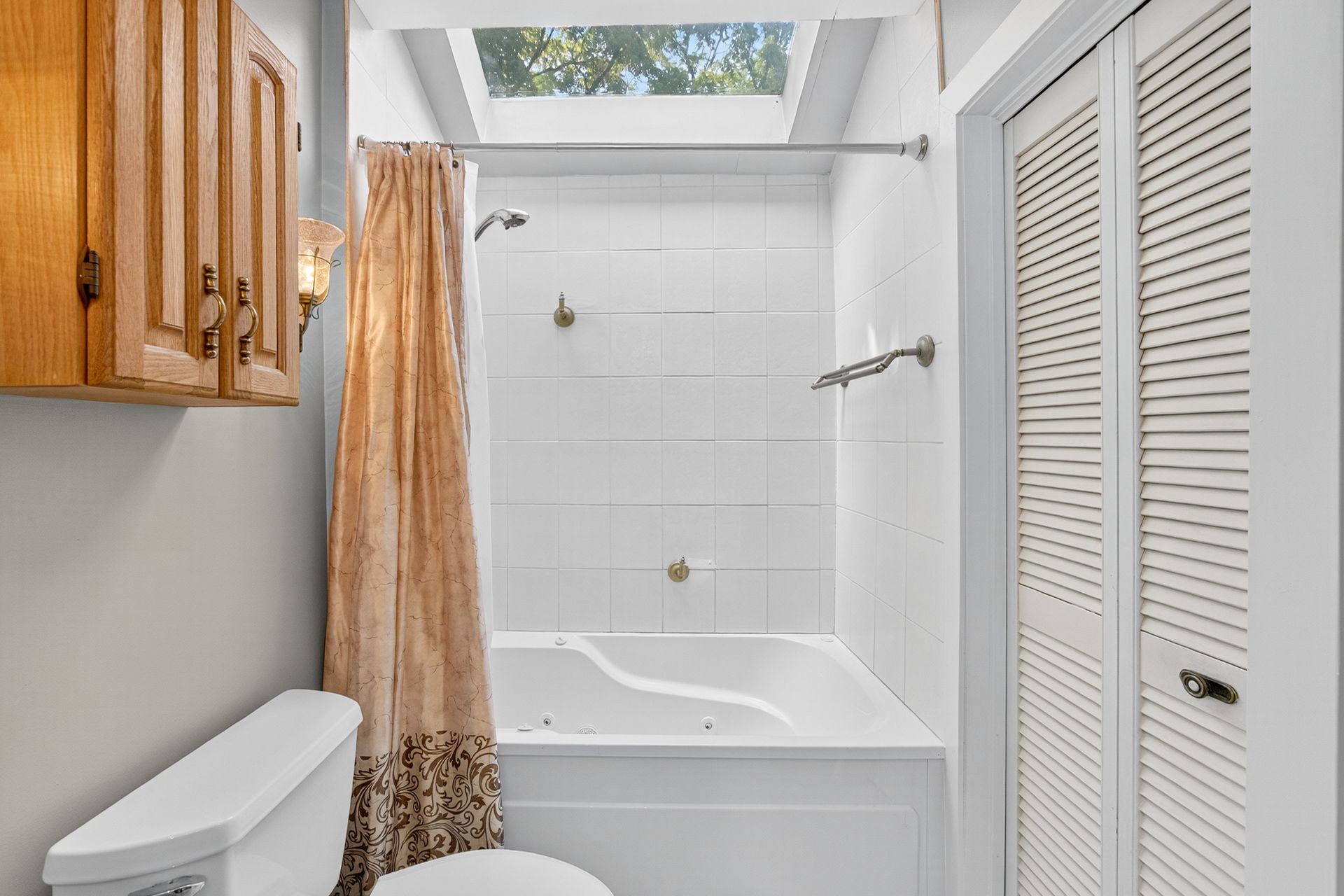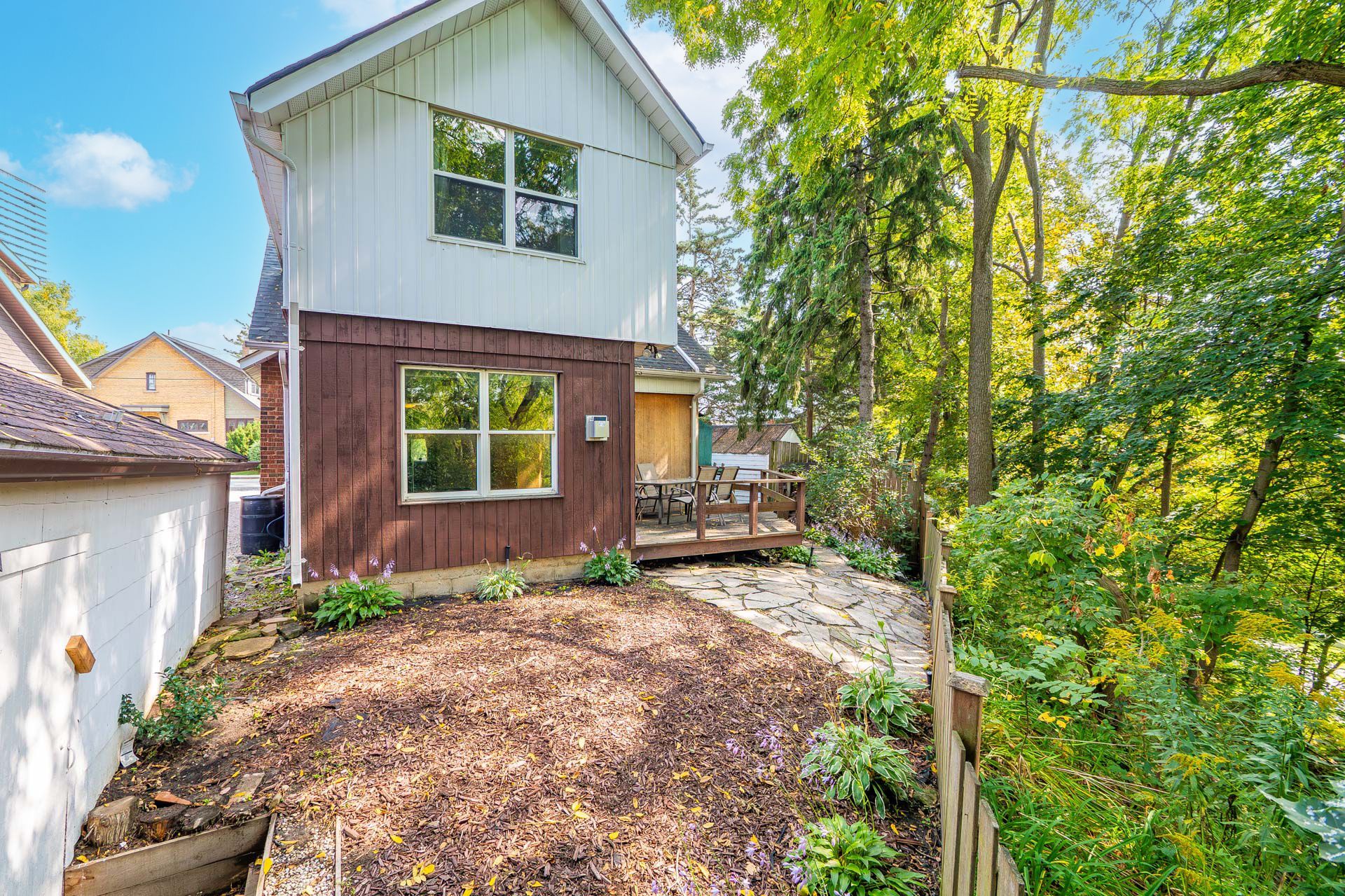 • Character-filled home with original wood trim and bright skylit bathroom.