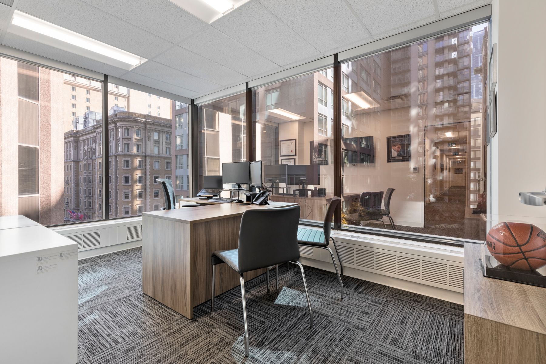 High-end fully furnished office available in a professional setting. Spacious private office with large windoes with boardroom access and admin support. Additional services available. Up to 8 private offices available, 2 workstations, 2 meeting rooms for 2 person to 10 person.