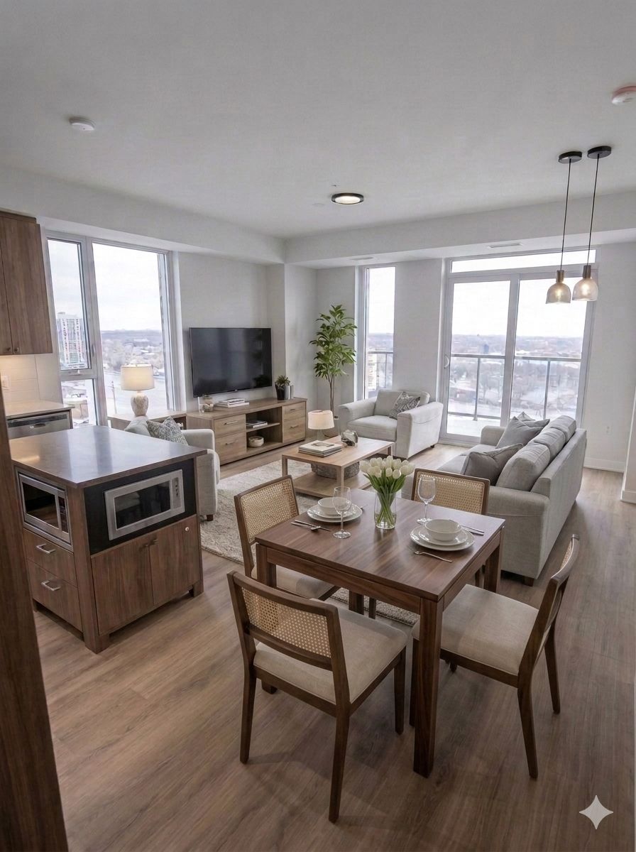 2 bedroom 2 bath corner with 150 sqft balcony. Bright lights luxury unit from daniels. Mpv, ev car parking with locker and hi-speed rogers internet included. Spacious 782 sqft condo with big balcony. Close to mount pleasant civic square, walking to mount pleasant go station and one hour to union station. Near to professor's lake chinguasypark, eldorado park
