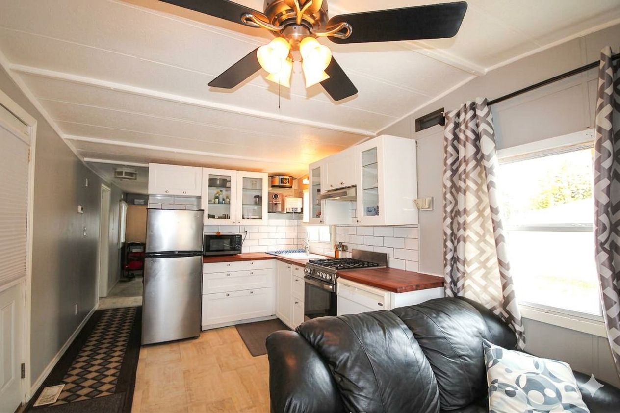 Enjoy year-round waterfront living in this one-bedroom mobile home backing onto little lake in midland, offering private waterfront views and dock access for non-motorized water activities. Just steps to the waterfront shoreline and dock from your backyard. Features include a modern kitchen and bathroom, laundry room (9. 6 x 8. 6ft - den or ??), walkout to deck, on-demand hot water owned, and gas stove. Located in smiths camp, a family-friendly park with a pool and shuffleboard court. Monthly fee of $538. 45 covers land lease, water/sewer, parking, garbage, and park maintenance. Call today to view before you miss this opportunity!