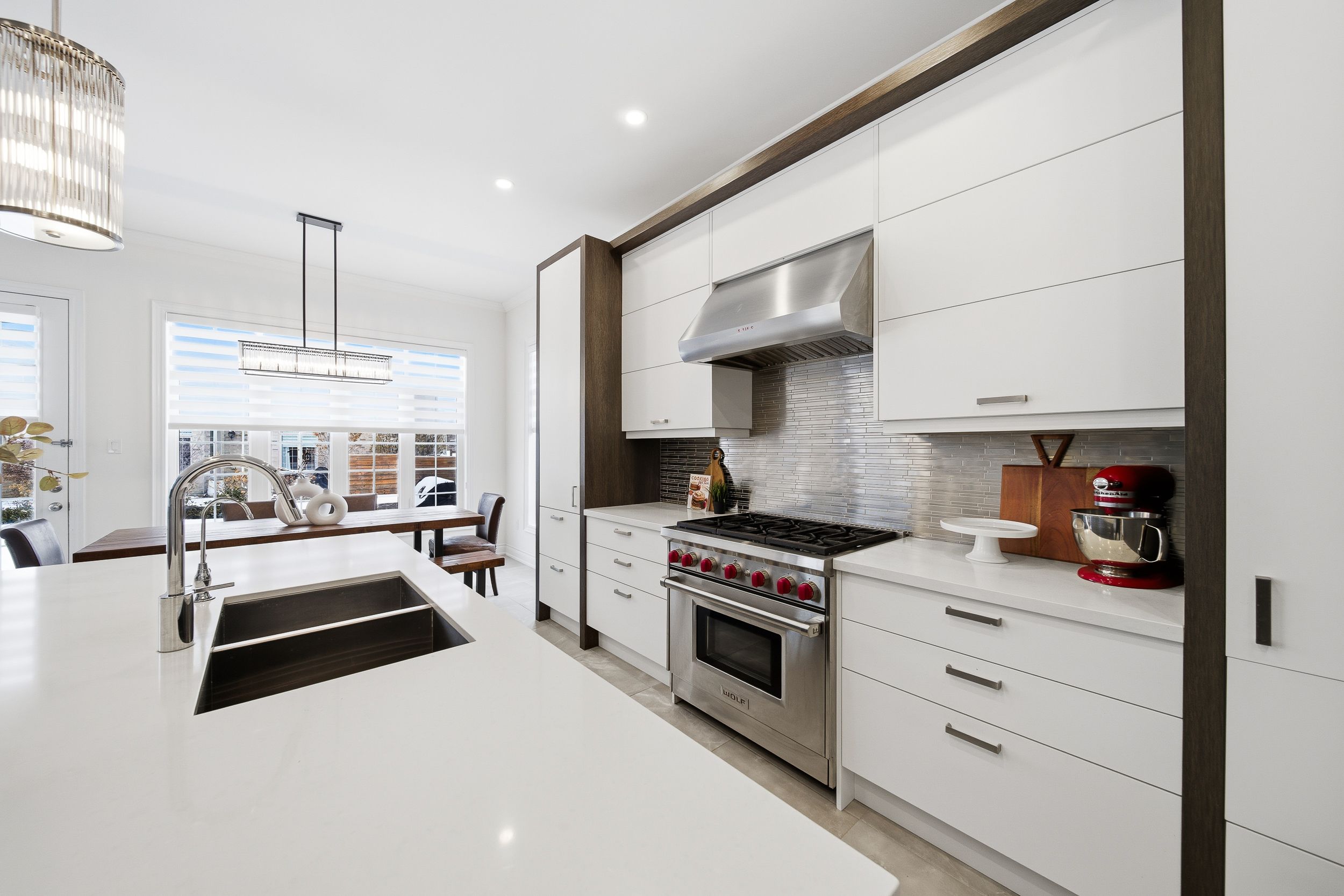 • Professionally landscaped backyard with an outdoor kitchen for entertaining.