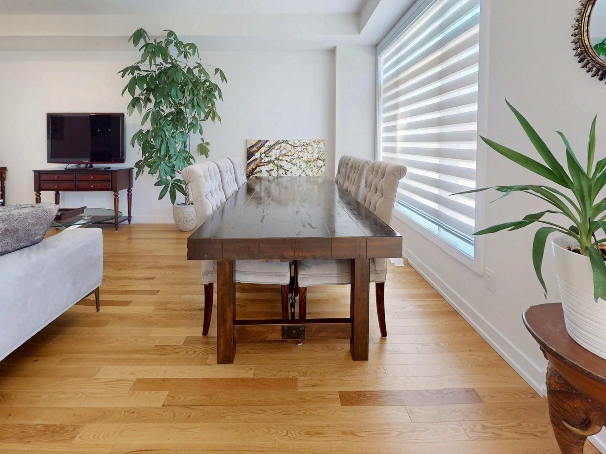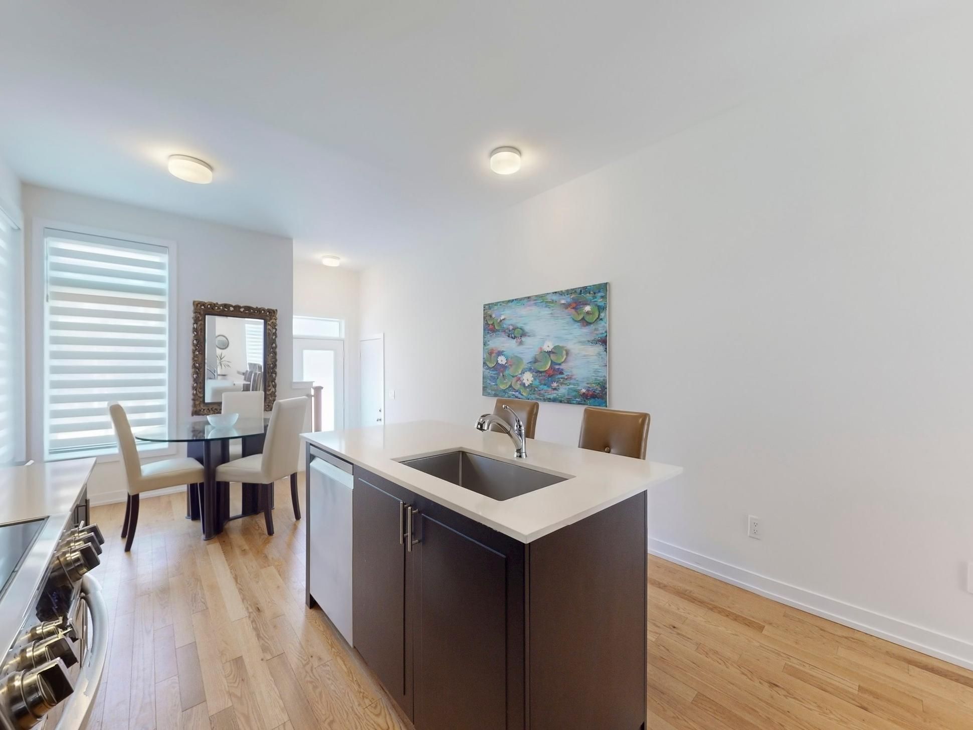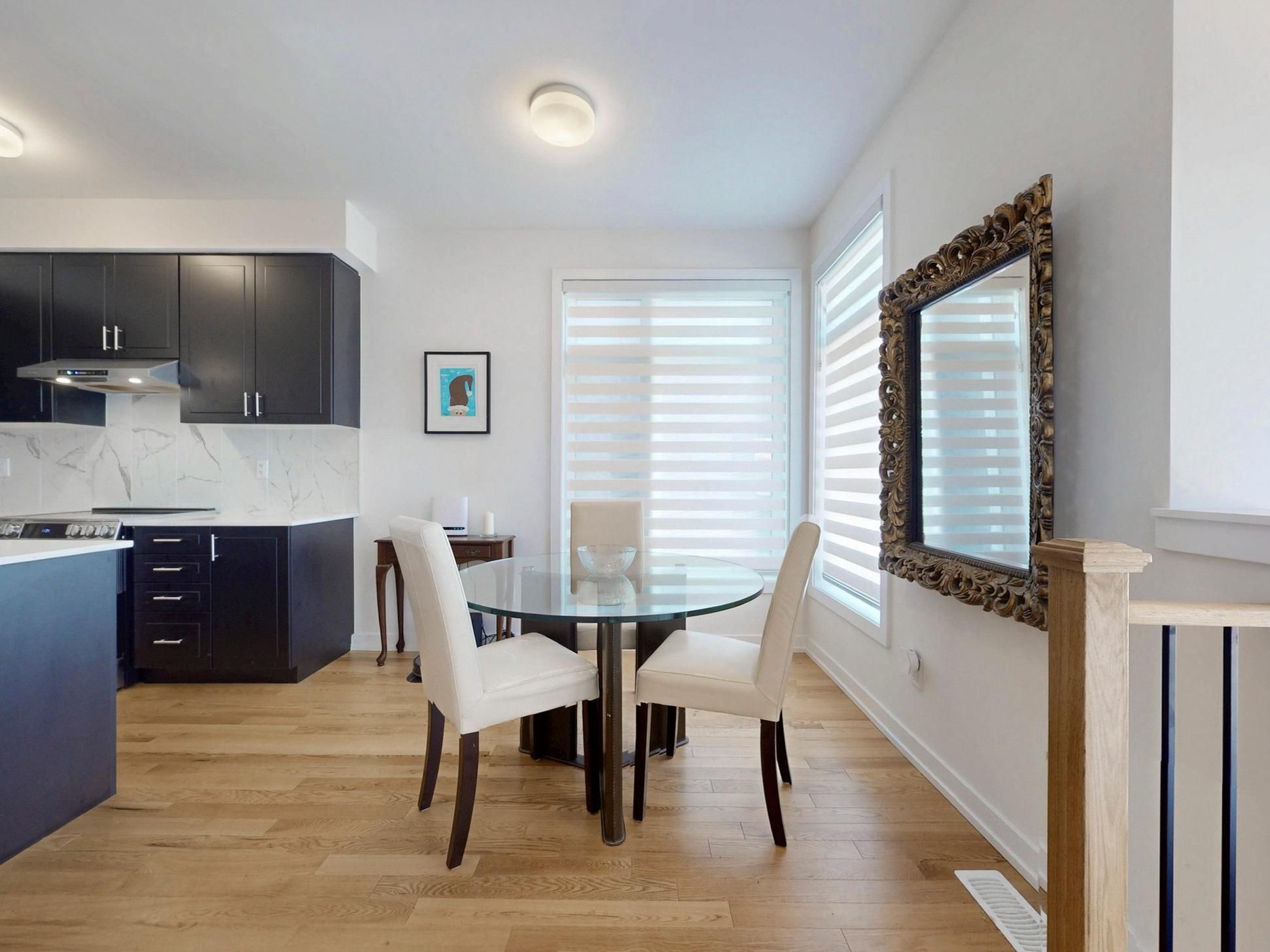 • Open-concept main floor with 9-foot ceilings and oak hardwood flooring.
