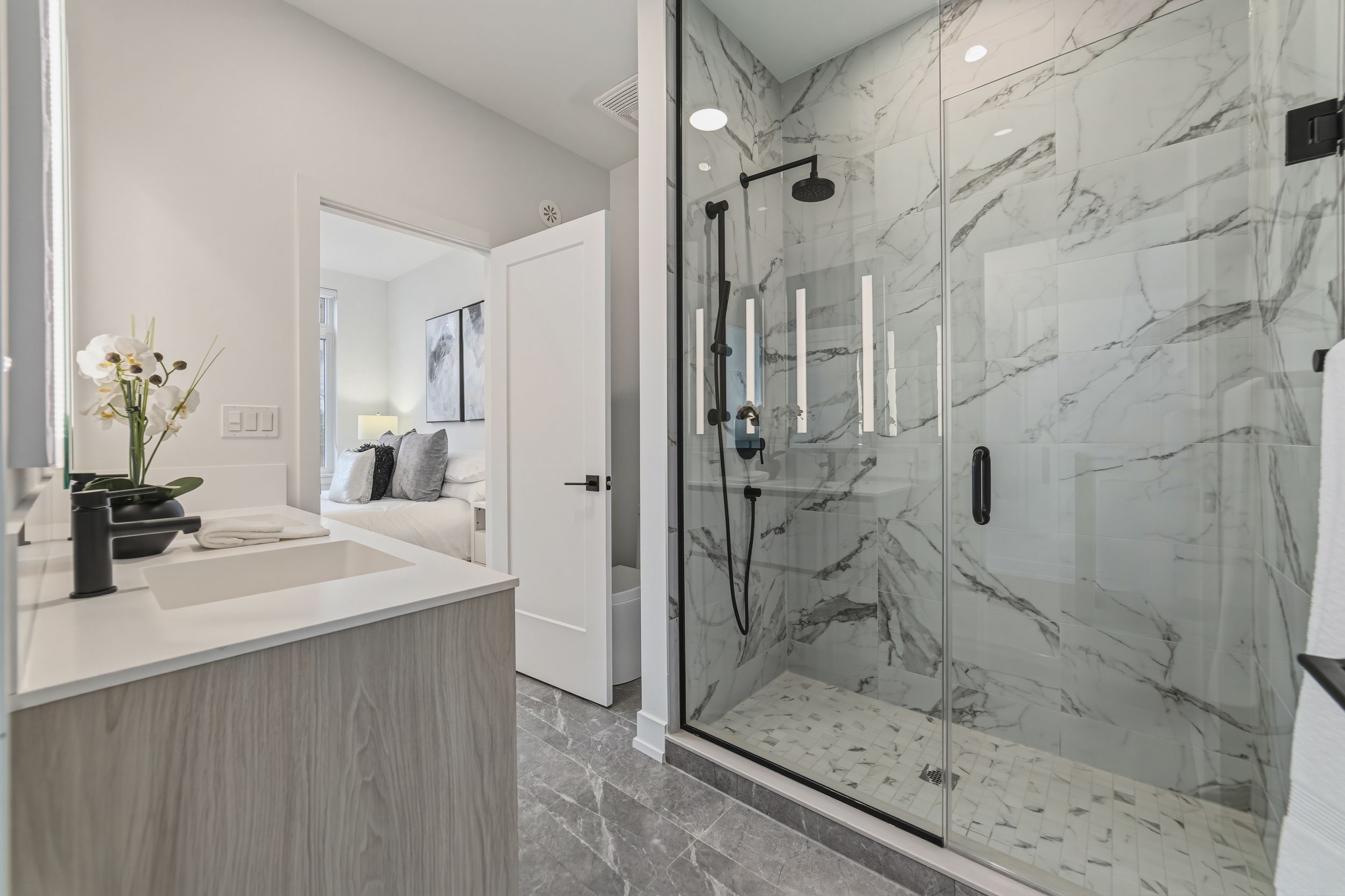 • Gourmet kitchen with premium appliances and stylish quartz waterfall island.