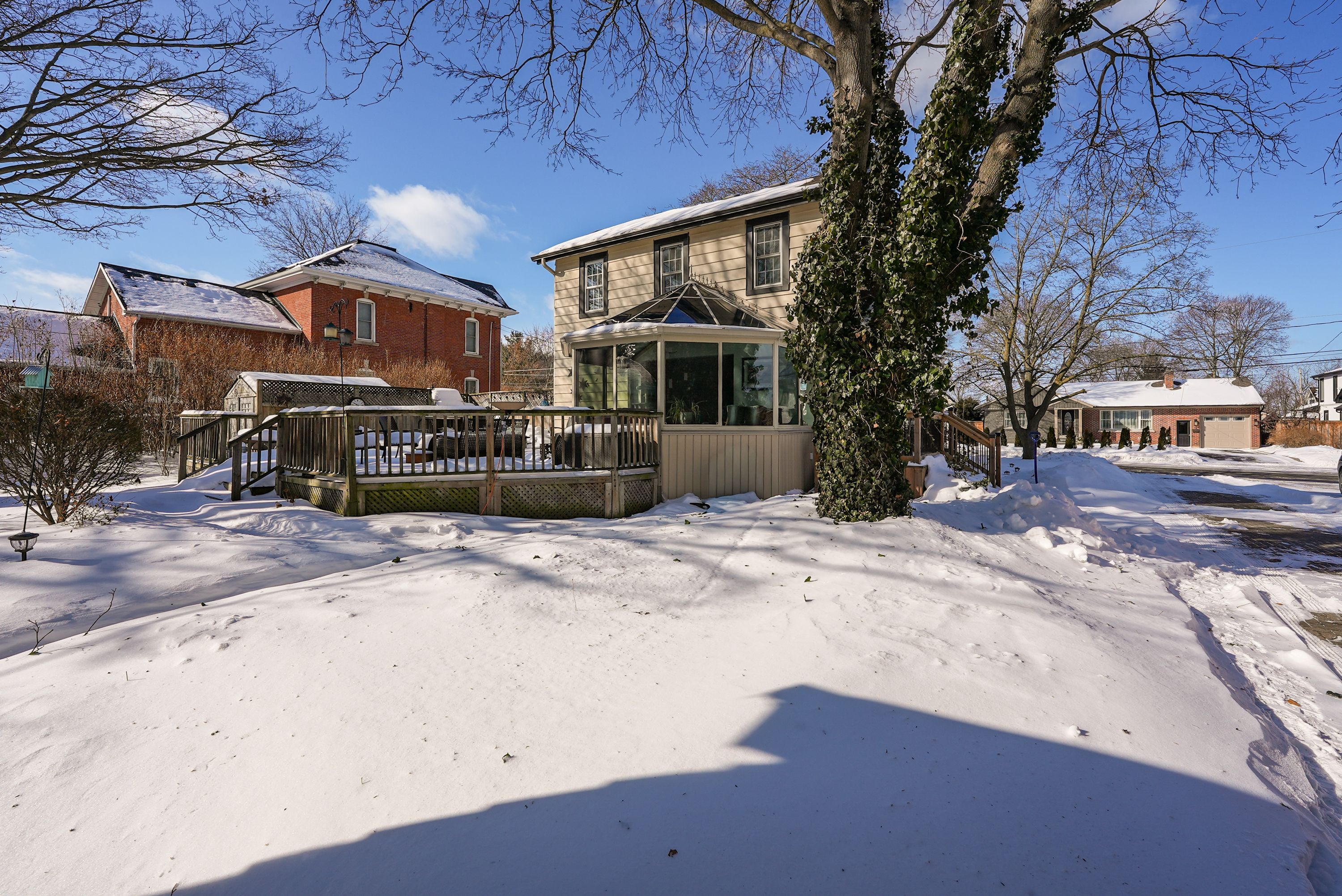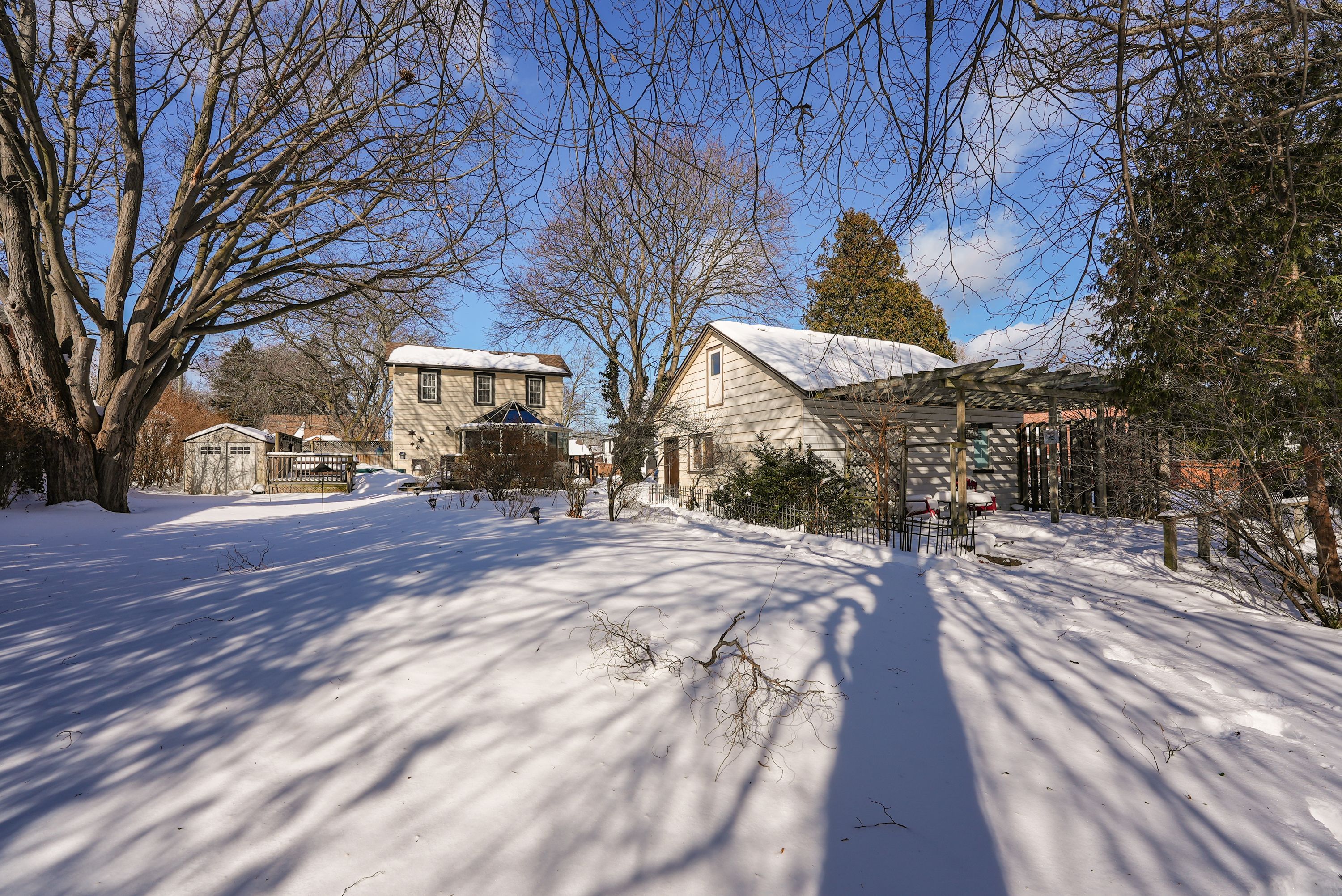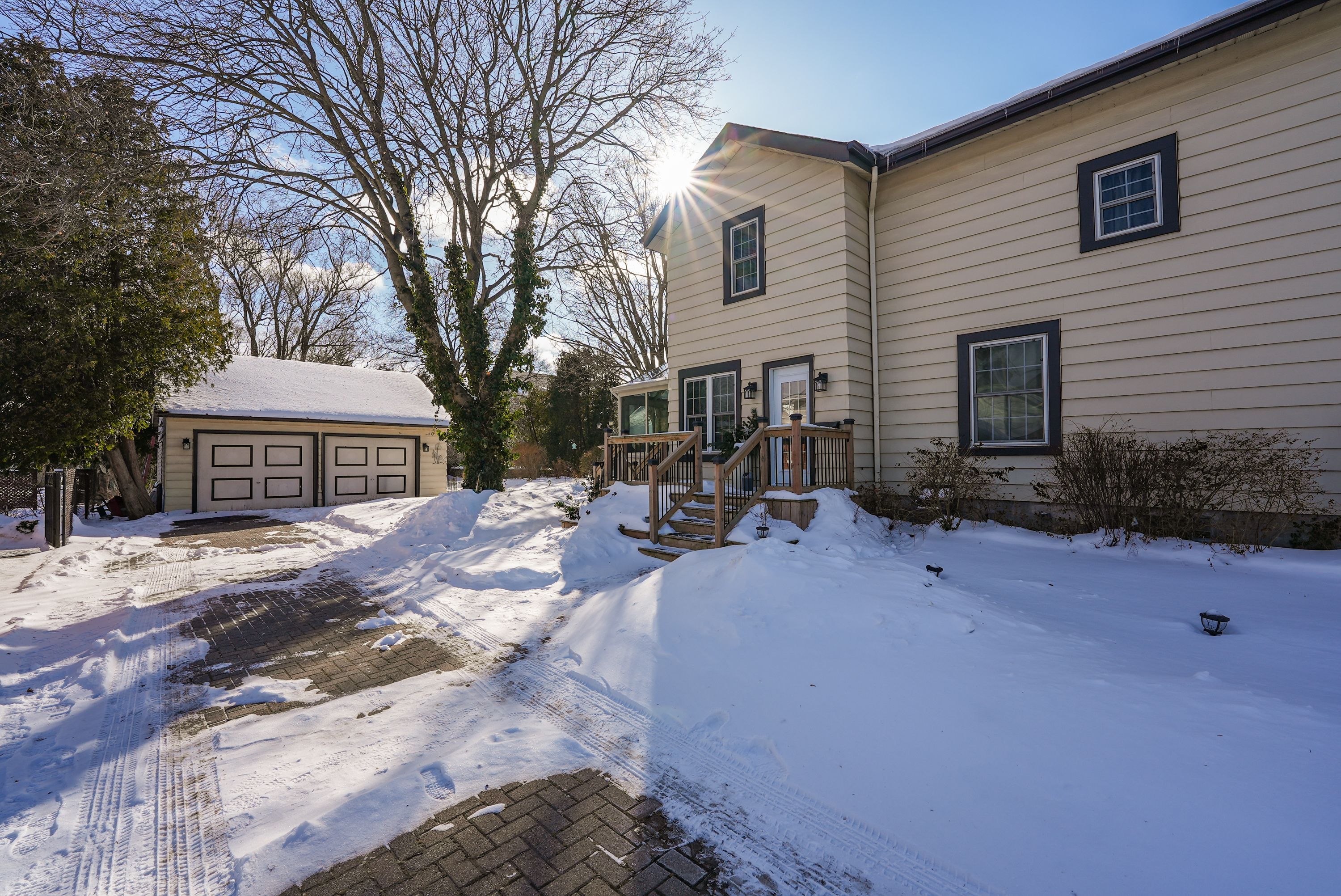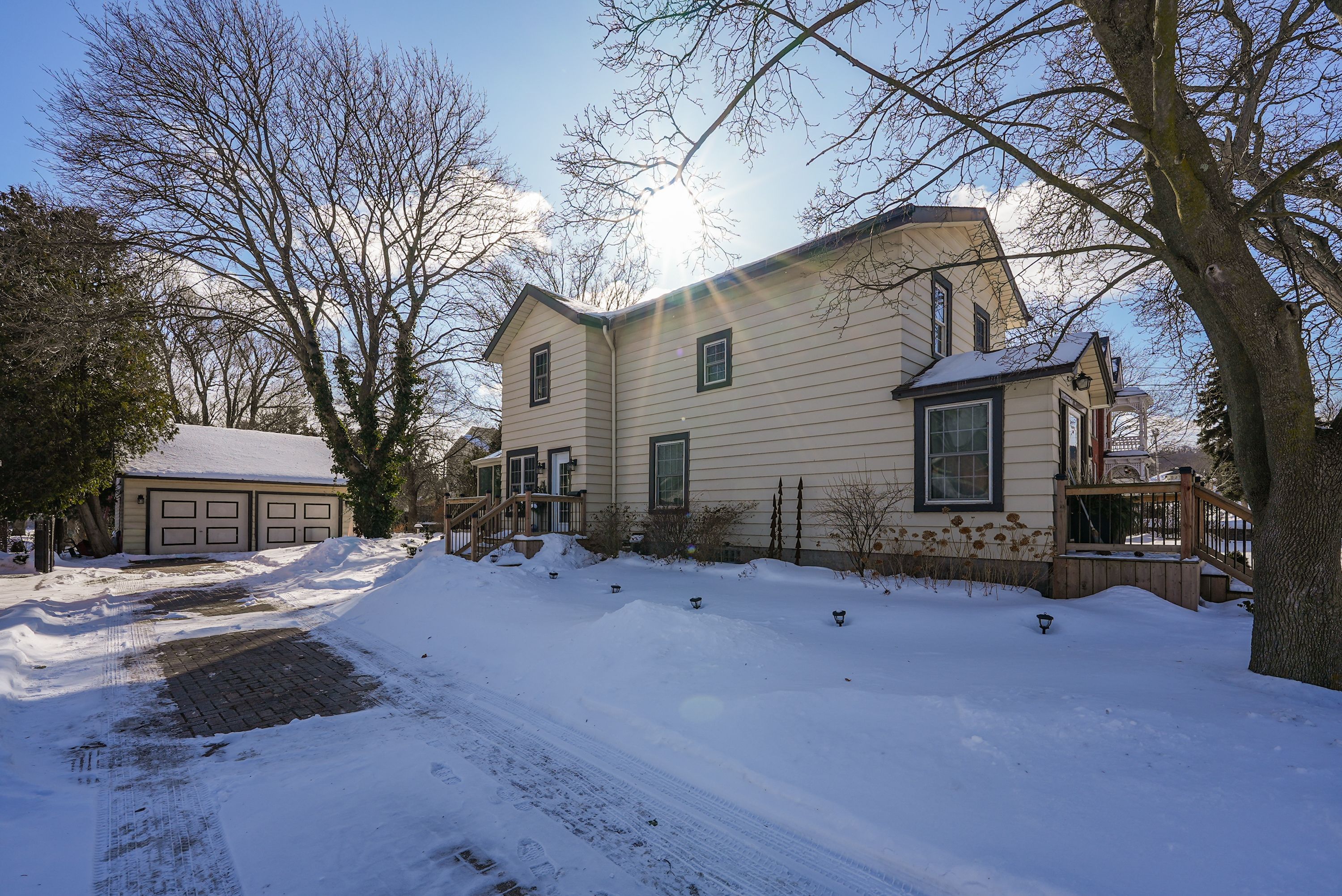 Discover the warmth, character, and modern comfort of this beautifully maintained 2-storey century home, perfectly situated on a generous lot just minutes from vibrant downtown grimsby. With more than 100 years of history, this timeless residence seamlessly blends original charm with thoughtful contemporary updates. Step inside to a vaulted entryway accented with rich wood details that continue throughout the home, creating an inviting and cohesive feel. The main floor offers an open-concept kitchen and dining area that leads into a cozy year-round sunroom-an ideal spot for morning coffee, quiet evenings, or enjoying views of the backyard in every season. The spacious living room, anchored by a classic fireplace, adds even more warmth and character. Upstairs, you'll find two bedrooms, including a large primary retreat complete with a walk-in closet and an impressive bathroom featuring a walk-in shower and ample room to unwind. Outside, the property shines with multiple decks, a relaxing hot tub, and a charming pergola-perfect for summer entertaining or peaceful outdoor escapes. The detached double garage (24' x 22' exterior) includes a workshop for hobbyists and a loft for additional storage or creative use. With its walkable location near shops, restaurants, and parks, this unique home offers the very best of grimsby living. Don't miss your chance to own a beautifully cared-for piece of local history!