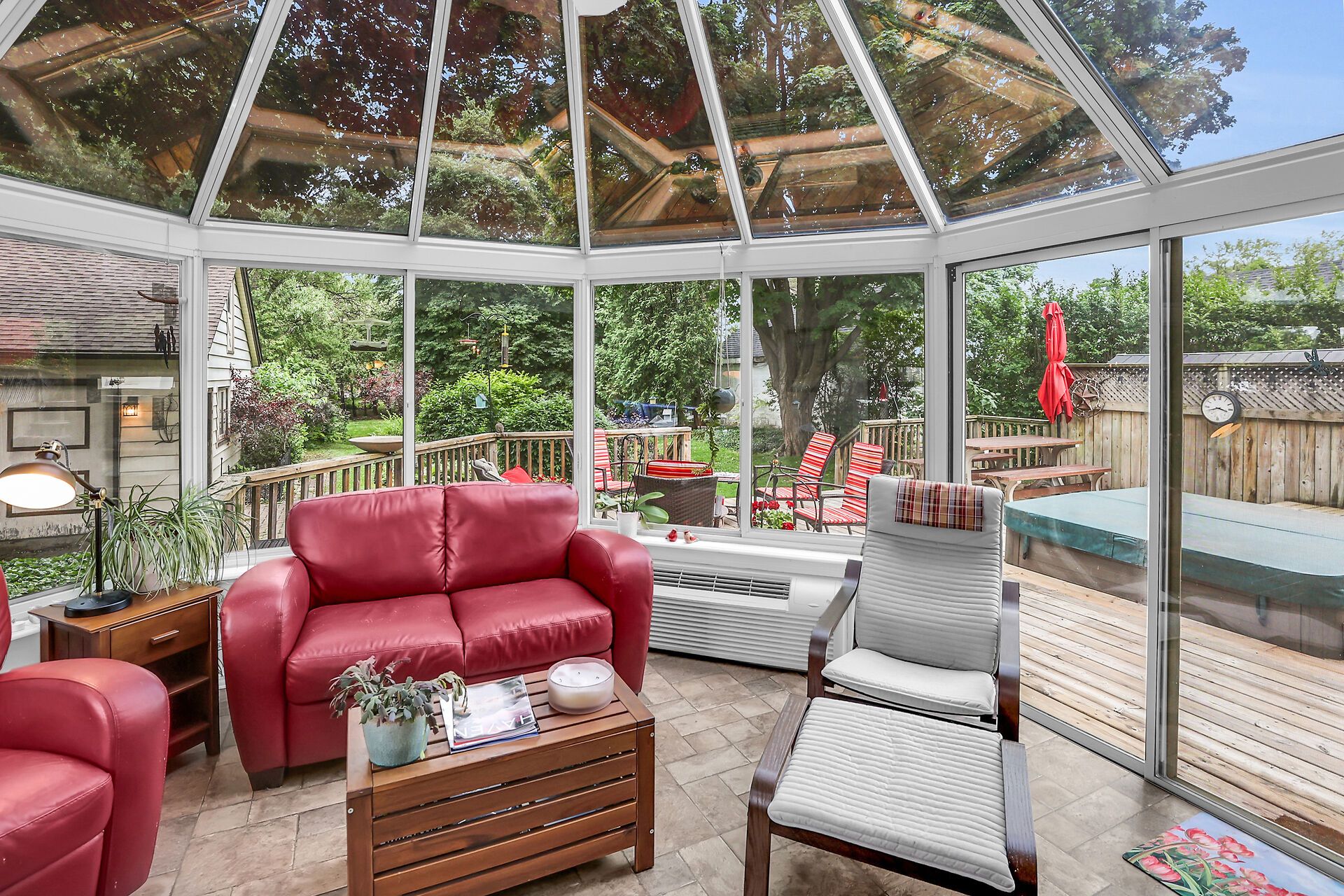 • Open-concept kitchen and dining area leads to a cozy year-round sunroom.