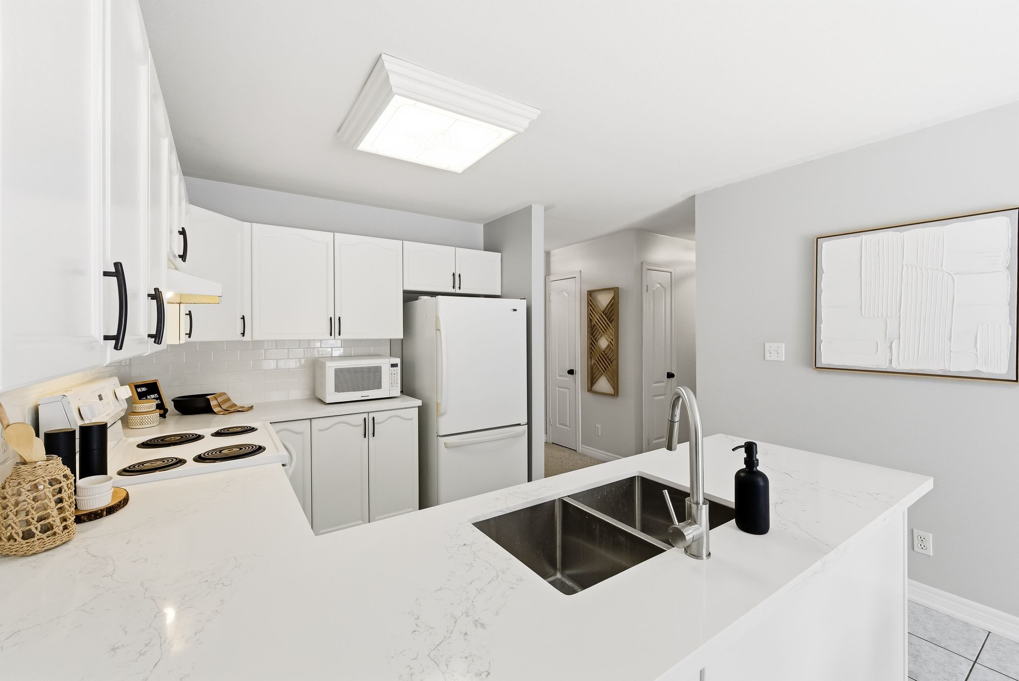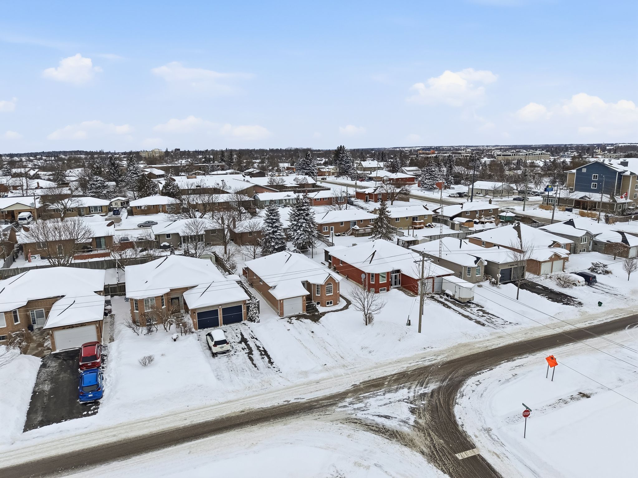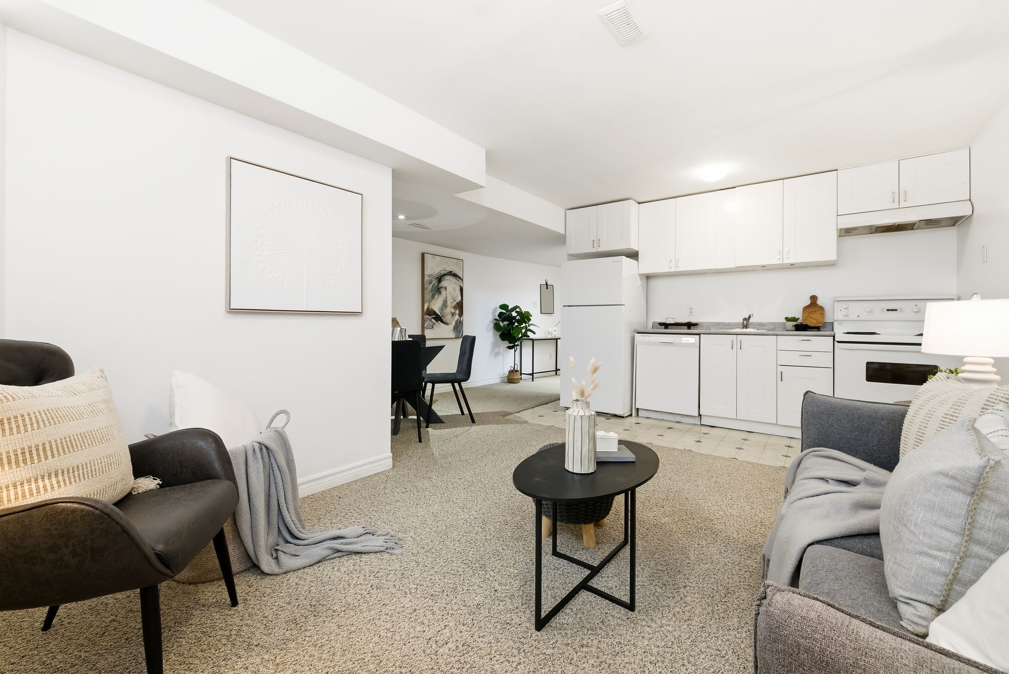 Step into the bright, inviting upper level of this vacant legal 2-unit raised bungalow, where a welcoming foyer sets the tone with a clean, practical entry & easy flow into the home's main living space. This home can also be very easily converted back to a single family dwelling with direct access to the basement. The south-facing sun-filled living room features a comfortable layout & beautiful natural light through the arched window (2025), creating a warm spot to relax or entertain. The crisp, updated kitchen offers plenty of freshly painted cabinetry & prep space on the quartz counters, with a new sink and faucet & opens nicely to the dining room with a walk-out to a large deck, perfect for effortless indoor-outdoor living. Down the hall, you'll find 2 well-sized bedrooms, including a primary retreat with a walk-in closet, along with a bright 4-pc bath. A dedicated laundry room on the same level adds everyday convenience, rounding out a move-in-ready upper suite that feels both functional & welcoming. With a separate side entrance, the lower level of this home feels private & impressively functional for extended family, guests, or rental income. Step down from the foyer & you'll immediately appreciate the open-concept living area, designed for comfortable everyday living. The space flows naturally between the living, kitchen & dining room, creating a cohesive layout. 2 well-sized bedrooms provide comfortable retreats, while the versatile den is perfect for a home office, playroom, or extra storage. Completing the suite is a clean 3-pc bath featuring a stackable washer & dryer right in the room, adding everyday convenience. Outside, this charming raised bungalow offers great curb appeal with its classic brick exterior, great yard space, & a deck that's ready for relaxing evenings. You'll love the everyday convenience of being close to all amenities, including shopping, the hospital, & excellent schools-making this a smart move for both lifestyle & long-term value.