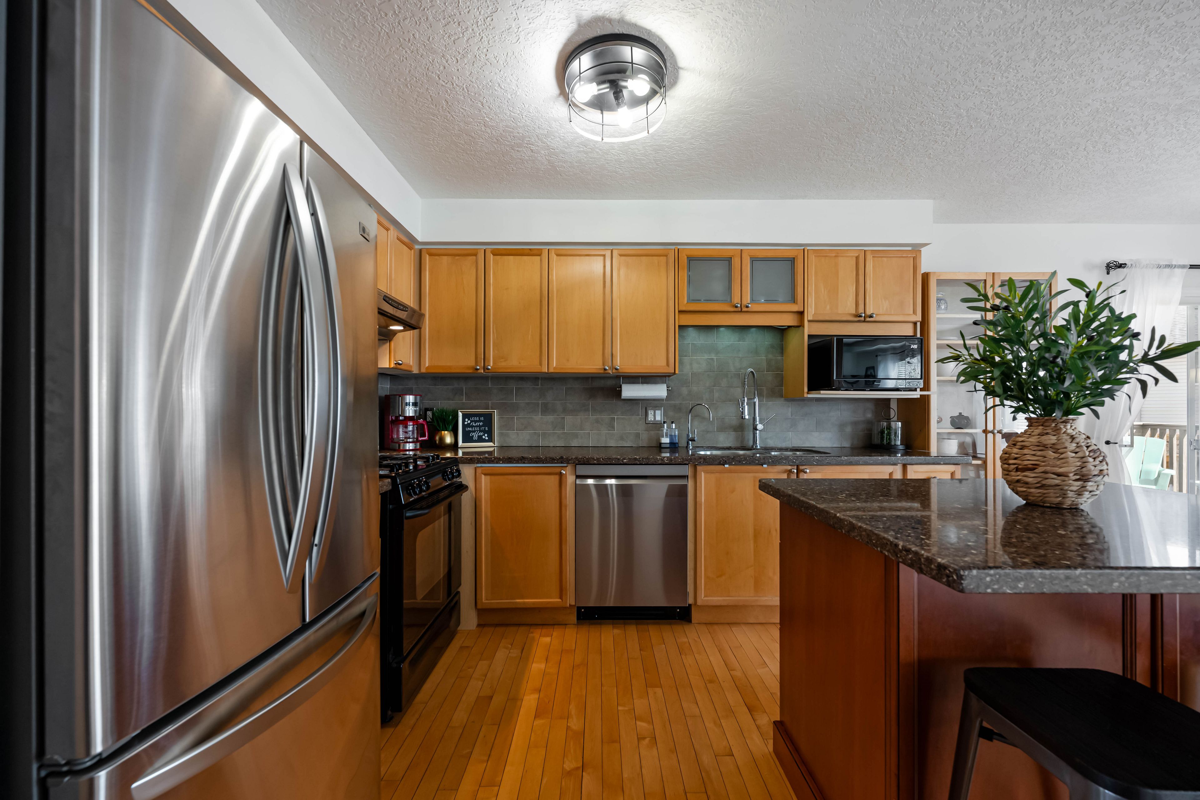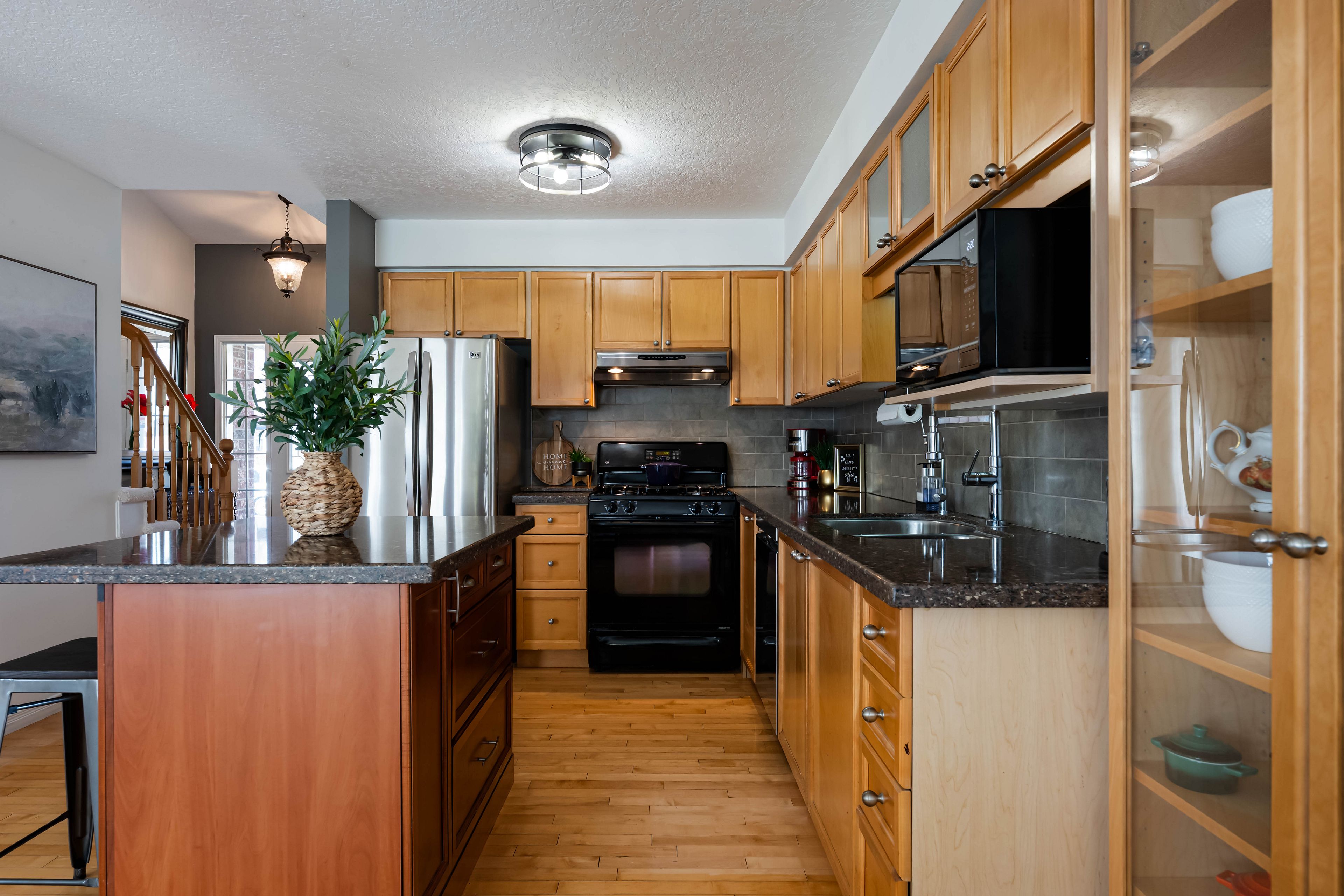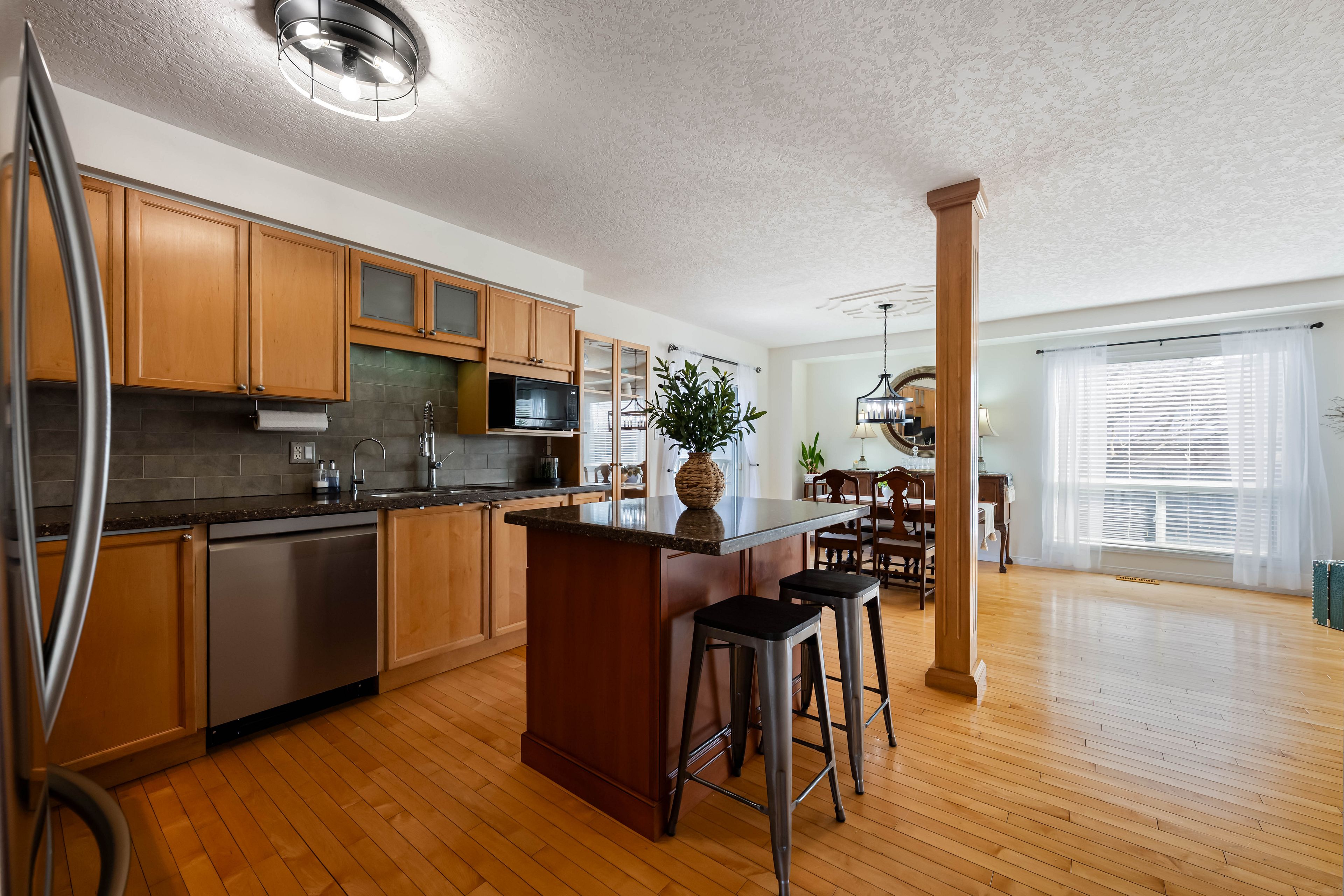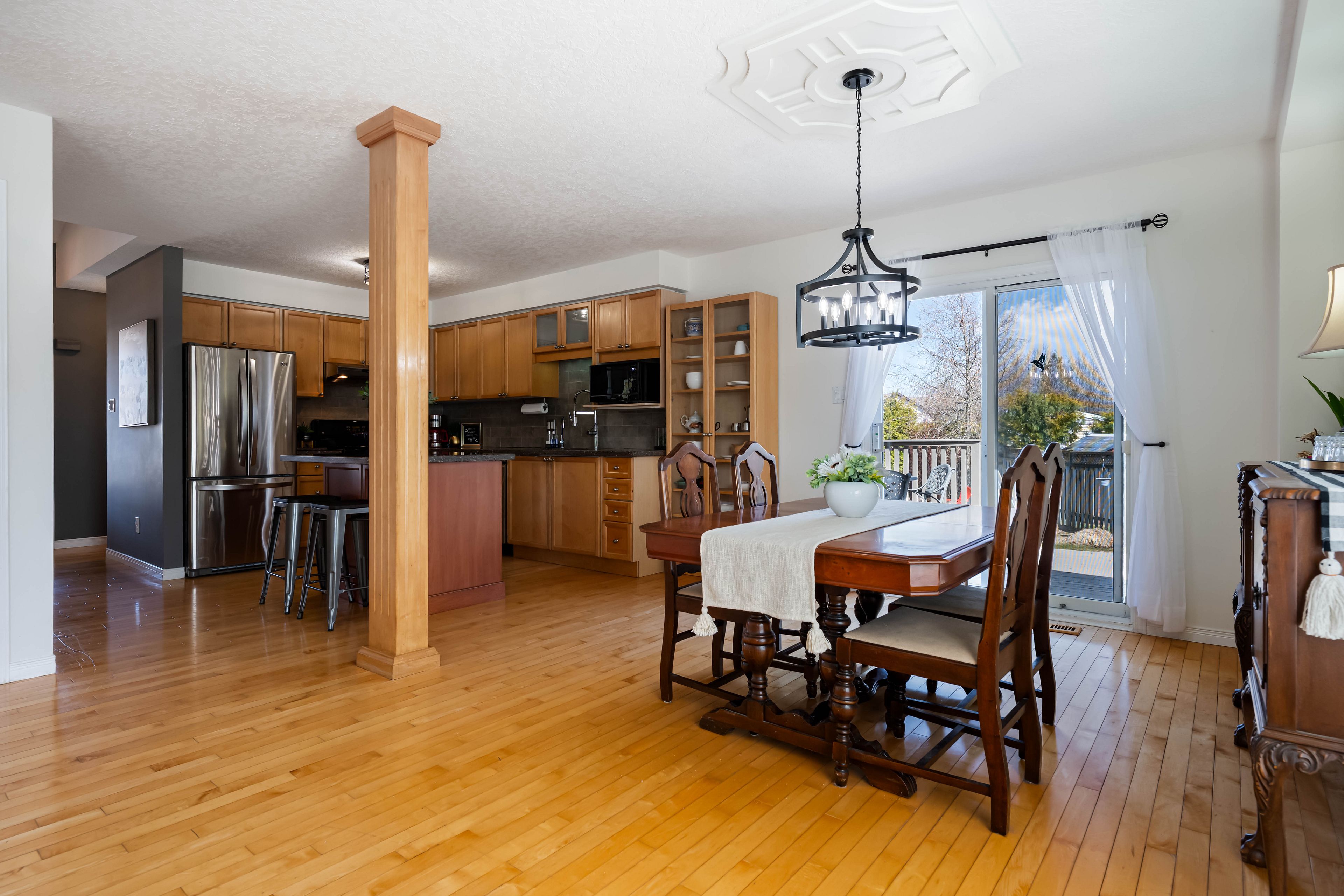 • Bright main floor layout with living room, dining area, and well-equipped kitchen.