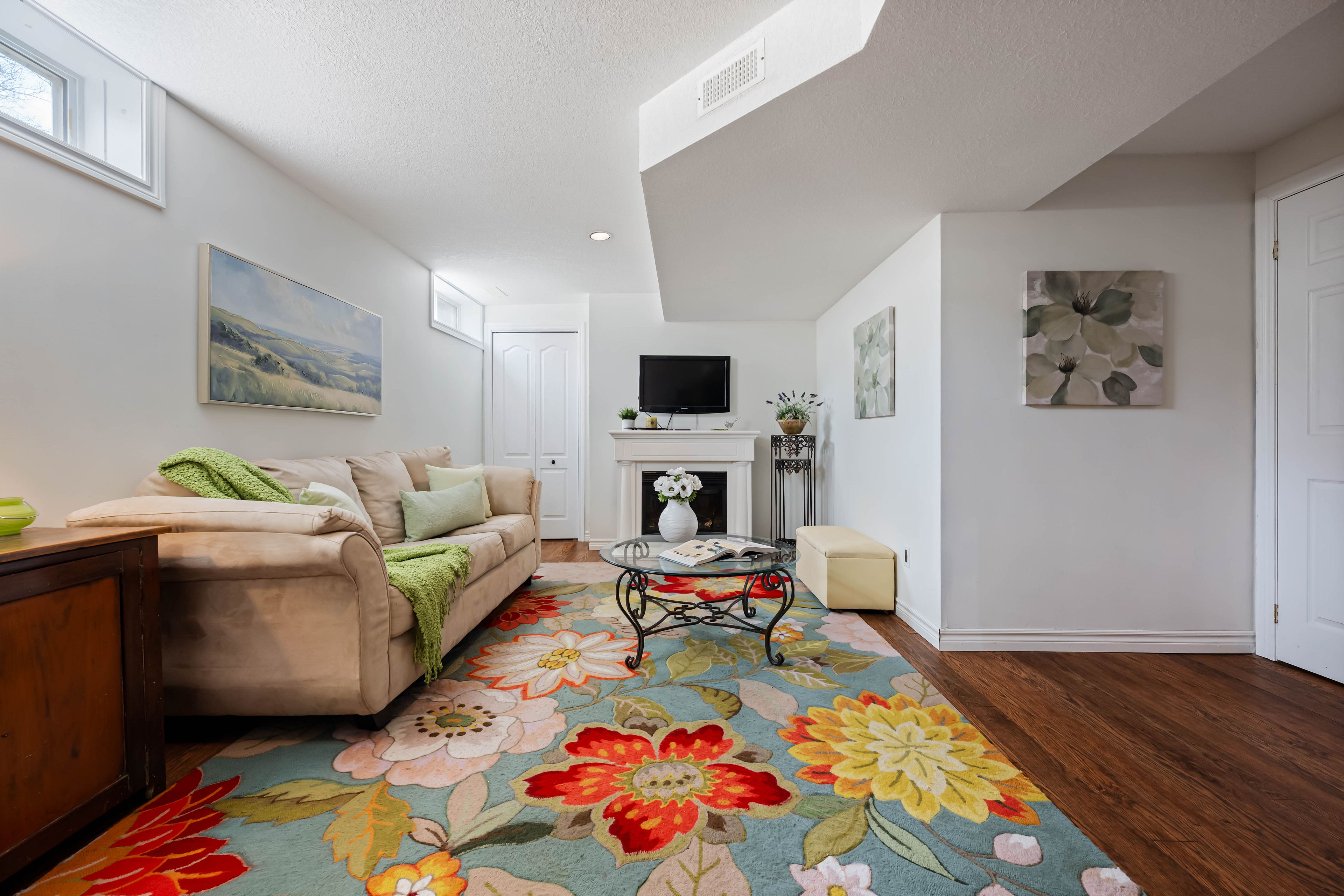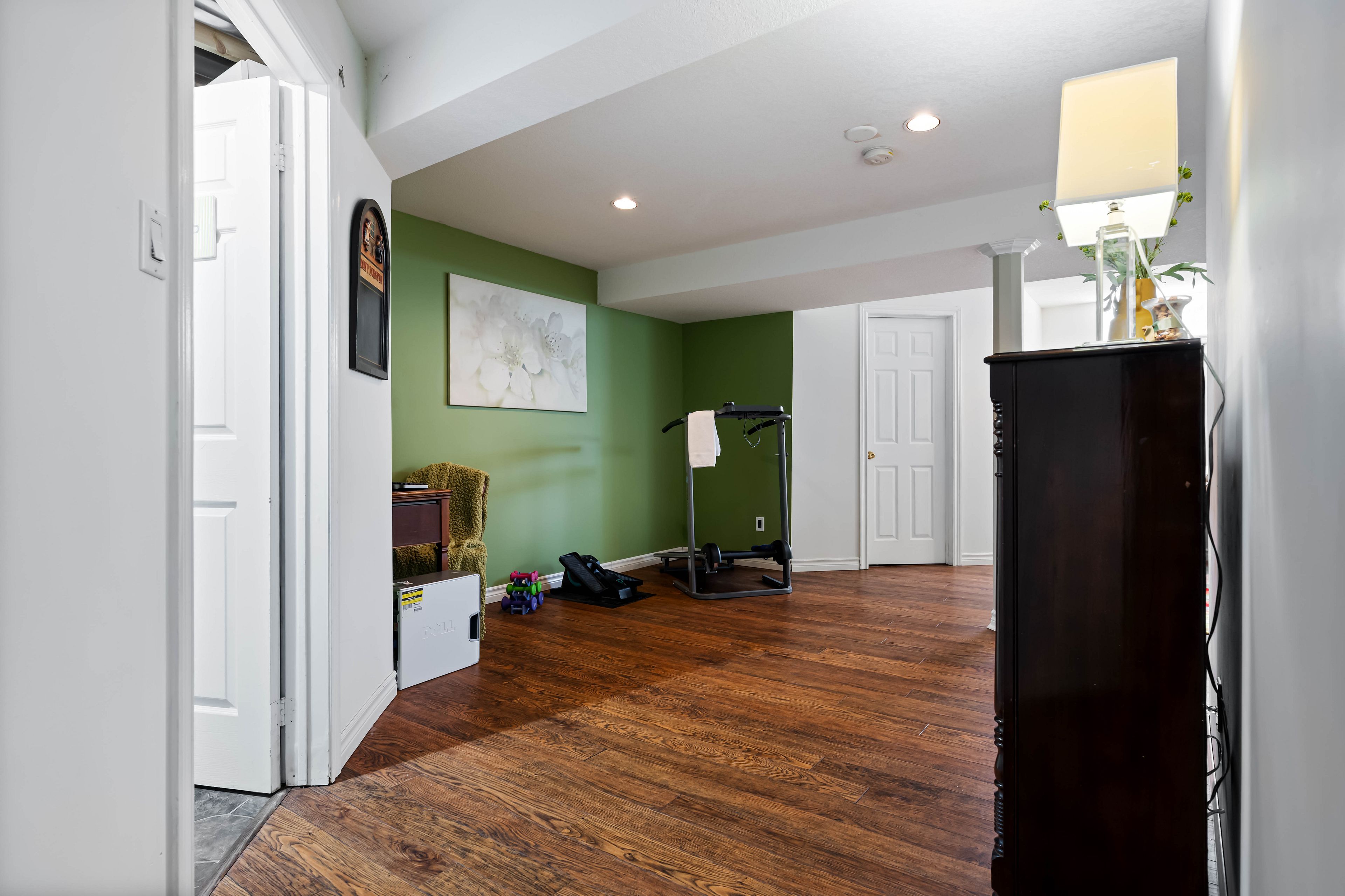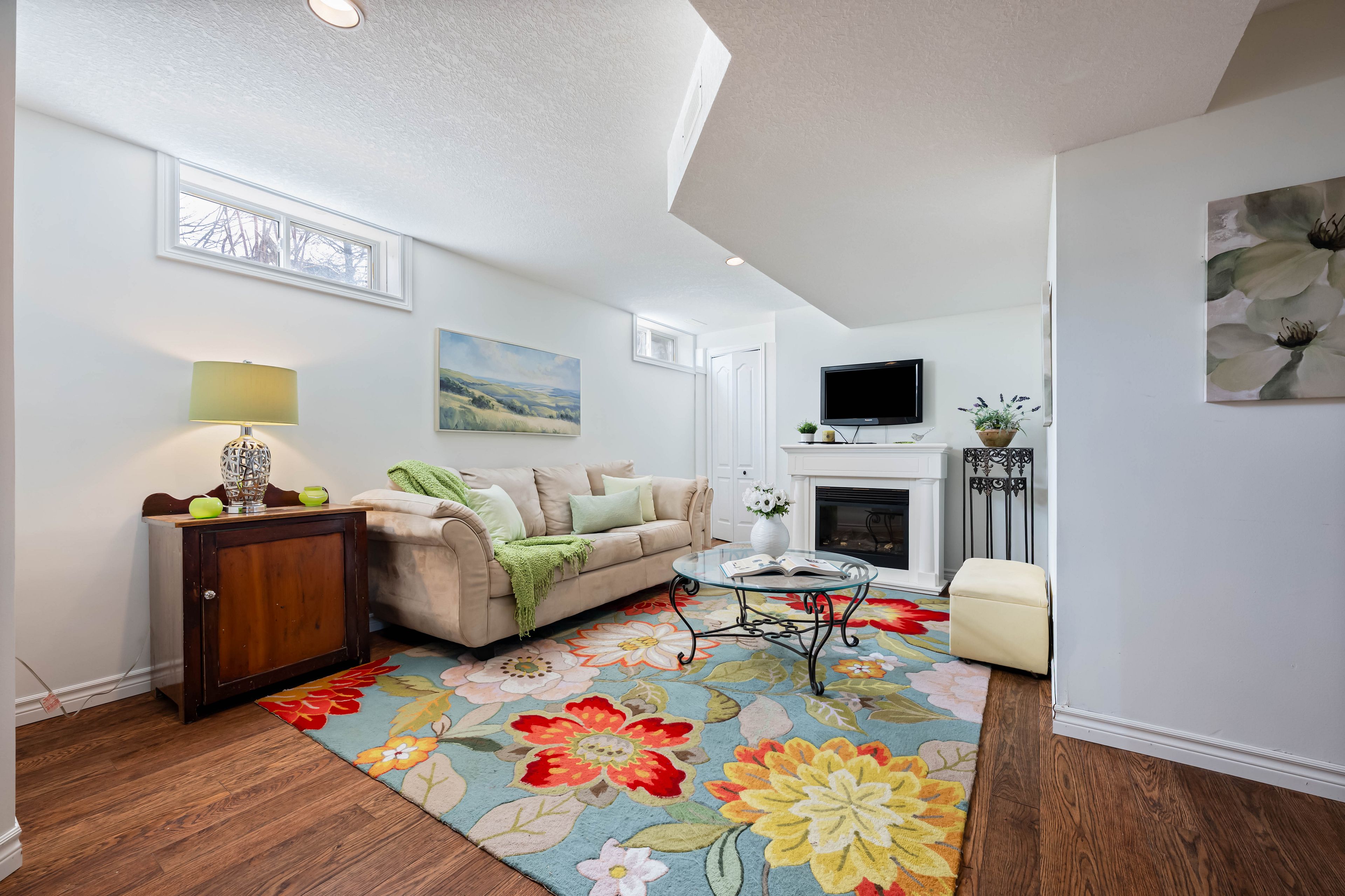• Finished basement with a rec room and office space for work or study.