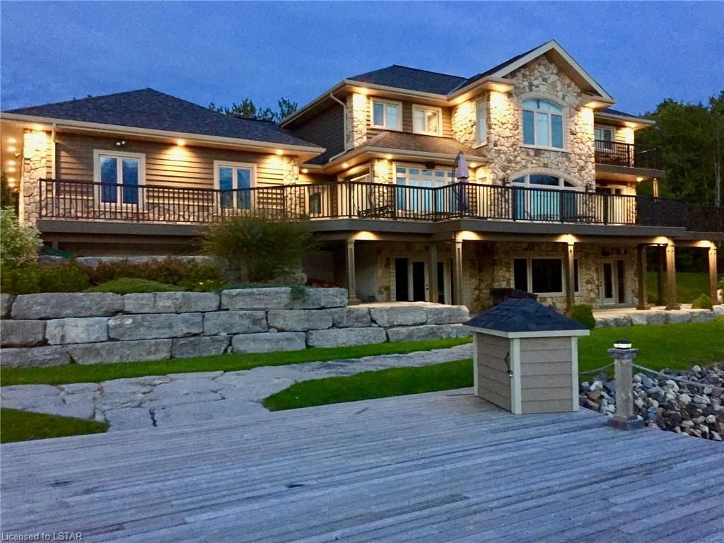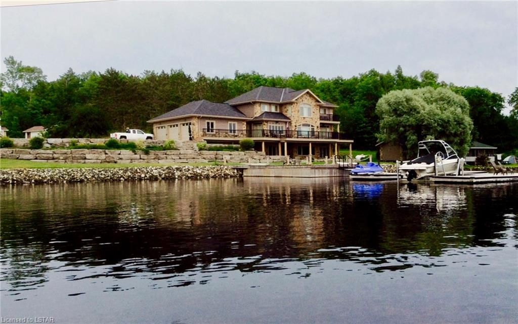 Located in the tranquil northern reaches of ontario, this waterfront masterpiece in port loring offers approx 4,000 square feet of thoughtfully designed living space on 1. 41 acres, featuring an impressive 400 feet of shoreline along wilson lake. Fully furnished and crafted with precision, this custom-built home presents a kitchen that will inspire any chef, complete with expansive granite countertops, a central island, and premium stainless steel appliances. The home includes four generously sized bedrooms, highlighted by a luxurious primary suite with a spa-like ensuite, featuring a walk-in shower, a jacuzzi tub, and a custom walk-in closet by toronto's organized interiors. A private office with bespoke wood cabinetry caters to remote work needs, while a full walk-out basement with heated floors remains a blank canvas for your vision. Outdoors, the property truly shines with a large pier and dock system that accommodates up to six boats, a three-bay garage with heated tile flooring, and an interlocking brick driveway. Additional features, such as a full irrigation system and an automatic power backup generator, provide unparalleled convenience. Whether you're enjoying the stunning sunsets, immaculate landscaping, or the area's peaceful environment, this property delivers a seamless blend of luxury, comfort, and natural beauty. Ideal for creating memories with family and friends, its a retreat like no other.
