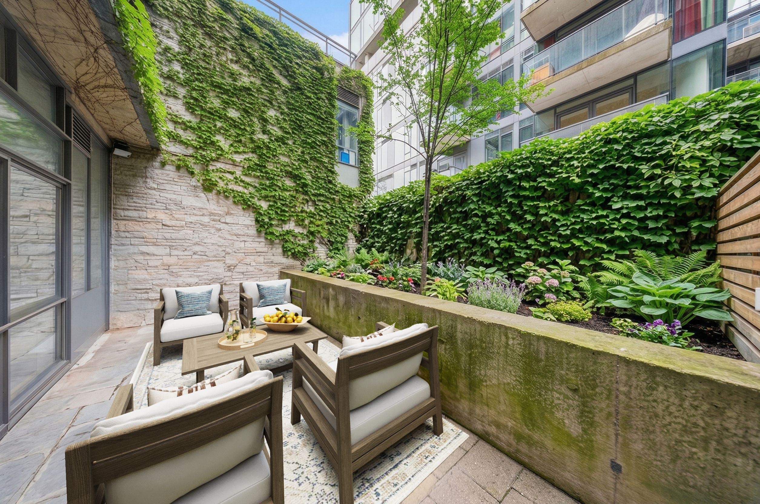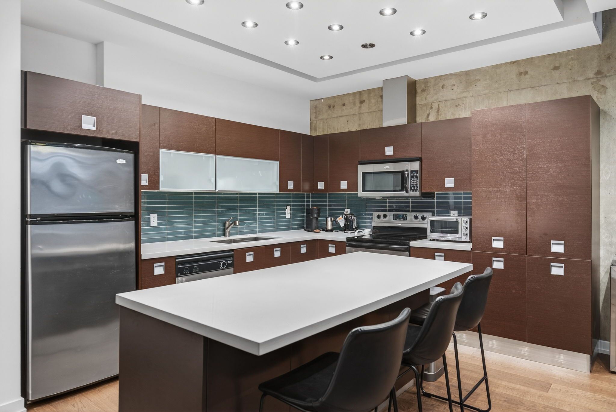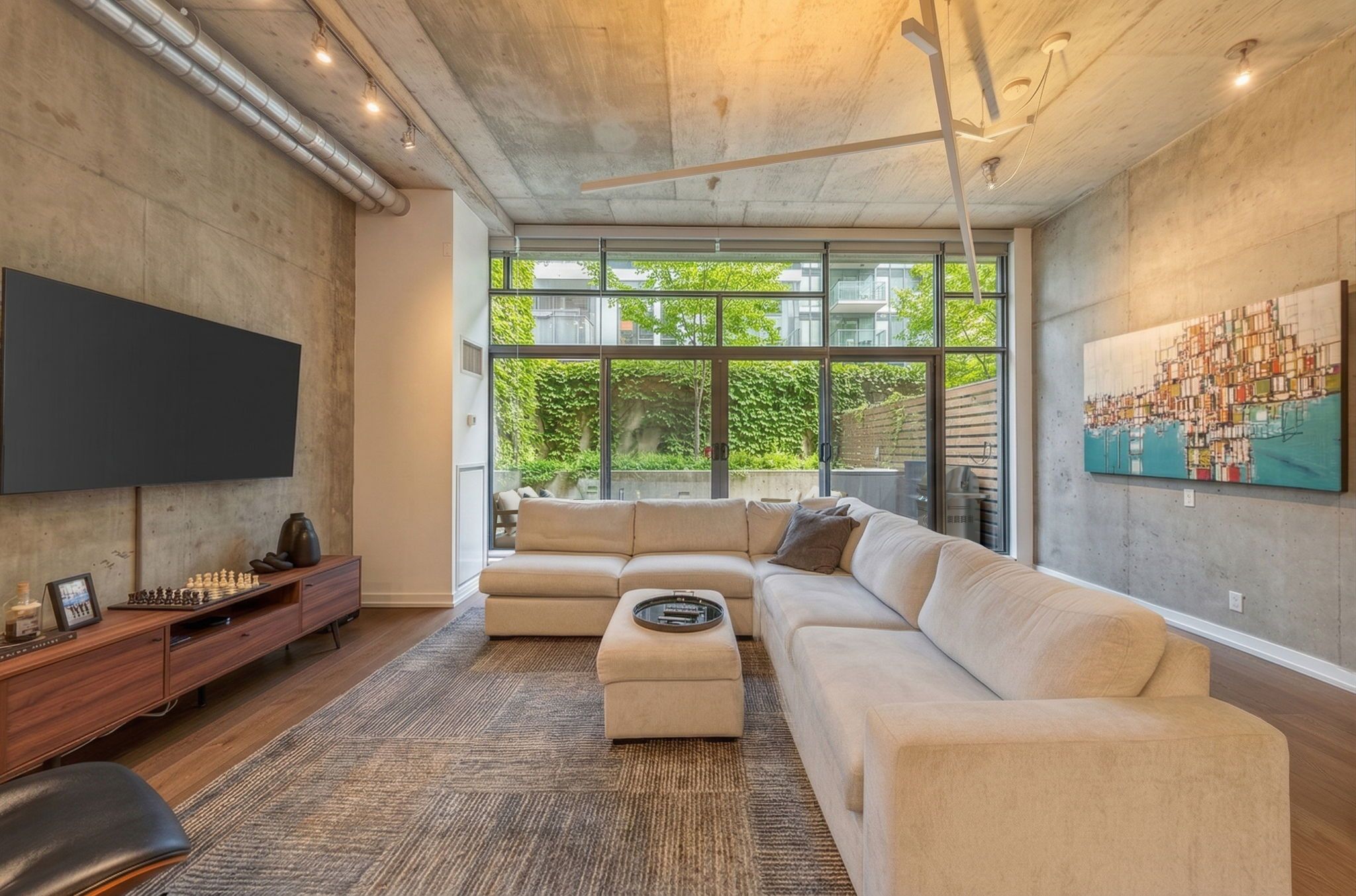 Ultra-modern 2-storey loft residence in the heart of vibrant king west. Offering over 1,600 sq ft of refined living space, this 2-bedroom plus expansive den, 3-bathroom home blends sophisticated design with effortless comfort. Soaring 11-foot ceilings on the main floor, dramatic floor-to-ceiling windows with custom treatments, and striking exposed concrete accents. The designer italian scavolini kitchen is the centerpiece of the home, complete with an oversized island, premium finishes, and seamlessly integrated european lighting throughout. A statement chandelier and custom floating ceiling features with ambient lighting elevate the space even further. A luxurious primary suite featuring an exceptional ensuite retreat. The massive den offers incredible flexibility-perfect as a home office, media lounge, or additional guest space. Extend your living outdoors to a private 460 sq ft terrace and garden oasis, complete with lighting. An unbeatable downtown location just steps to your favorite cafés, restaurants, and shops.